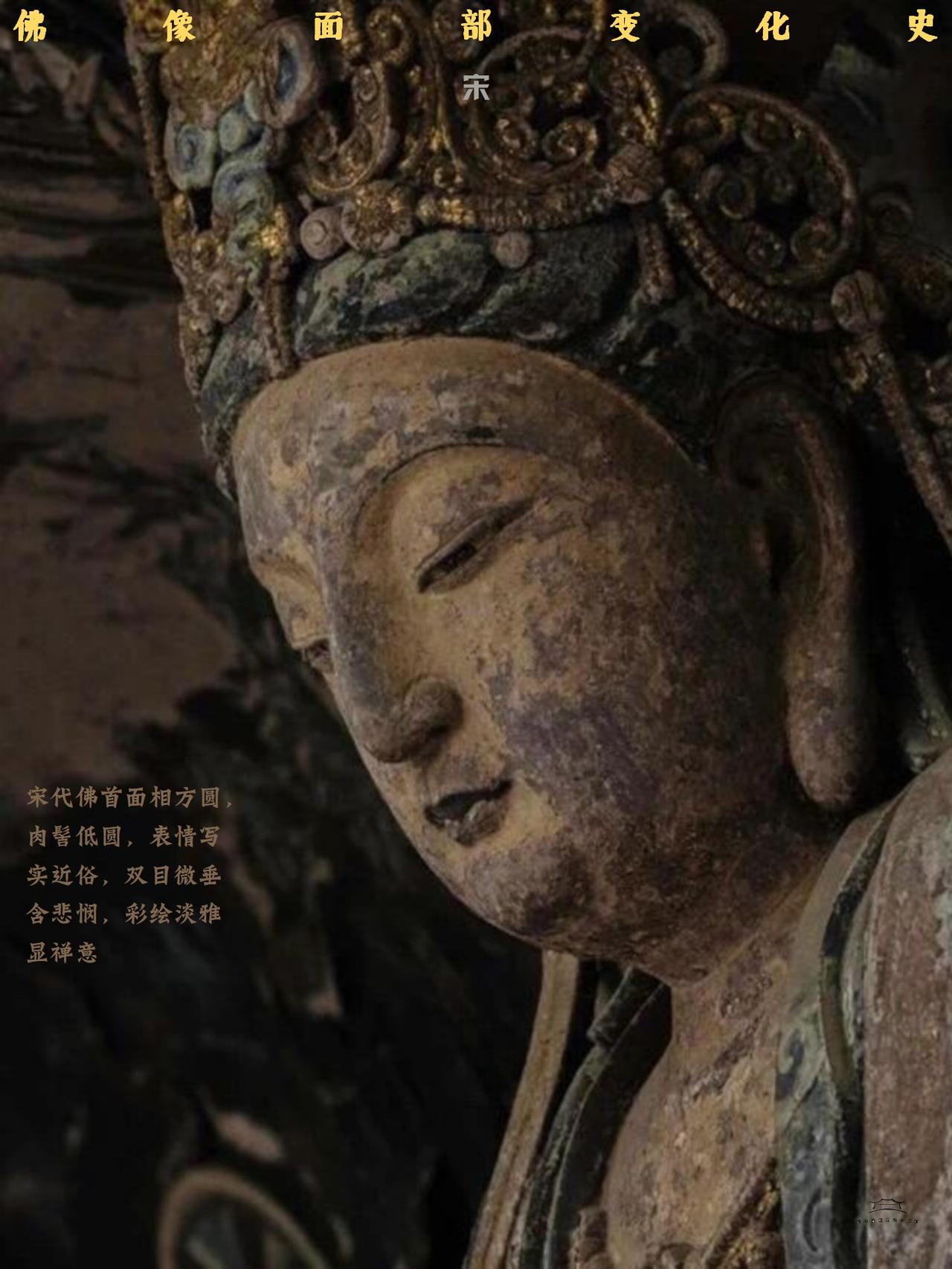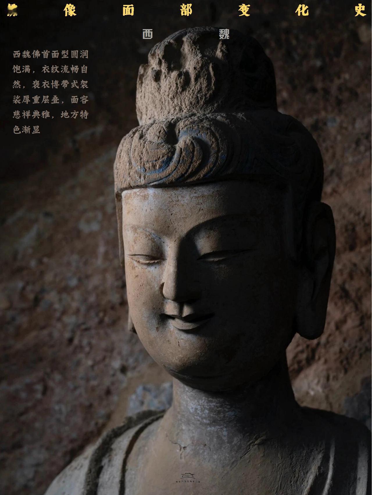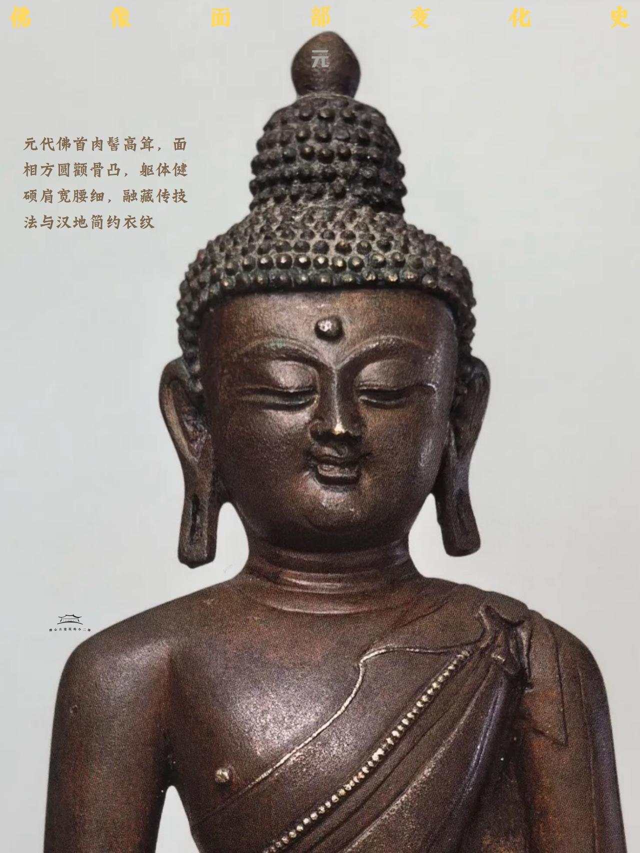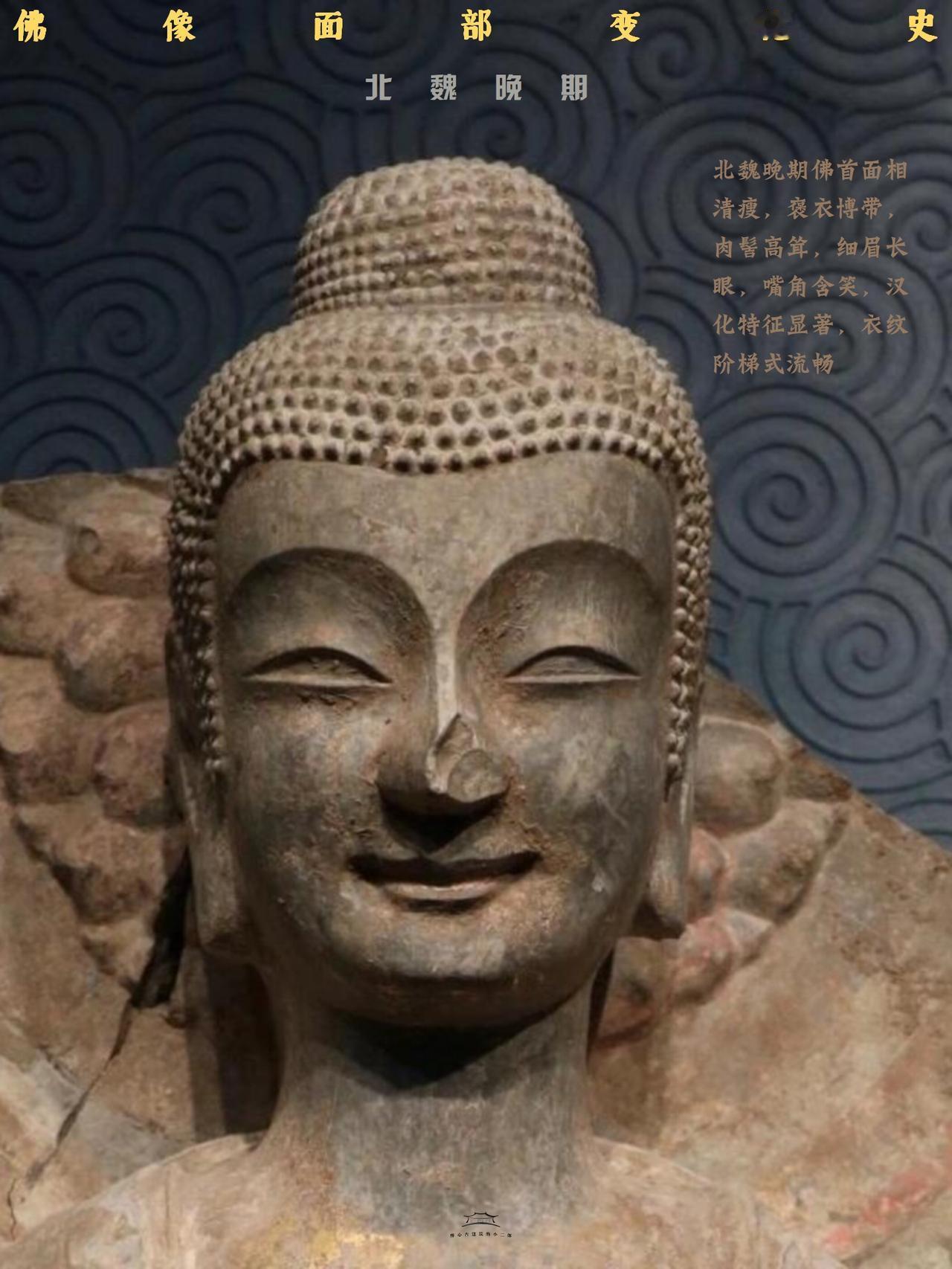 千年佛首风格演变史 从2-3世纪犍陀罗至明清时期,中国佛首艺术经历了显著的风格演变。 犍陀罗时期(2-3世纪)佛首以希腊化特征为主,高鼻深目,肉髻高耸如阿波罗式发髻,发式多采用水波或涡卷纹,通肩袈裟衣纹厚重写实,带有印度伟人相与希腊神像的融合特质。 北魏时期(4-6世纪)汉化加深,佛首面相渐趋柔和扁平,肉髻仍高耸但发式出现螺发雏形,水波发减少,五官清秀含笑,体现“秀骨清像”的中原审美。 北齐北周(6世纪中后期)回归印度笈多风格,面庞圆润,肉髻平缓,螺发流行,衣纹简化,双目微垂显沉思之态。 隋代(6-7世纪)作为过渡期,佛首融合南北特征,肉髻平缓,面部丰满,发式多样但螺发渐盛。 唐代(7-10世纪)本土化成熟,头型饱满,肉髻高耸,螺发涡卷繁复,眉弓高挑,双唇紧闭显威严,雕刻技法刚柔并济。 宋代(10-13世纪)世俗化趋势明显,肉髻低圆如丘,面相方圆近俗,表情含悲悯,衣纹写实飘逸。 元代(13-14世纪)受藏传佛教影响,佛首颧骨凸出,躯体健硕,衣纹简洁,保留部分汉地特征。 明清(14-20世纪)程式化严重,肉髻低平,面相丰润庄重,装饰繁复但创新不足,世俗化倾向达到顶峰。整体演变脉络呈现从印度化、汉化到本土化,最终走向世俗与程式的历史轨迹。 部分图片截取自网络二次创作,侵删。 健陀罗
