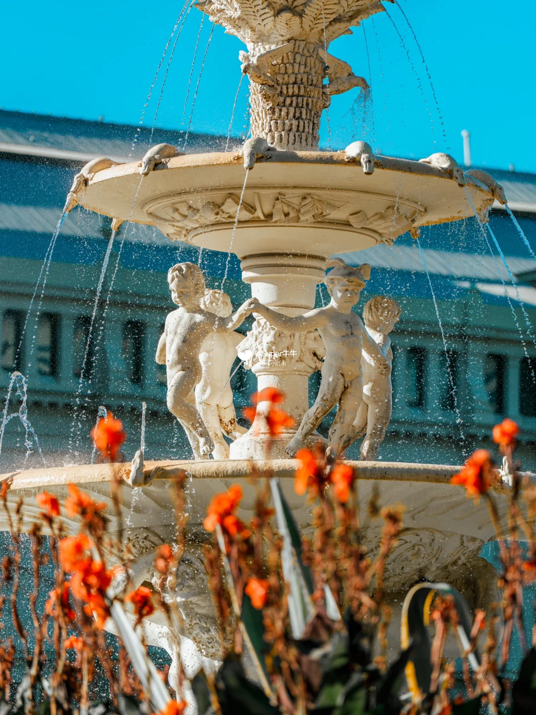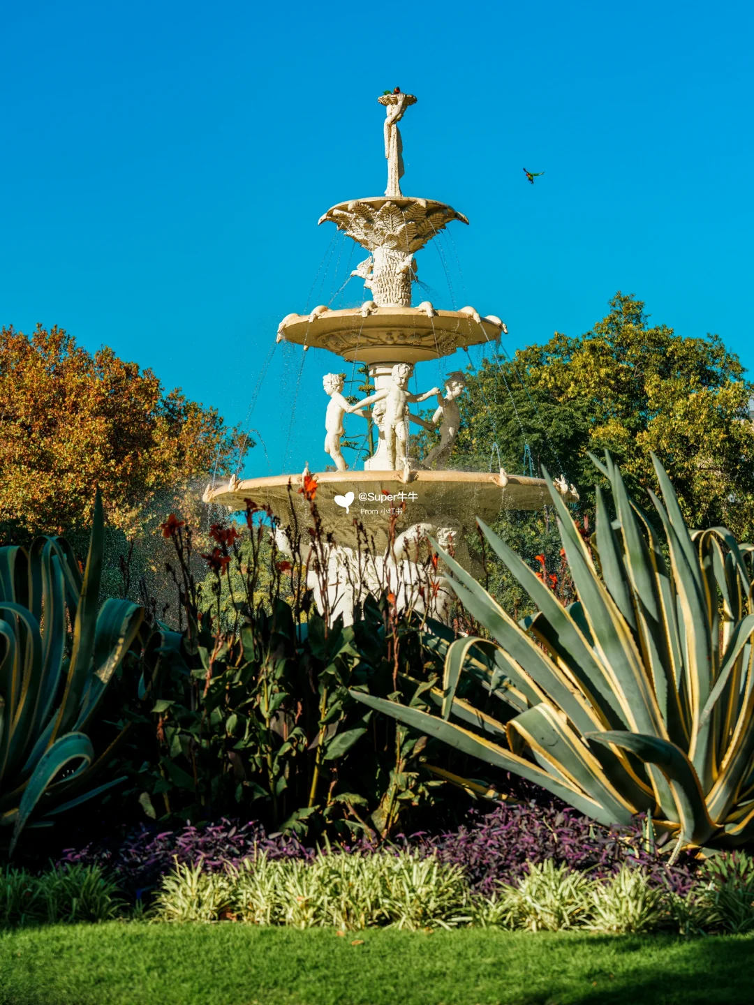 闪耀的喷泉⛲复古的城堡🏰温暖的阳光