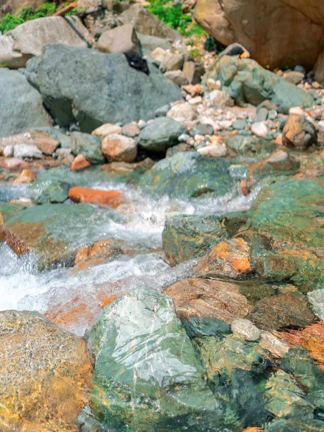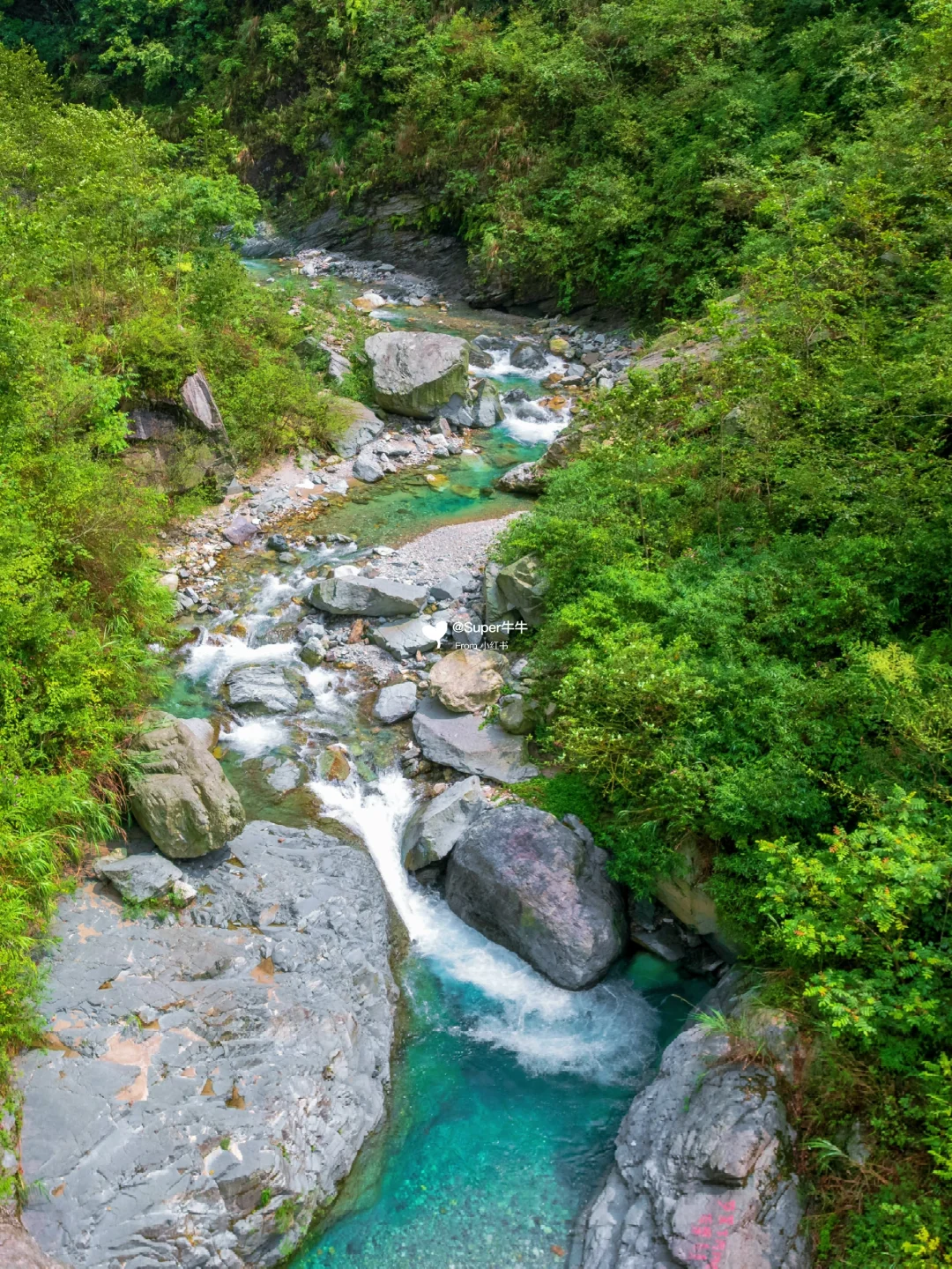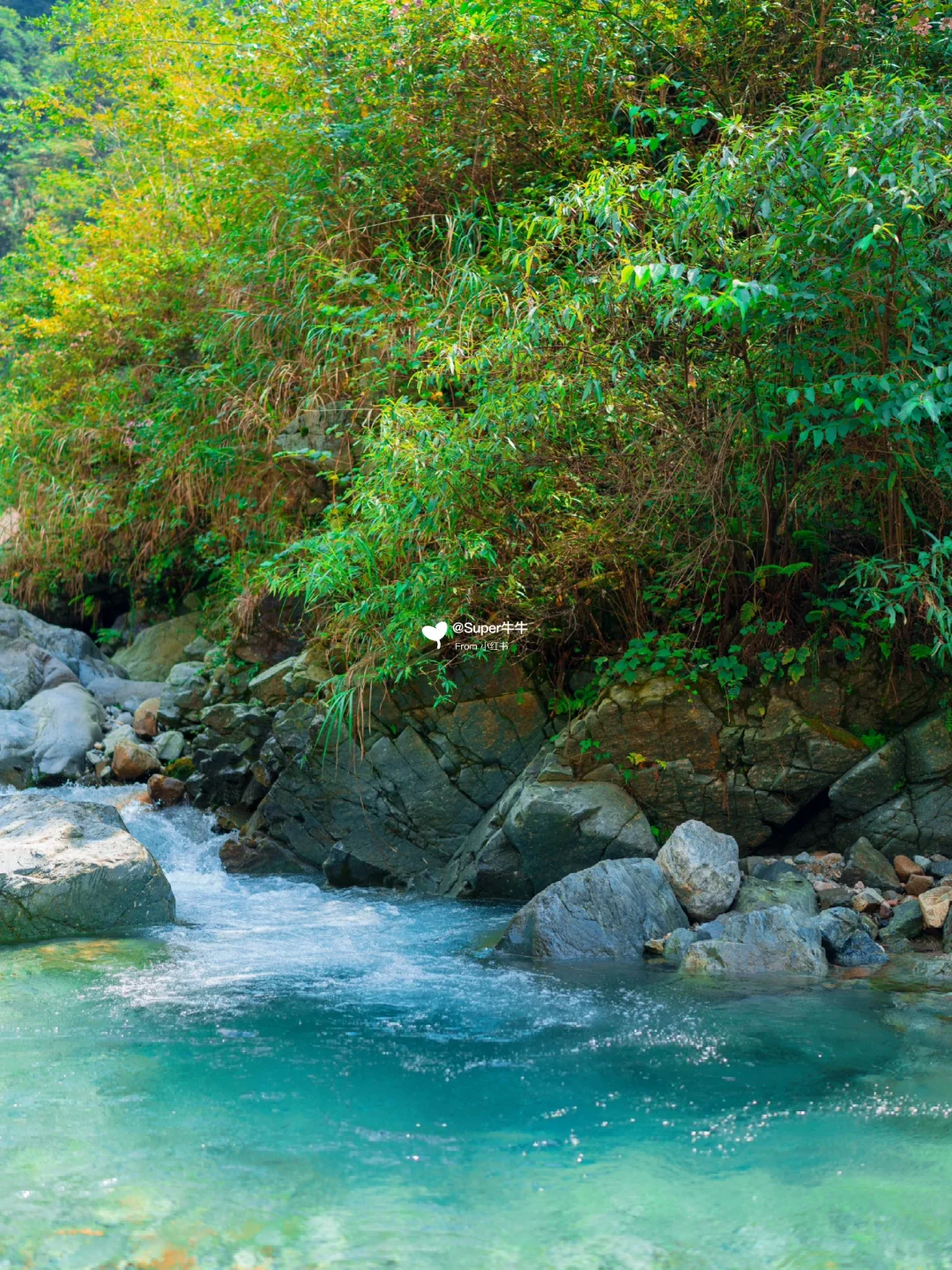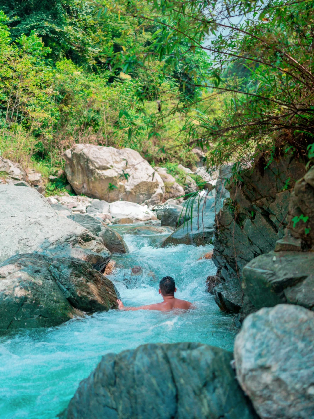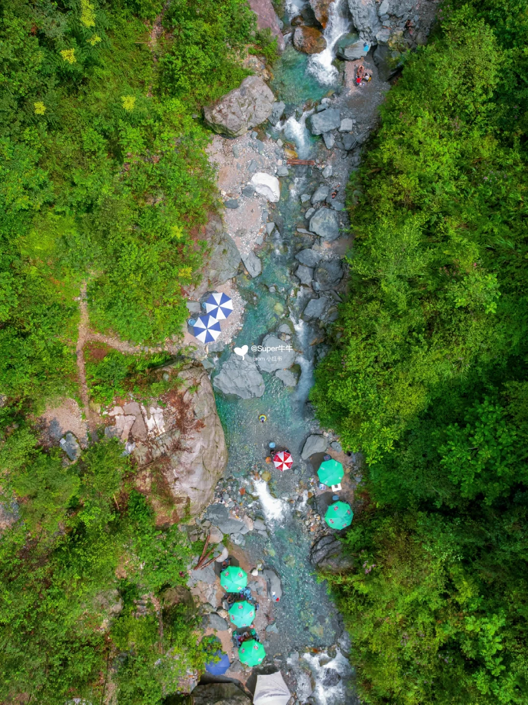 🌊周边:从白八路过桥后沿路非常多耍水农家乐,都在河滩里面搭了遮阳伞,但罗家磨子绝对更棒一些里面是Tiffany蓝般的果冻海,水质非常好~