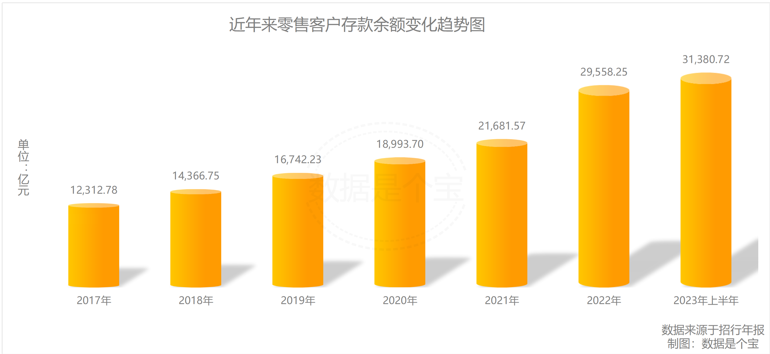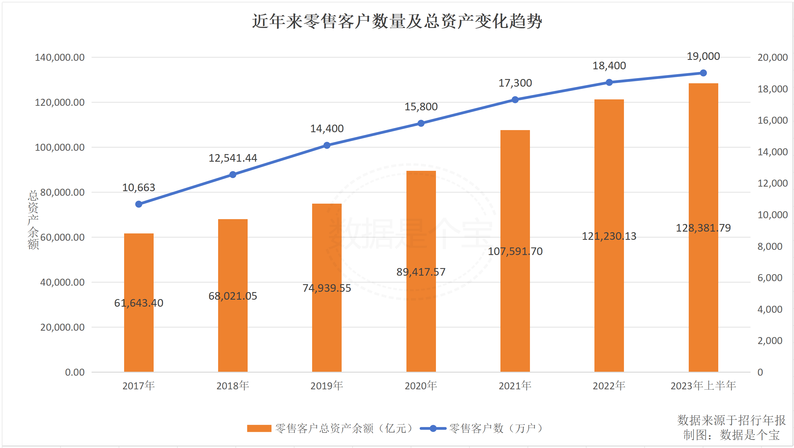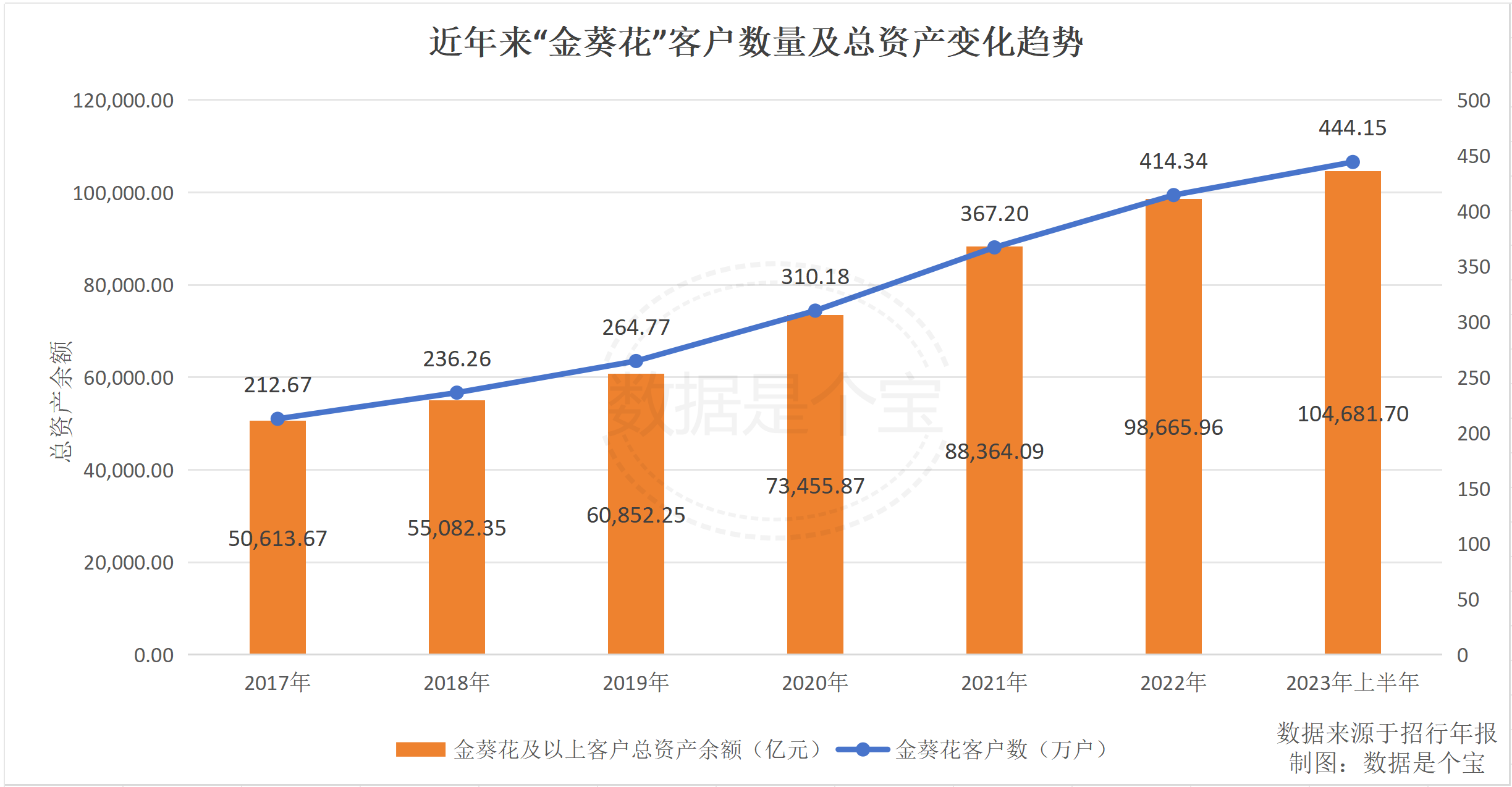 “截至报告期末(编者注:2023年6月)本公司零售客户1.90亿户(含借记卡和信用卡客户),较上年末增长3.26%,其中,金葵花及以上客户(指在本公司月日均总资产在50万元及以上的零售客户)444.15万户,较上年末增长7.19%。