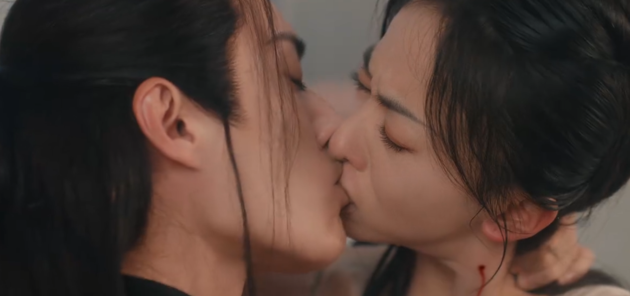 当然,男主都跟太子有吻手戏,跟女主怎么可能没有火花?女主得到男主派的任务杀男主之后,就装成自荐枕席的侍女要在浴池杀男主。没想到碰到外面在抓刺客,为了打消男主的怀疑,女主就立刻亲了男主。外面守卫看到精彩一幕退走接触威胁之后,女主又果断咬破了男主的嘴。对于女主用完自己之后翻脸无情的行为,男主佯装要勒死女主。而女主说了一句看似情话实际上是大实话“怕不能跟男主死在一起”。