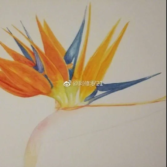 水彩,天堂鸟/鹤望兰。