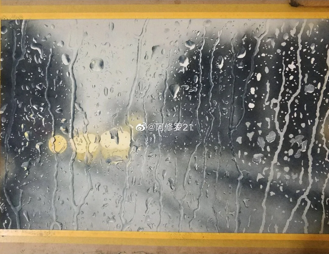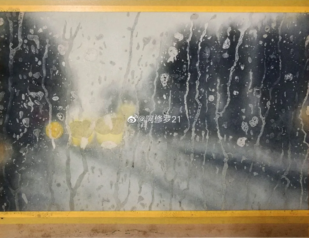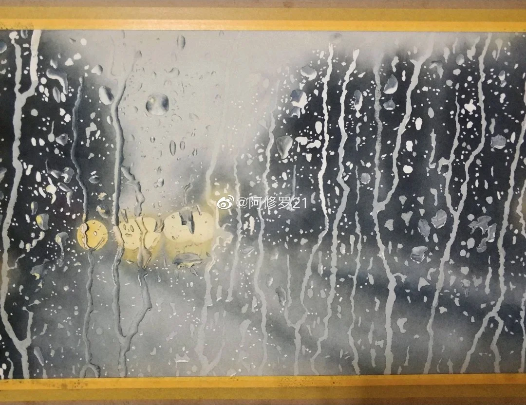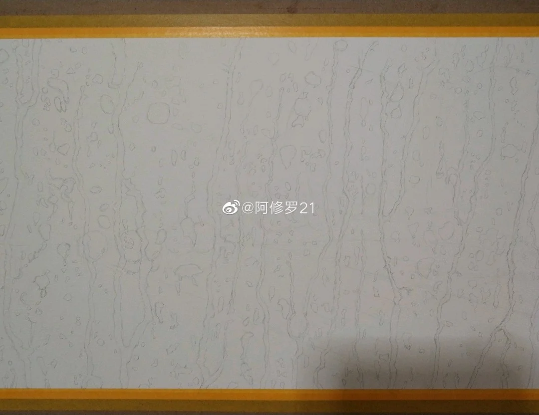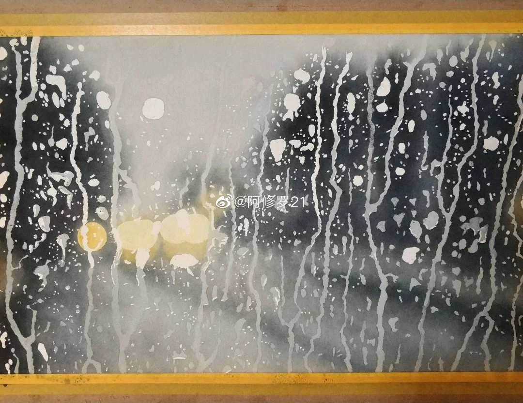 四开水彩。可算是画完了……笔:秋宏斋三和、劲草、松枝;颜料:MG;纸:获多福中粗;留白胶:泰伦斯(感觉不如史明克好用)。 1.画线稿,用留白胶涂上水滴水流。 2.大笔触湿画刷背景。 3.擦掉留白胶,挨个刻画水滴水流。 步骤说起来简单,但很磨耐性。