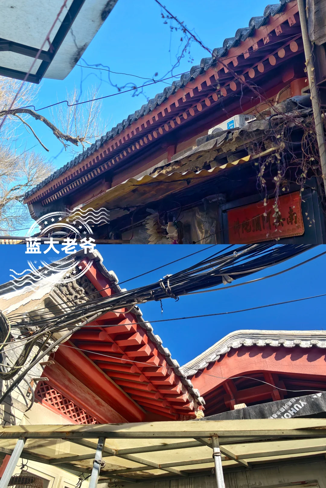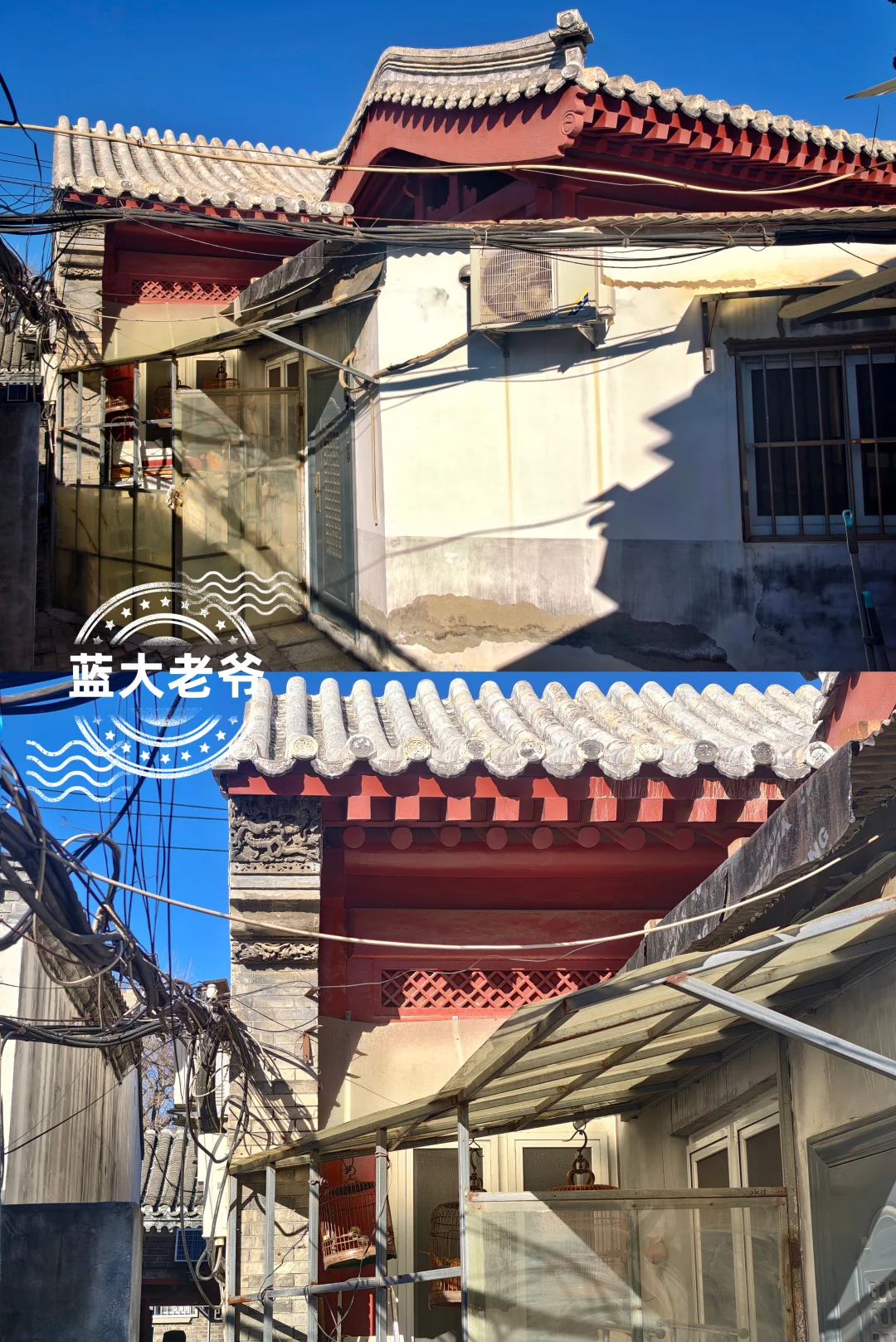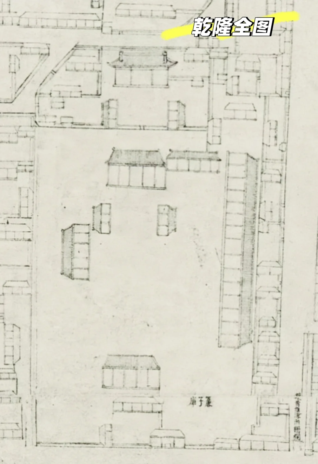 🌅明慈慧禅林司设监负责皇家仪仗卤簿帷幕伞具,至清顺治设工部制造库,下设帘子库,专司宫廷四季帘幕制作替换保管,所占即是这个区域,后因慈禧垂帘在坊间又火一把。乾隆京城全图可见其格局,大门三间一启,院内工坊库房与管理用房,其最北端为带门独立院落,三间歇山即是硬山这座,后墙封死,也即此院与南部帘子库一体,歇山建筑初为何用?怎么就变成硬山抱厦了呢?