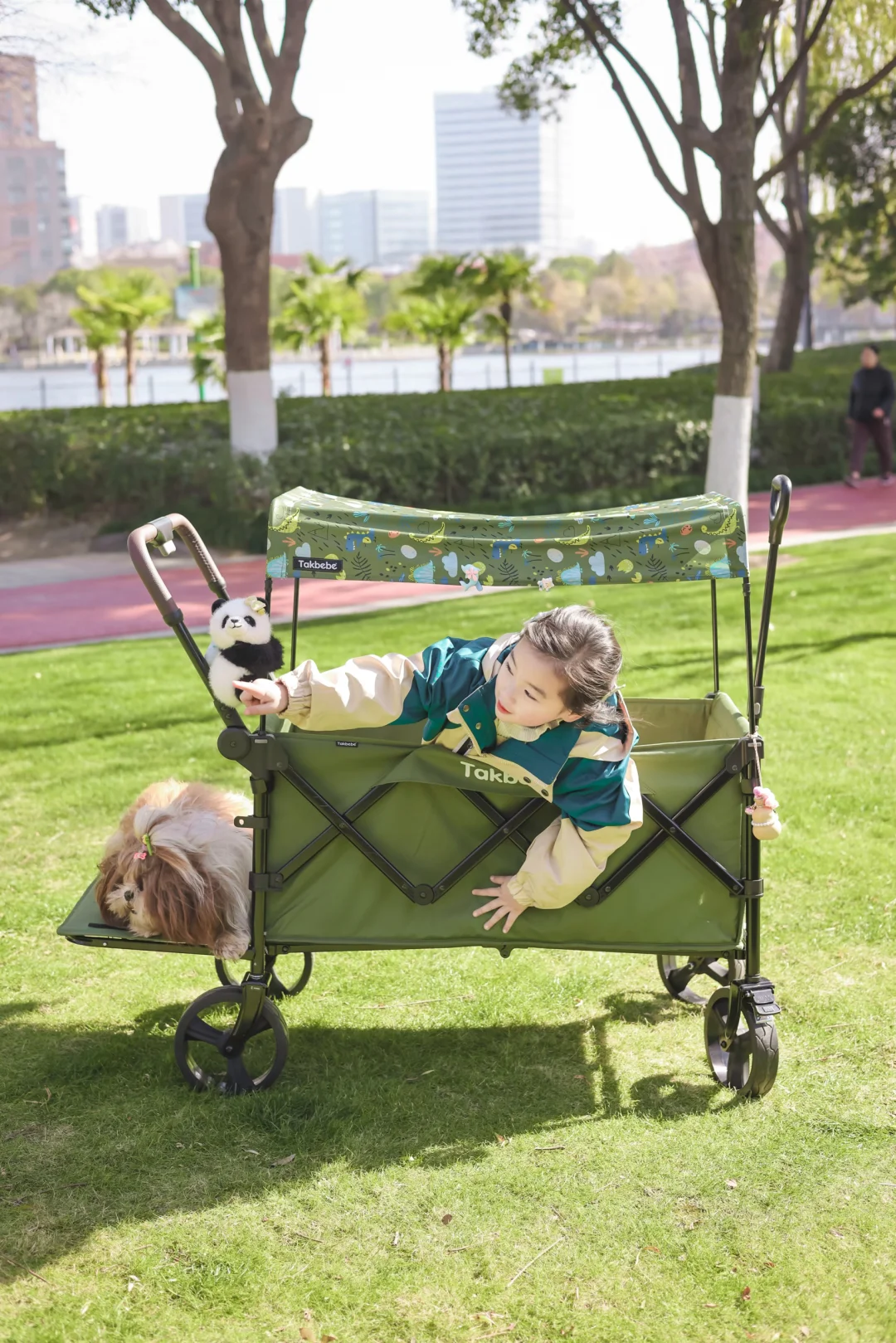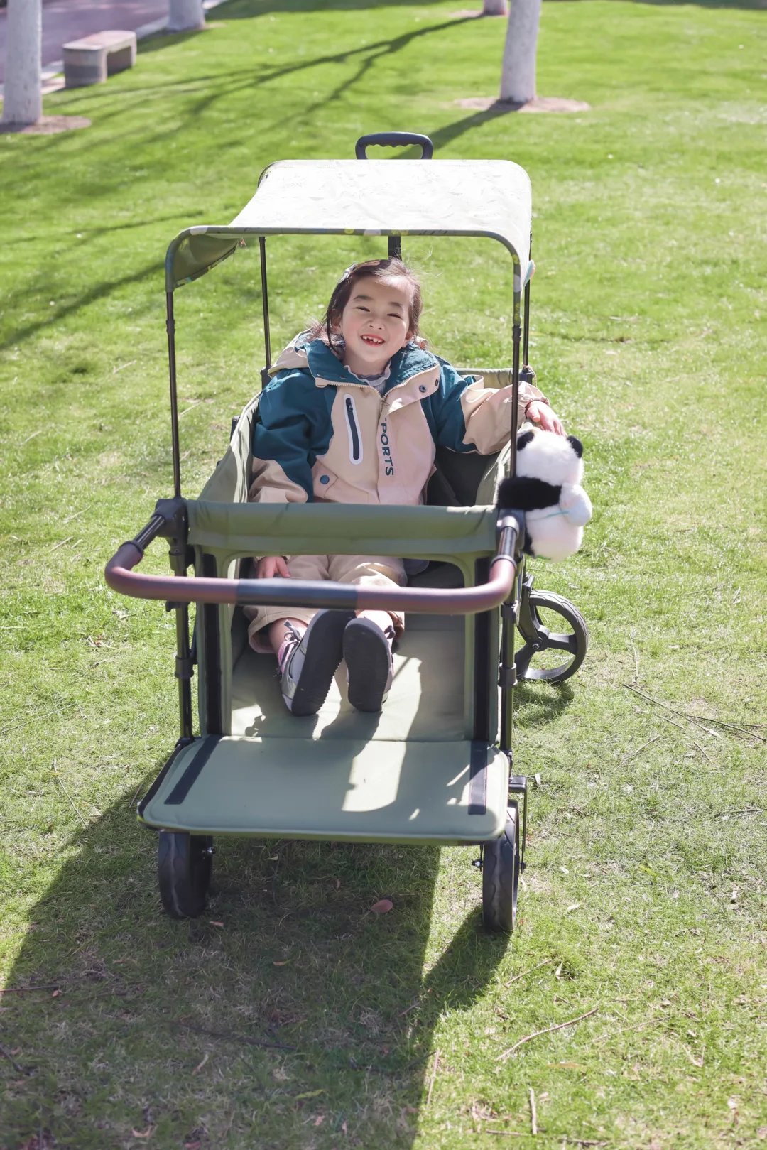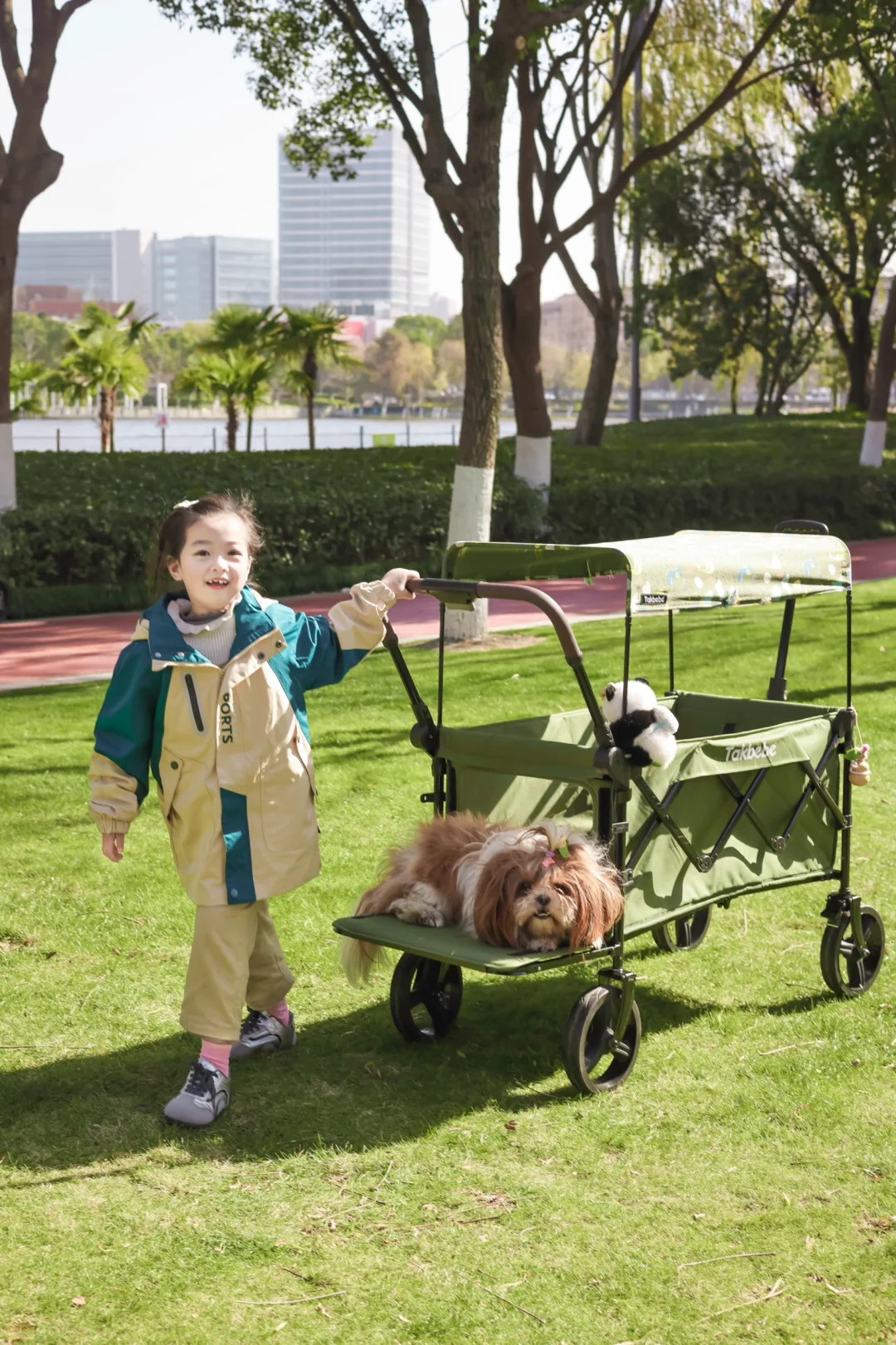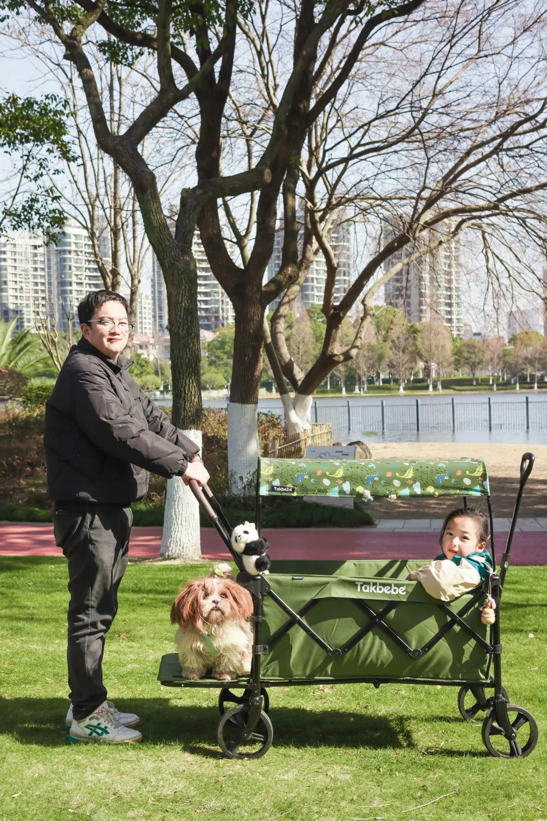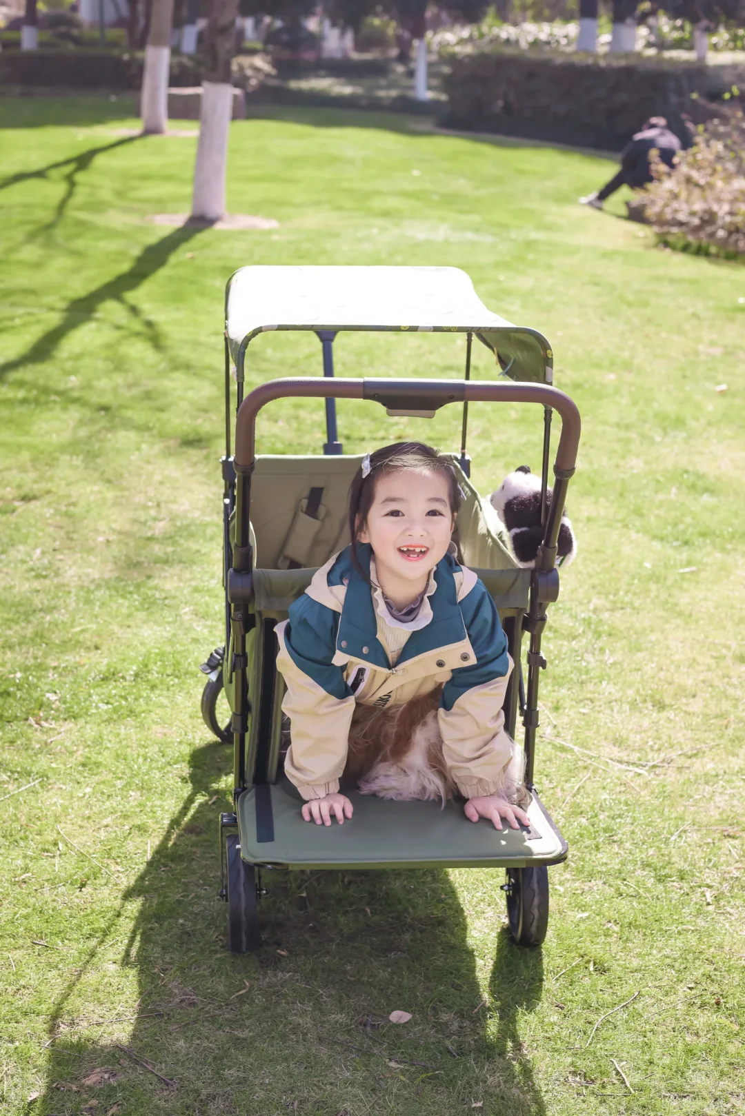 [营地车R]宽敞的空间刚好装下孩子的小背包和小狗的便携水壶,侧边的口袋能塞下纸巾、垃圾袋,不用再手忙脚乱地拎着一堆东西。孩子可以稳稳坐在里面,小狗乖乖趴在小车边,推着走的时候,居然出奇地安稳。🌿