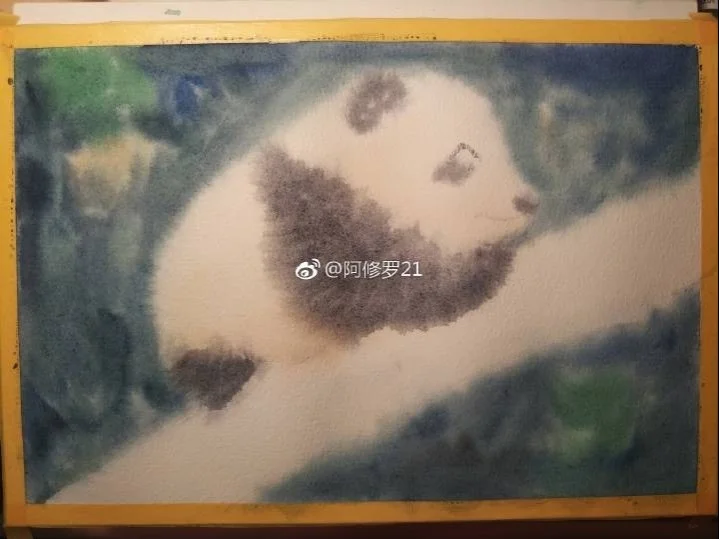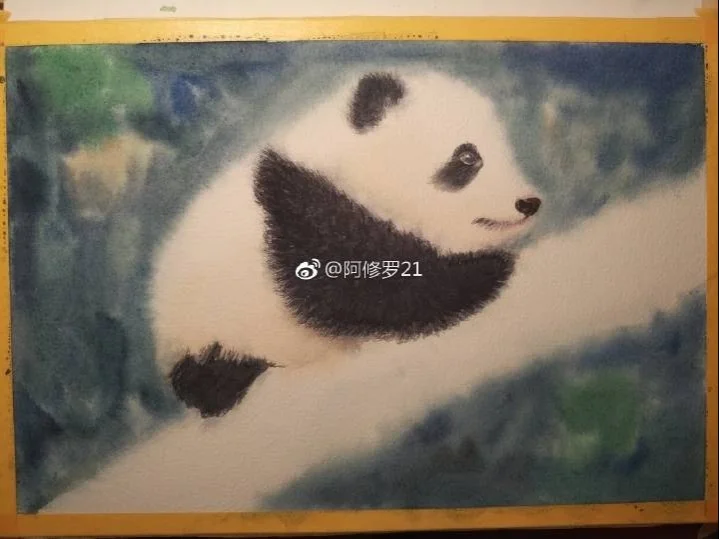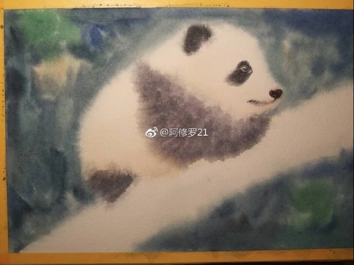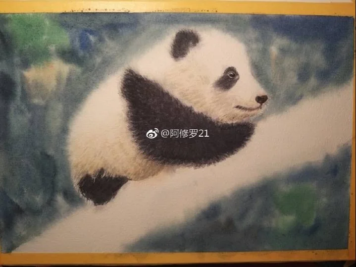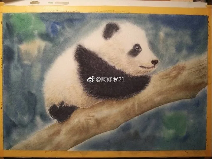 水彩,在爬树的小滚滚。