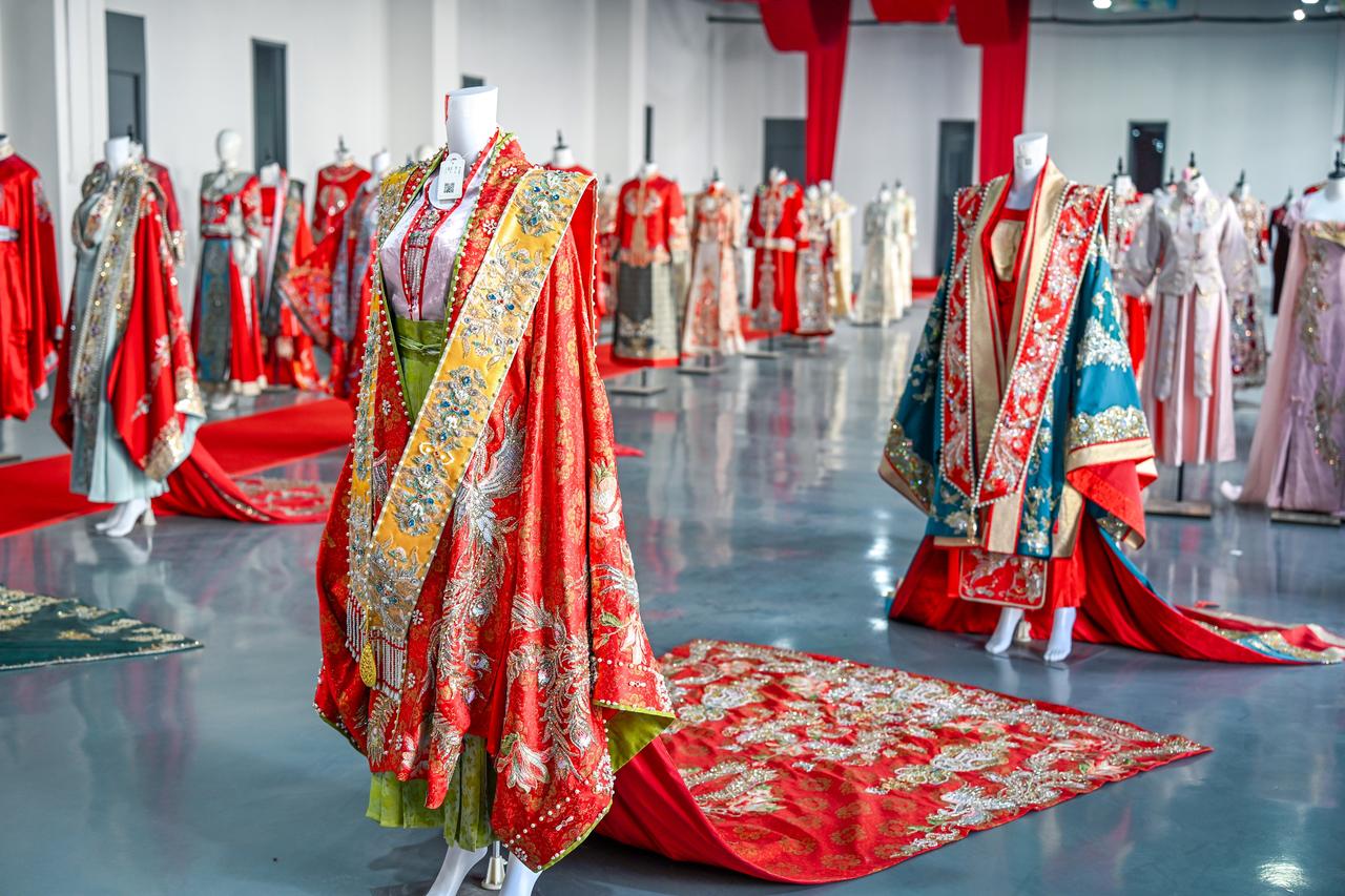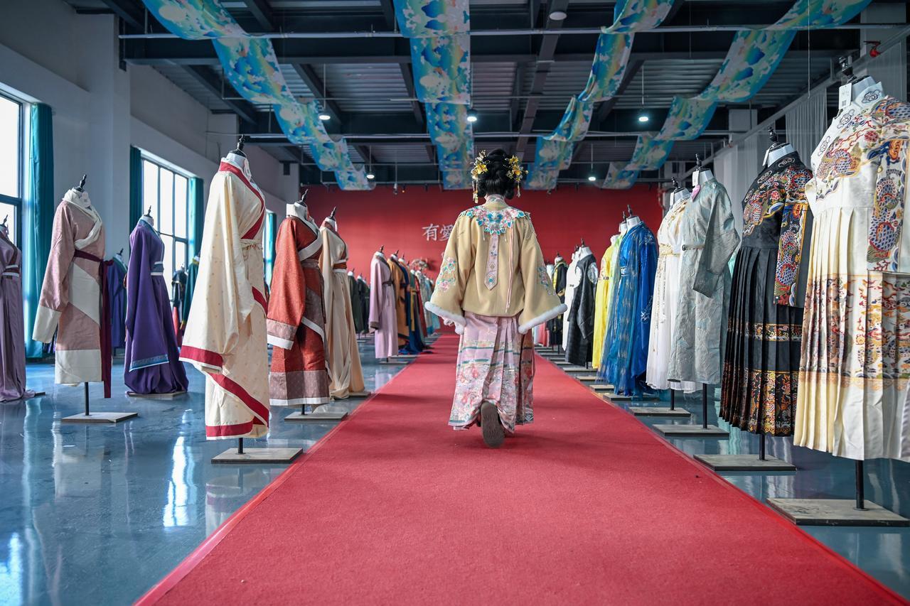 这里没有“穿越”——因为汉服从未离开。走进街巷的任意一家工坊,你会看见历史如何被一针一线重新编织:指尖游走的金线正复刻明制马面裙的纹样,织机咿呀声里,一卷卷新缎如瀑布倾泻。