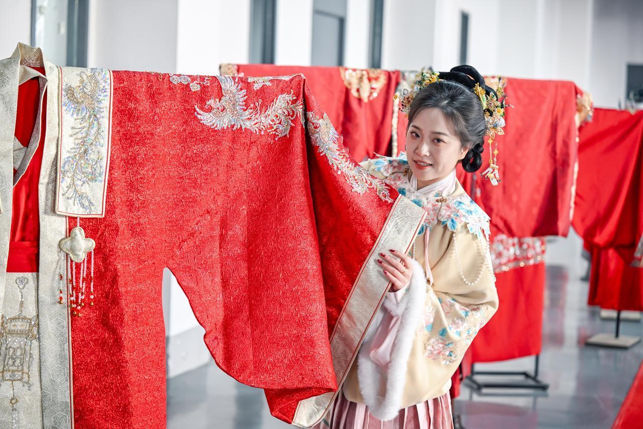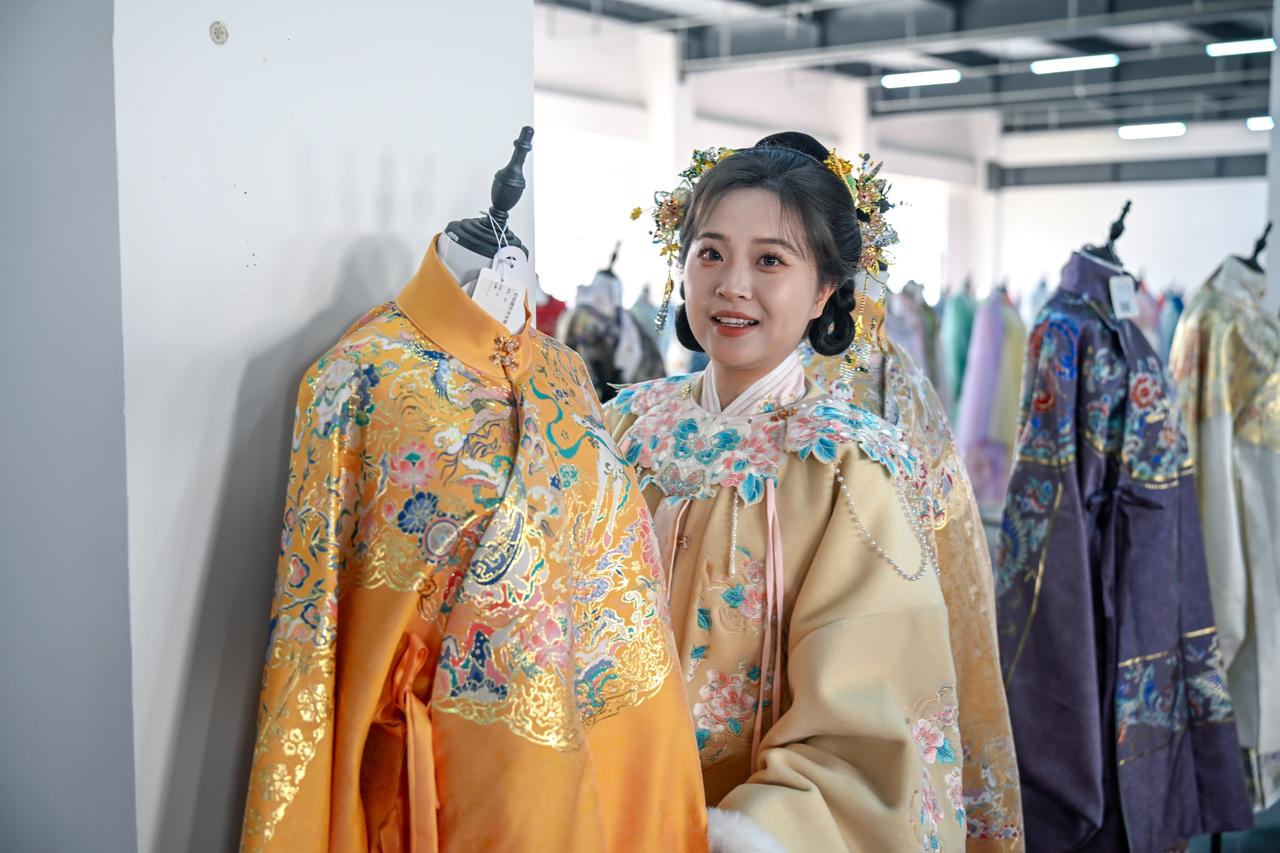 更震撼的是仓库。推开门的瞬间,仿佛打开时空衣橱:宋褙子清雅如词,明比甲端庄似画,魏晋大袖飘然欲仙。但这些不是博物馆展品,每一件都贴着快递单,即将去往某个女孩的毕业礼、某个男孩的婚礼、某个城市的春日花朝节。