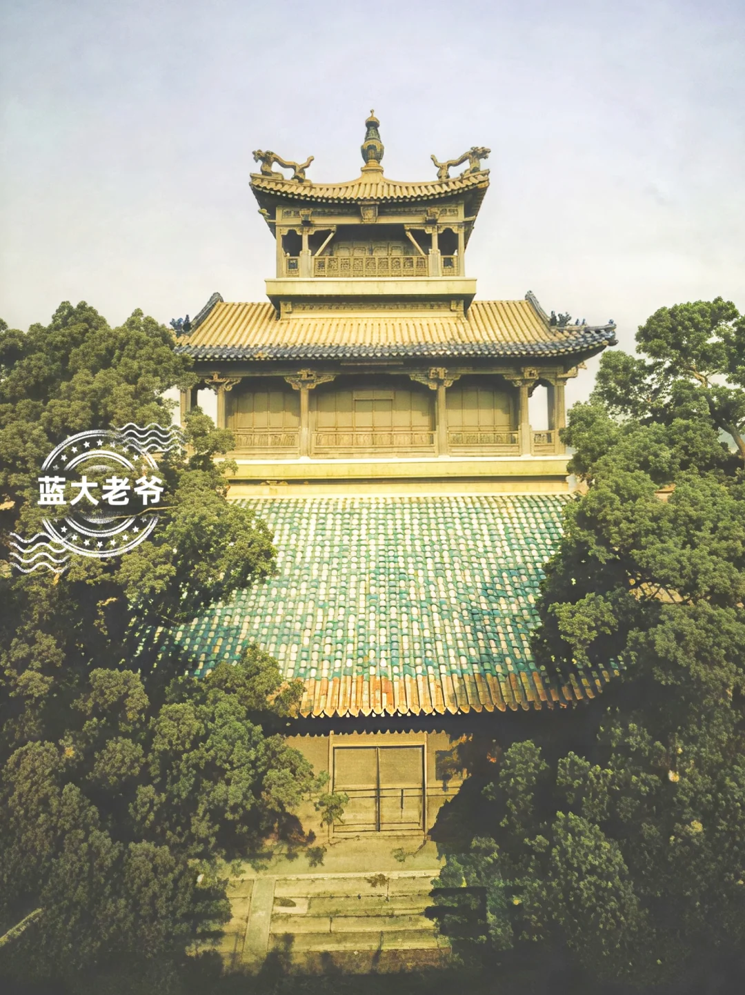2️⃣雨花阁外景,清乾隆13年仿西藏托林寺坛城殿,于明隆德殿中正殿区域建明三暗四的藏密四部佛楼,一层供事部无量寿佛, 龛后立乾隆19年掐丝珐琅坛城三座,德行暗层供行部9尊,三层供瑜伽部5尊,四层供密集大威德上乐金刚