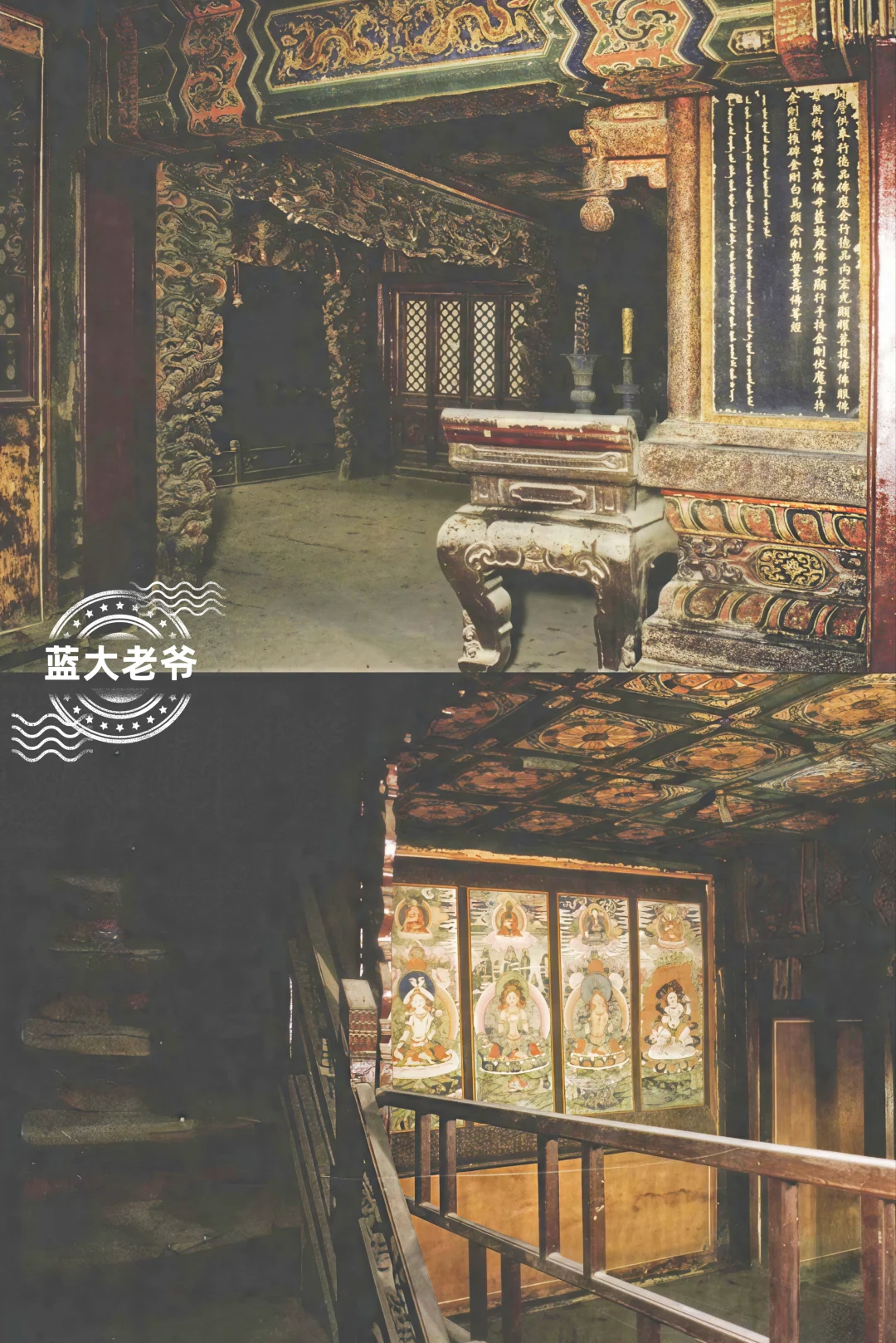 🌅宫内祭祀场所数十处,清以F教为主,另有儒道若干处,佛堂佛楼集中于内廷太上皇与太后太妃宫室,包括宁寿宫佛日楼梵华楼、慈宁宫大佛堂、慈宁宫花园咸若馆宝相吉云楼等、春华门内雨花阁、寿康宫东暖阁、英华殿等,另在承乾宫坤宁宫等多地设龛礼佛;道教包括御花园钦安殿与四神祠、东六宫玄穹宝殿等;儒教则有文华殿东侧传心殿与乾清宫东庑南侧祭孔处;此外另有皇帝祭祖与年祀前的斋戒之所,如奉先殿和斋宫。这些祭祀场所多保持百年前陈设原样未动,遴选分享: