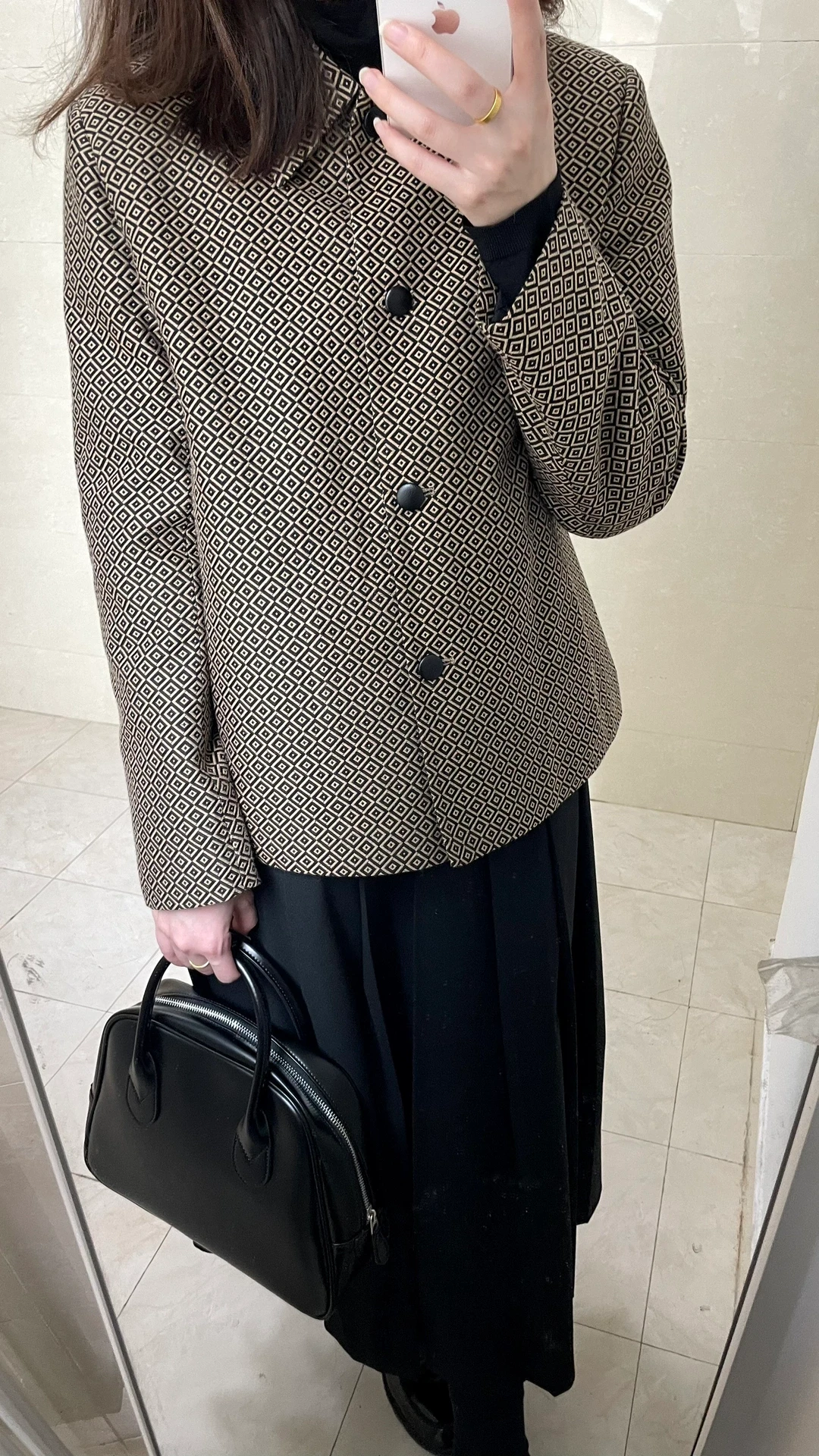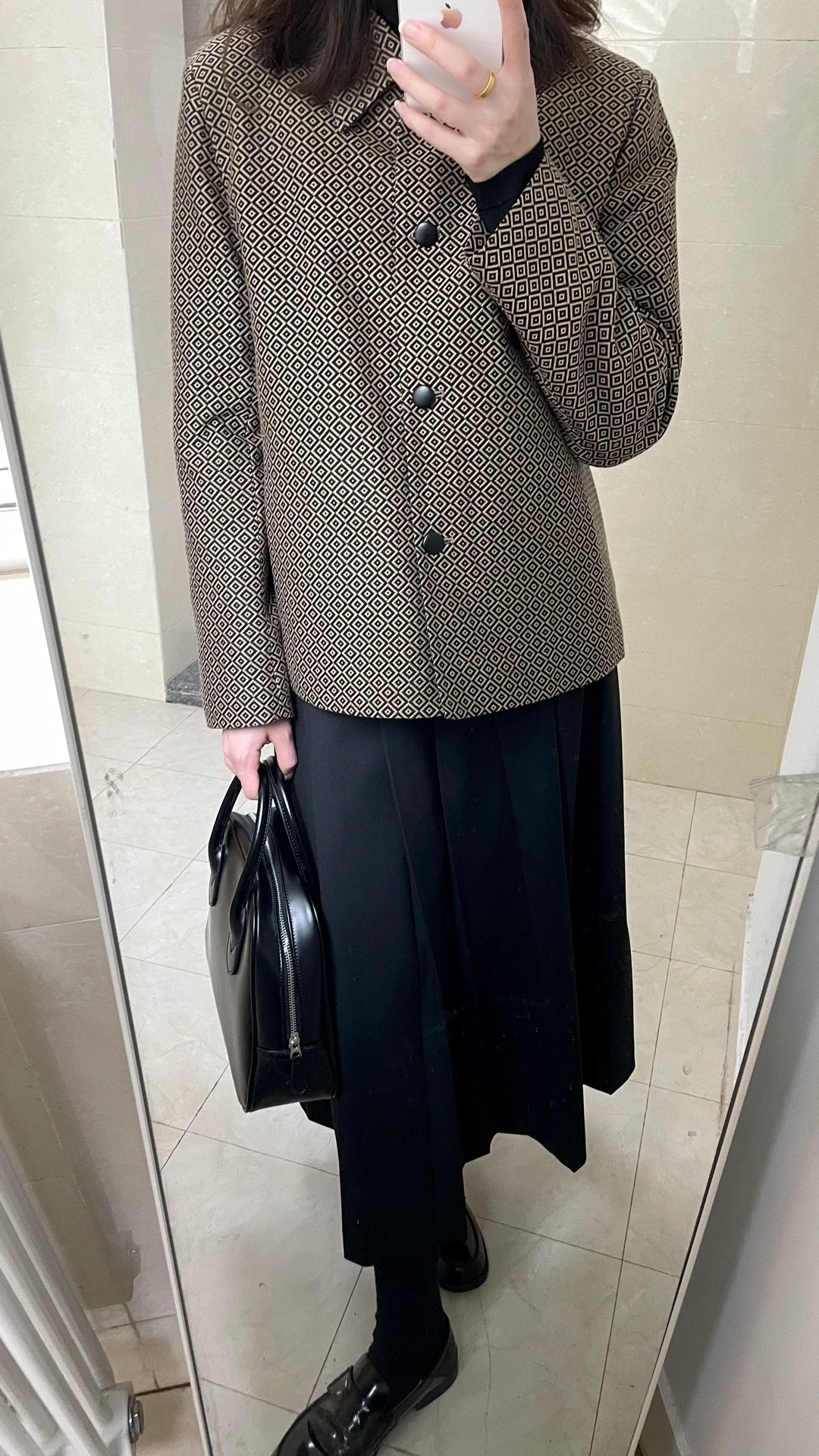 西服版型的小棉服 夹棉其实挺薄的 因为北方降温太快只能室内试穿一下 还好下周又回温了~