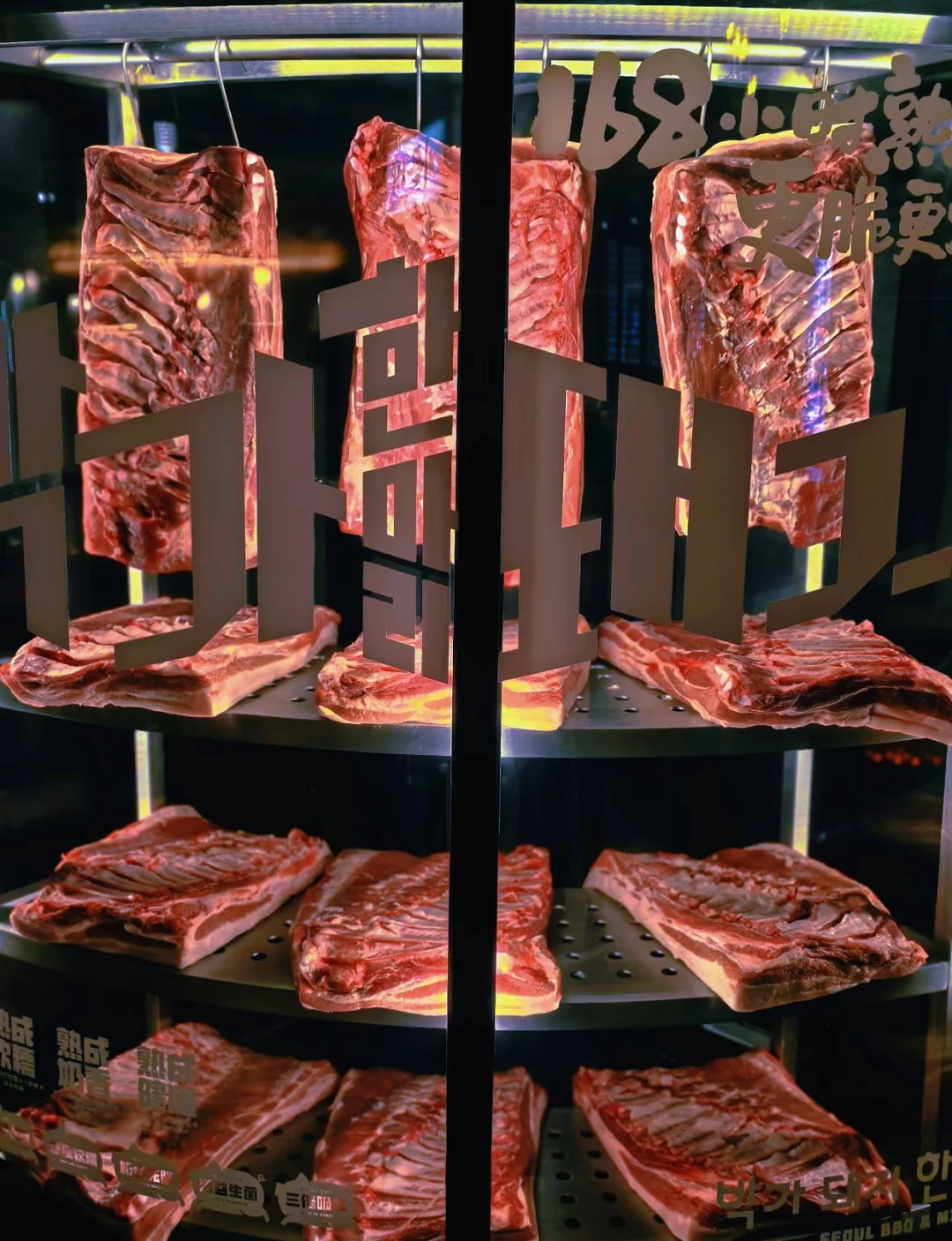今天来了种草很久的一家烤肉店~ 👉店名:朴家一头猪(望京店)👈 这里不仅有168小时熟成烤肉 更有复刻首尔街头的沉浸式环境 连黄子韬、徐艺洋都忍不住专程打卡 望京烤肉控必冲 . 168小时干式熟成黑猪五花肉是镇店王牌,0-4℃恒温恒湿慢发酵,排酸锁鲜,烤后焦香爆汁,脂香超浓郁! 店内是韩式复古氛围感装修,原木桌椅配暖黄灯光 一楼热闹欢聚,二楼私密包间超适合小聚,随手拍都是韩系大片。 . 黄子韬等明星都来打卡同款 人均百元就能get爱豆同款快乐 还能享专业代烤服务,闭眼冲不踩雷!