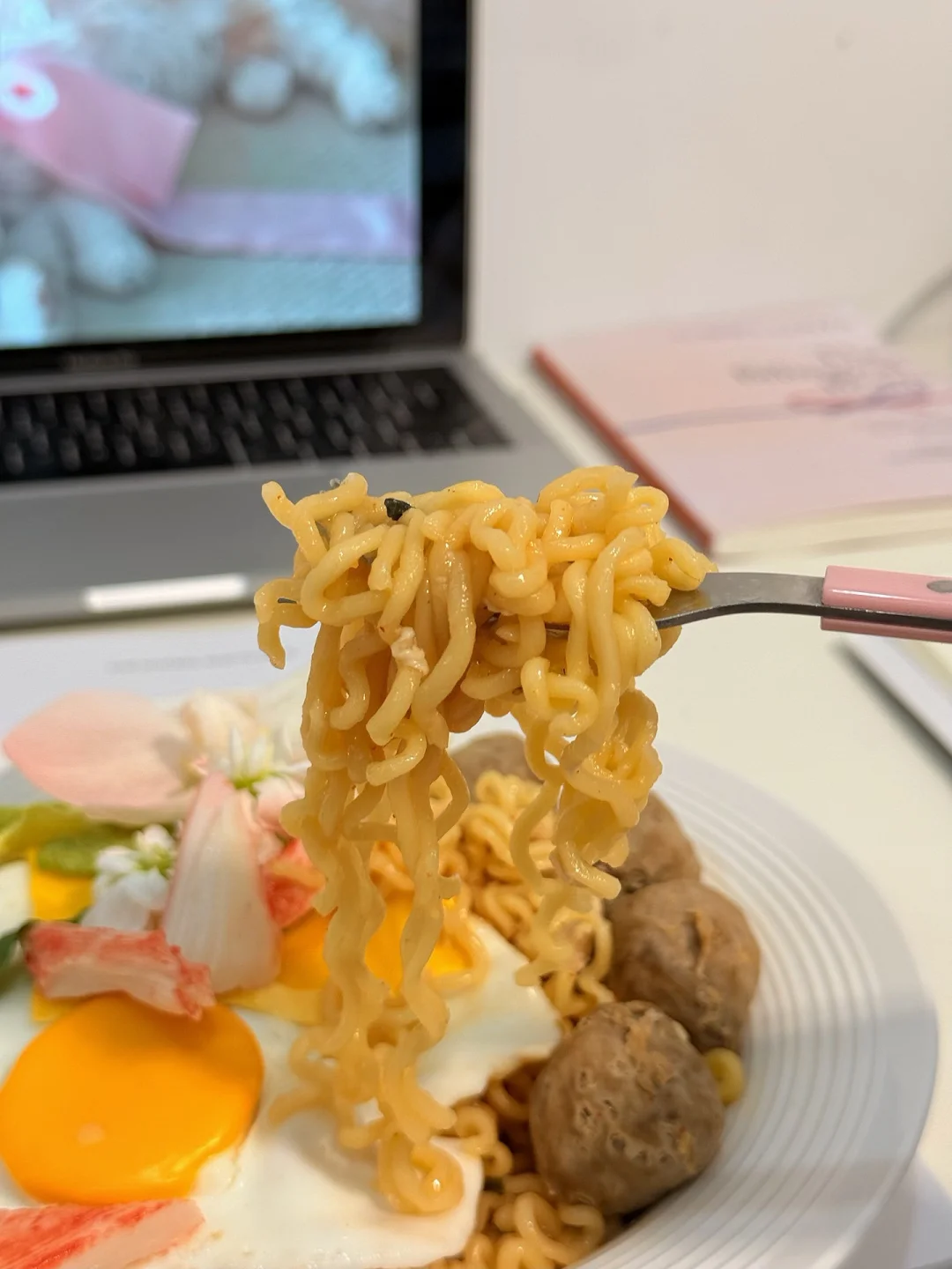 里面加了牛肉丸、可生食鸡蛋(蛋黄吃起来糯糯的好好吃)、鸡肉片、蟹棒、芝士…