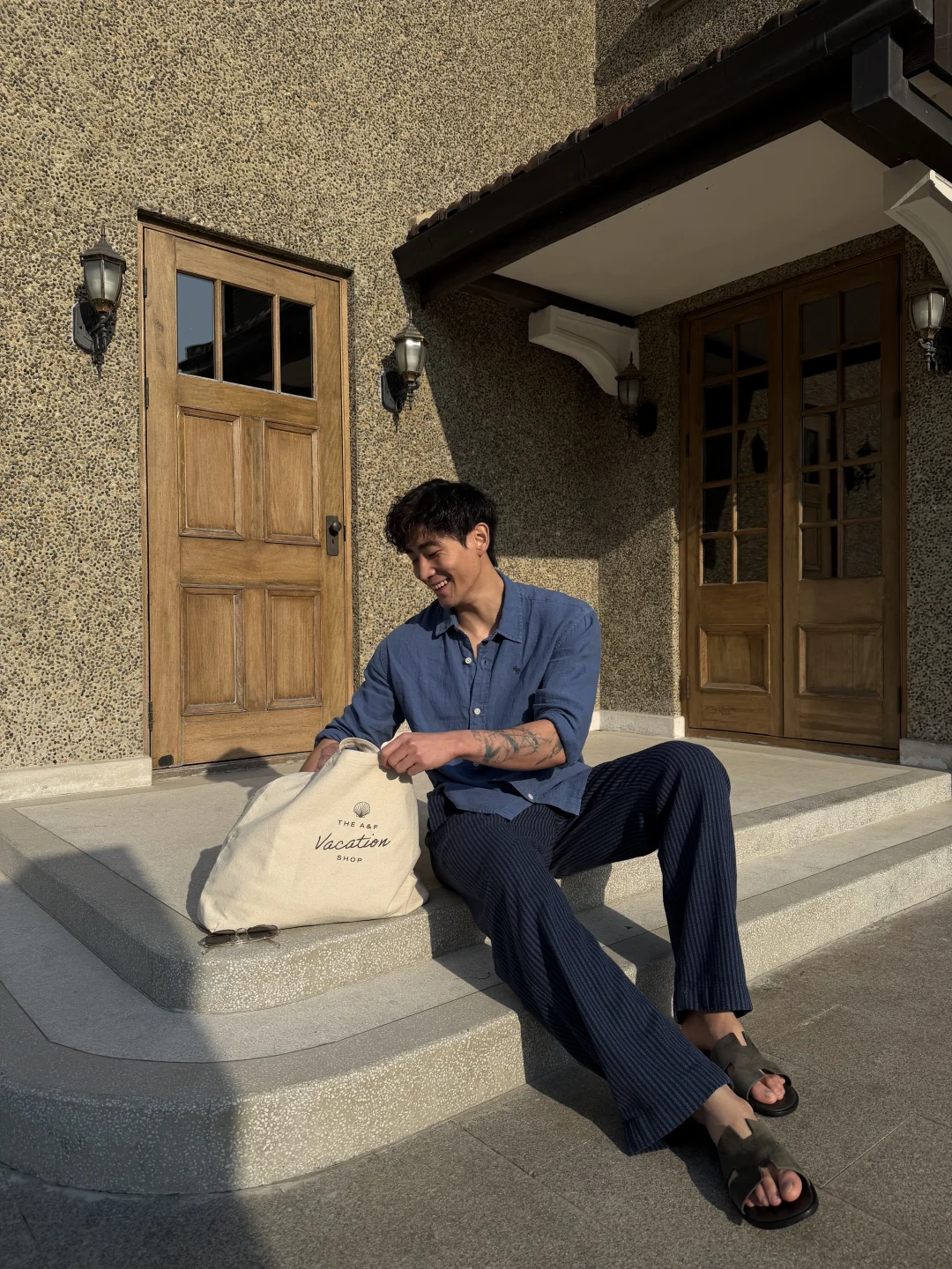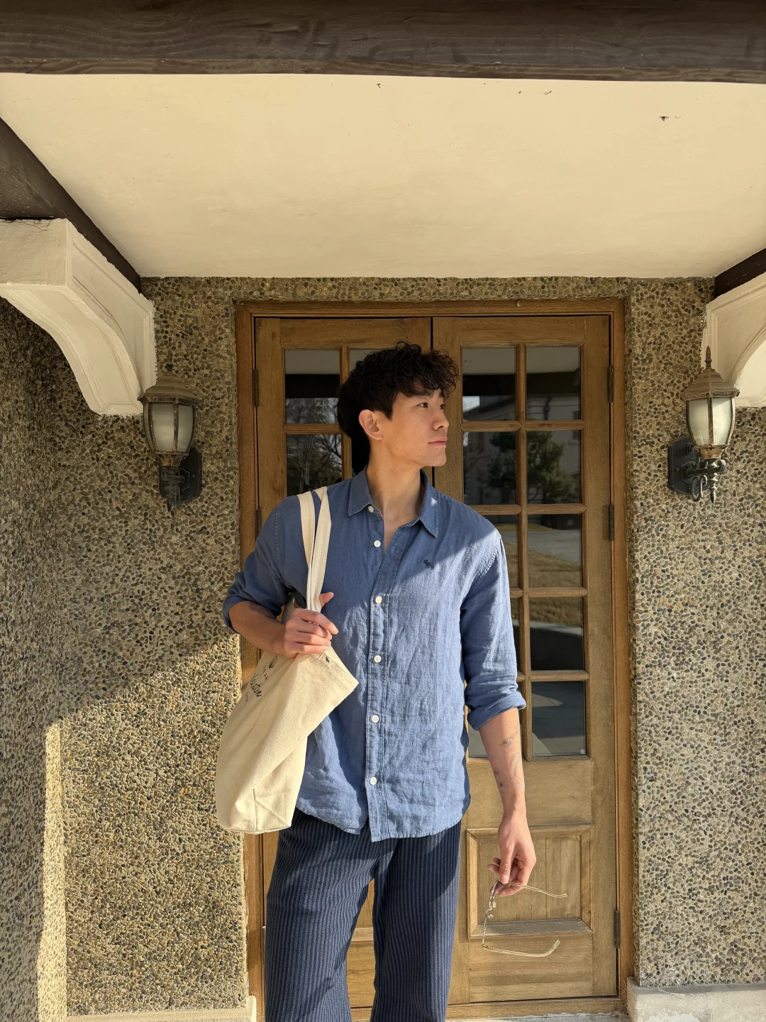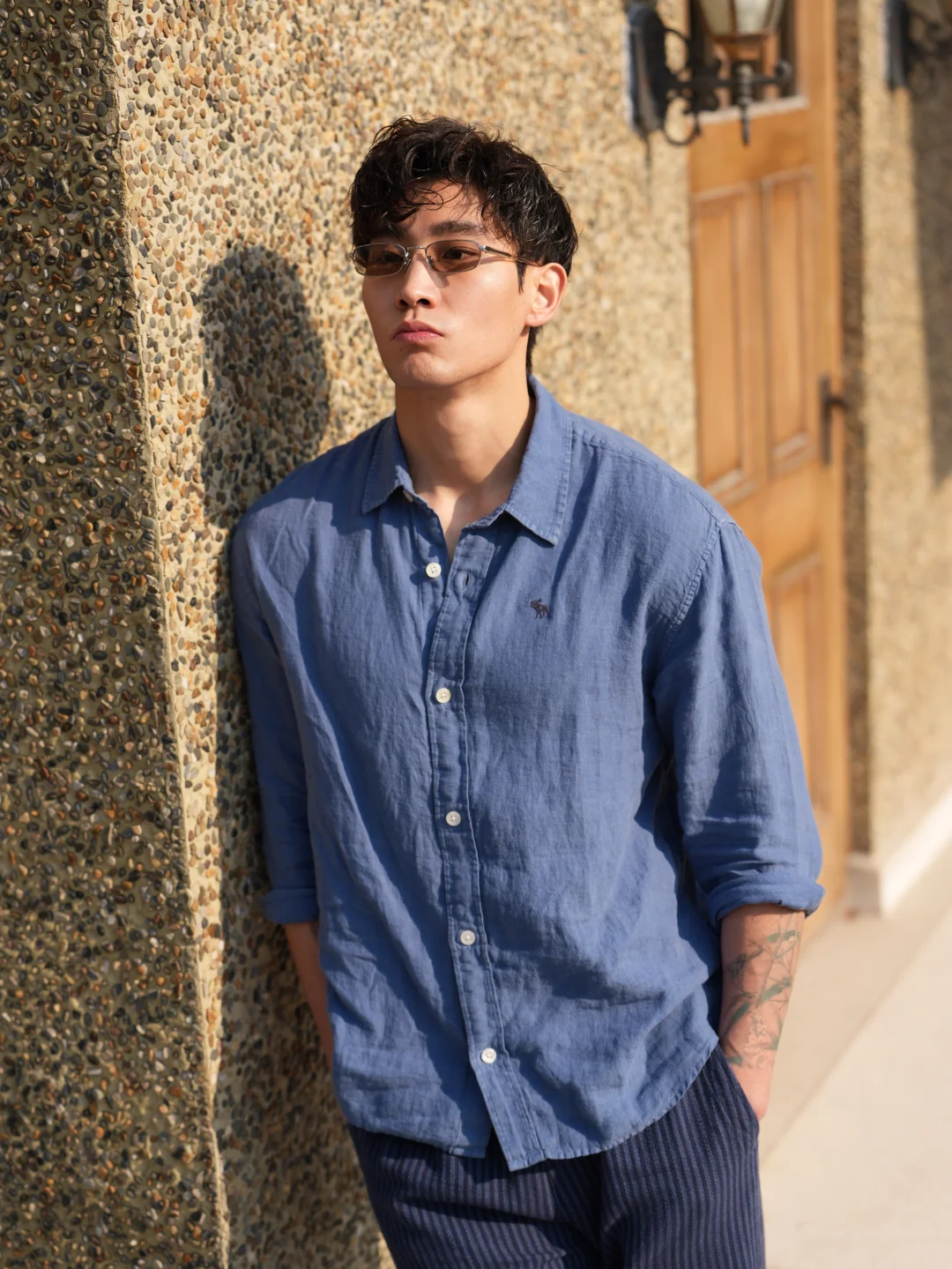 蓝色很清爽,亚麻很自由。假期穿搭不需要用力,舒服本身,就已经很迷人了。