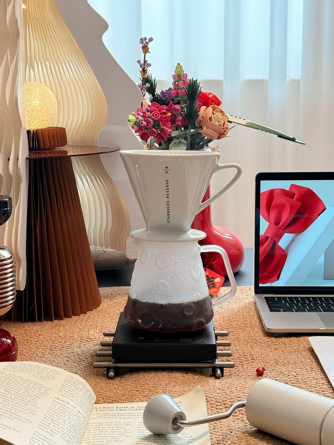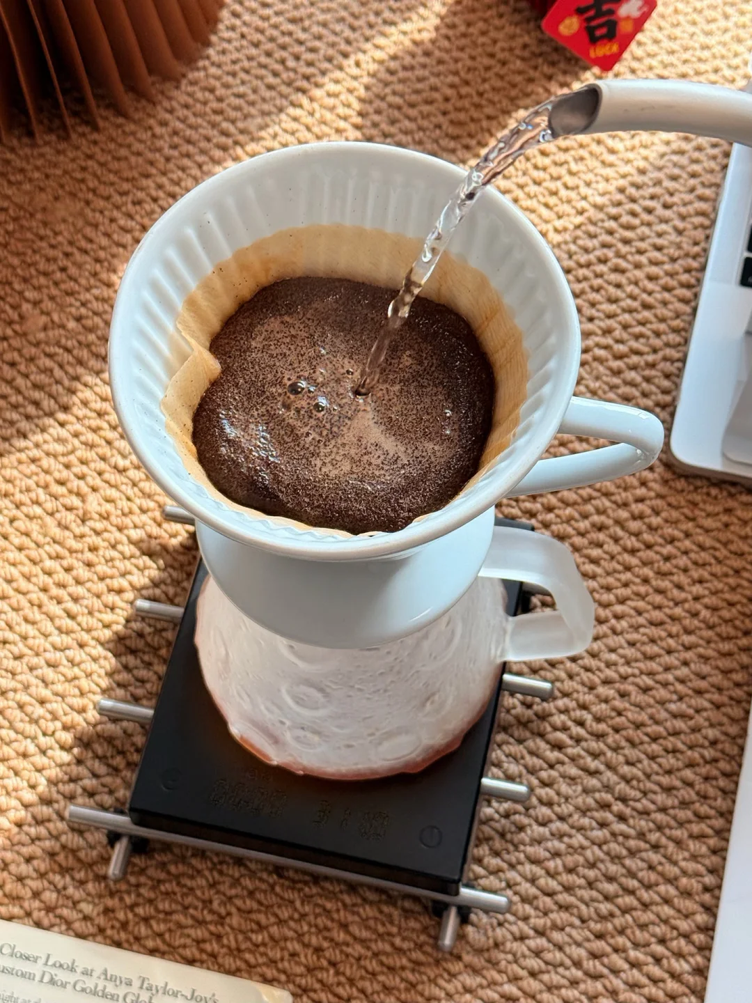 看着琥珀色的咖啡液缓缓落下