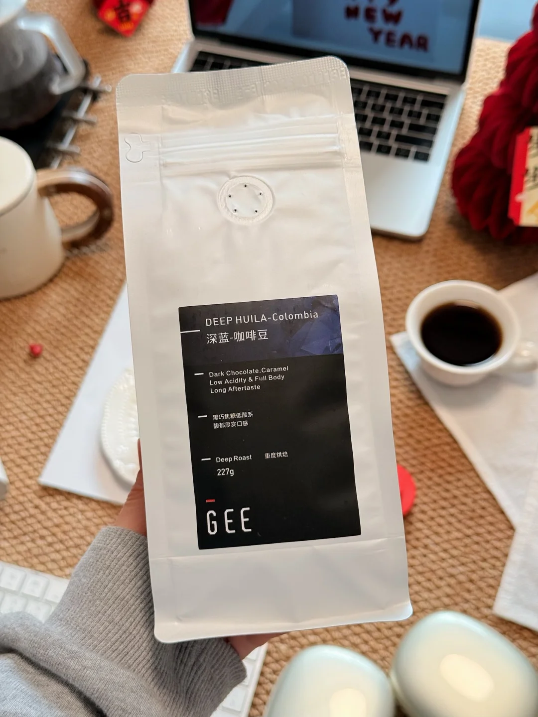 打开一包Gee Coffee深蓝咖啡豆