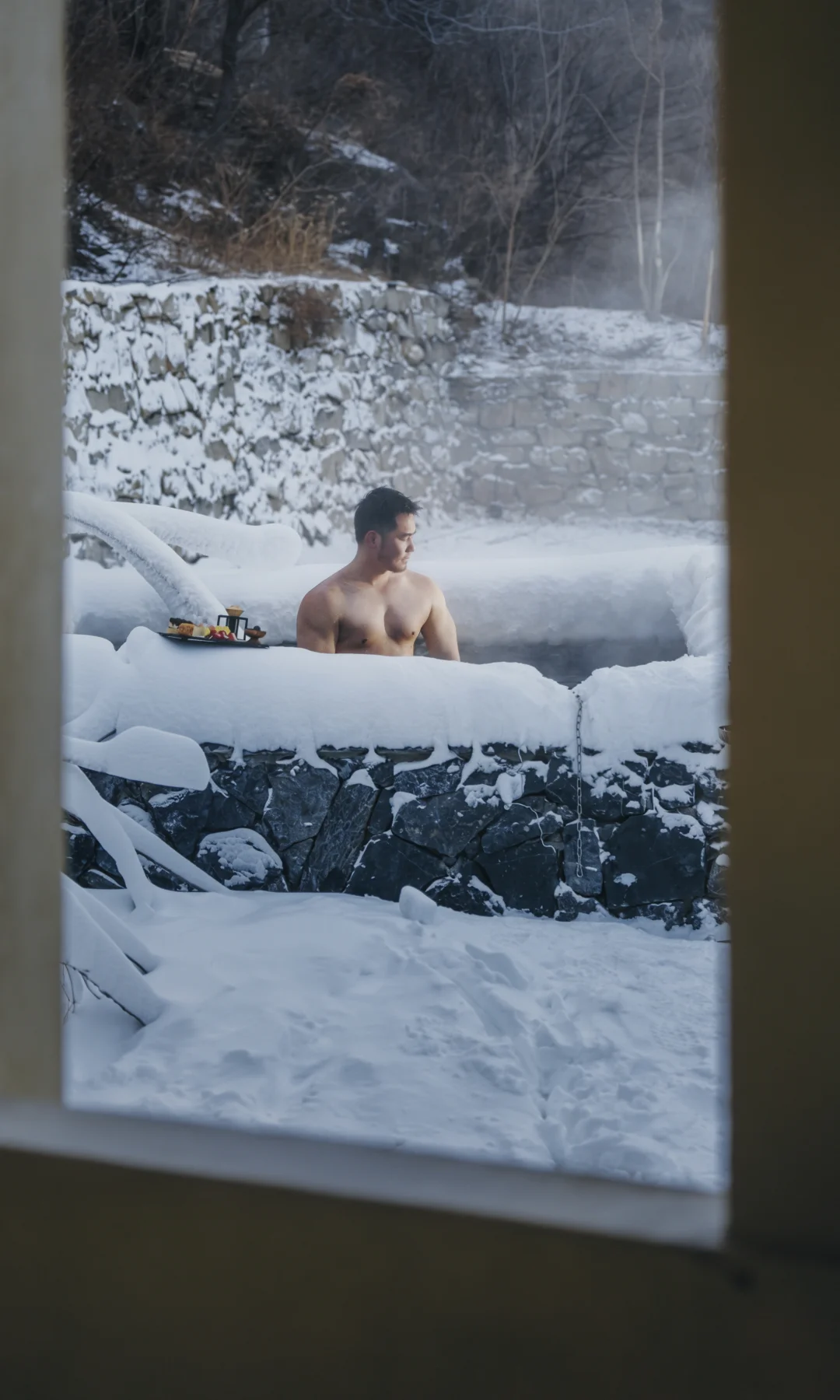 冬天在这里,是泡着温泉看山崖的静谧