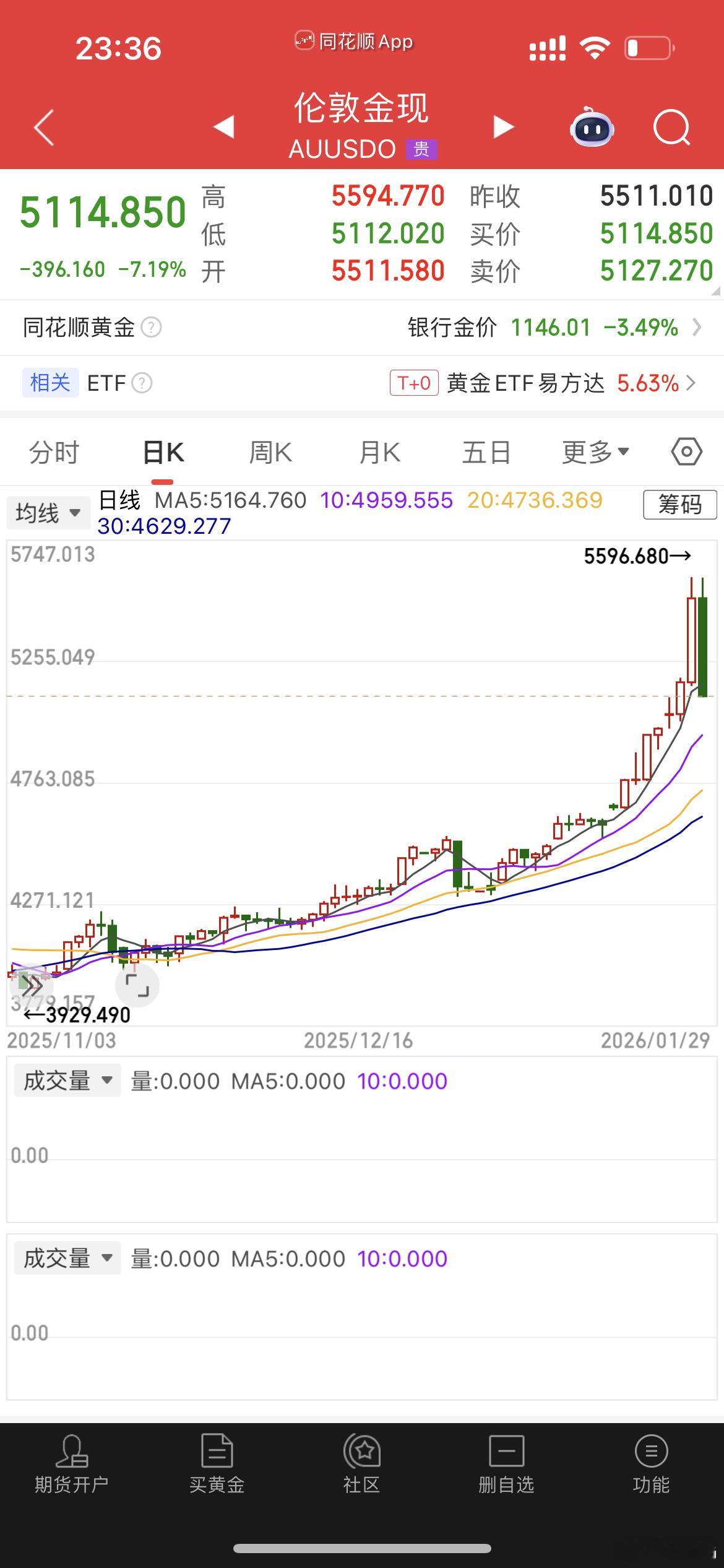 牛,这黄金跌的真猛