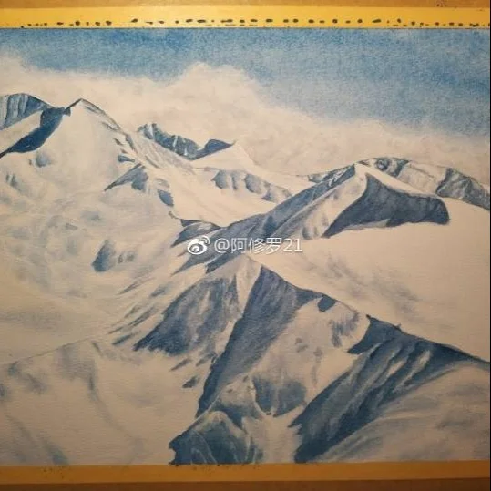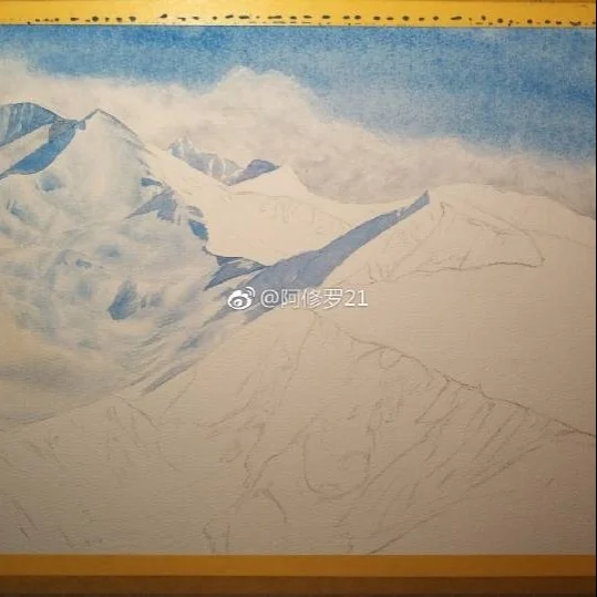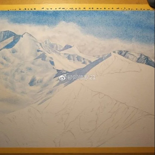 水彩雪山
