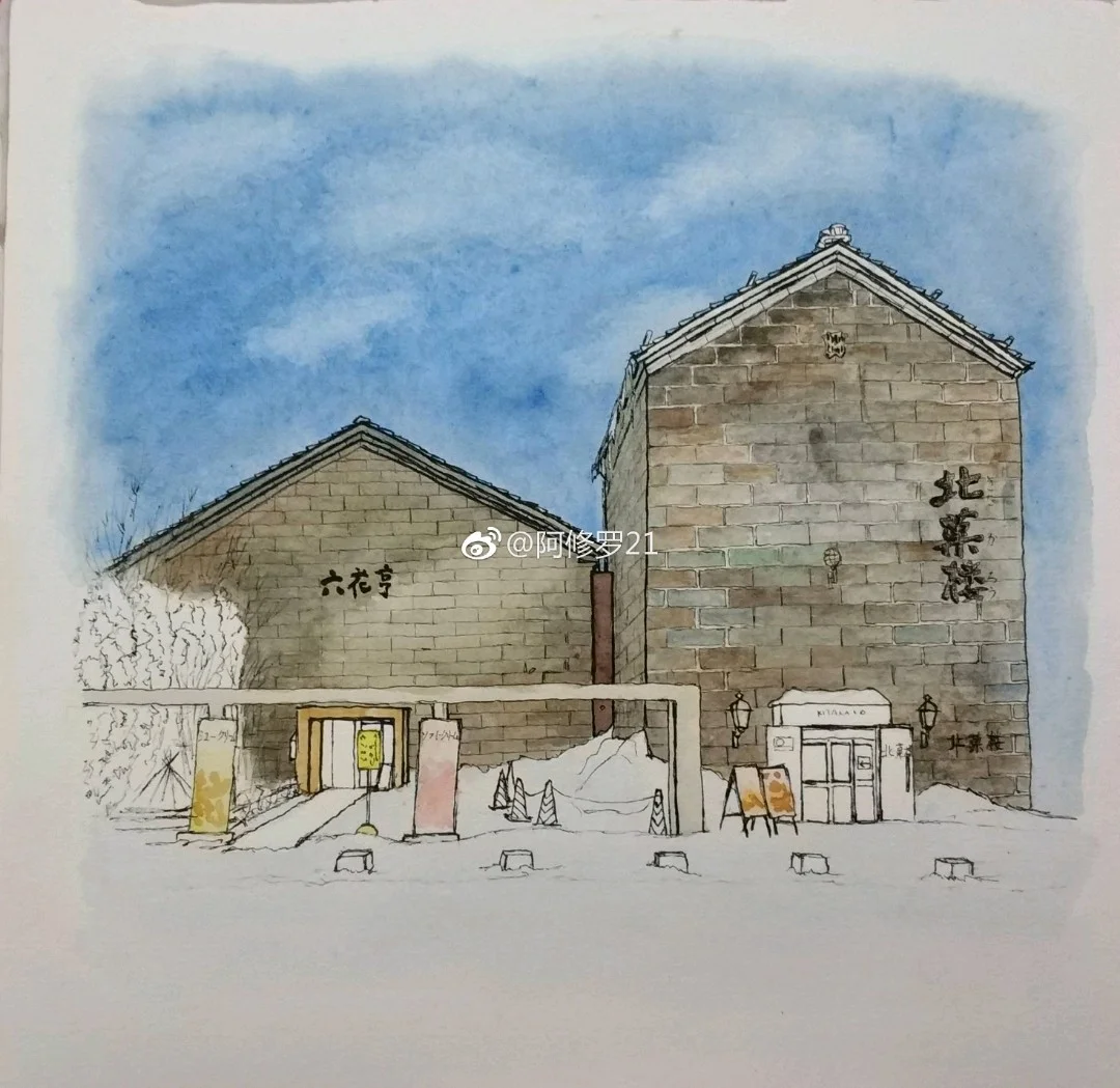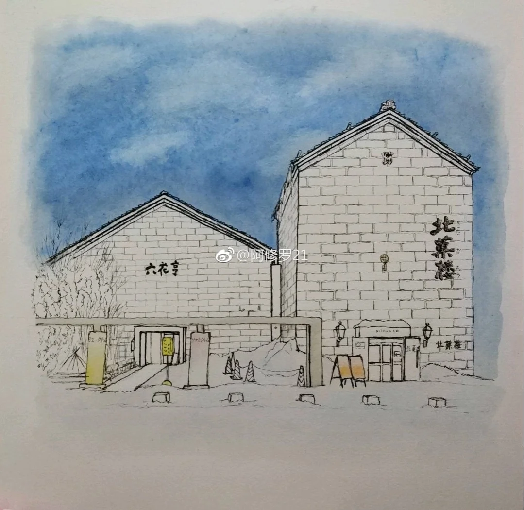 钢笔淡彩。六花亭&北菓楼。