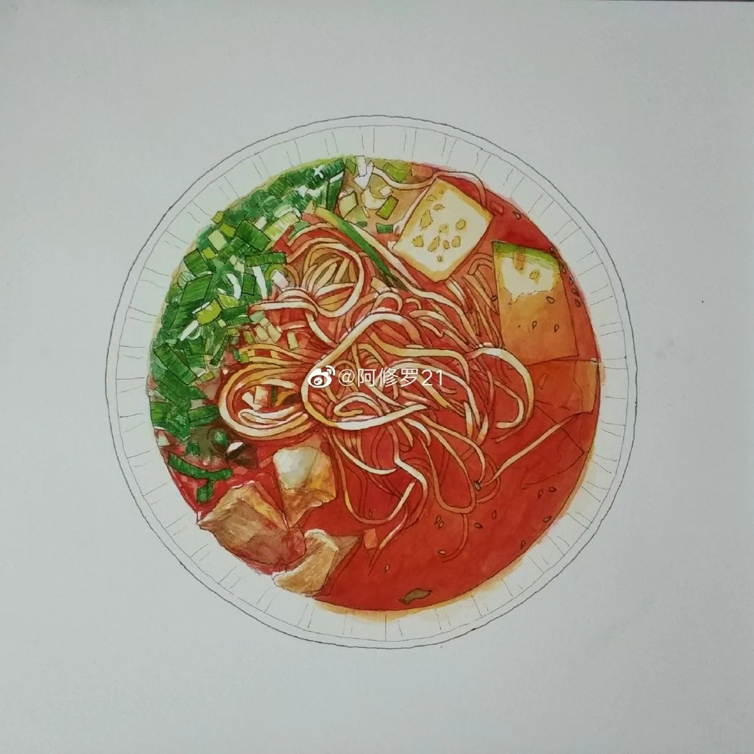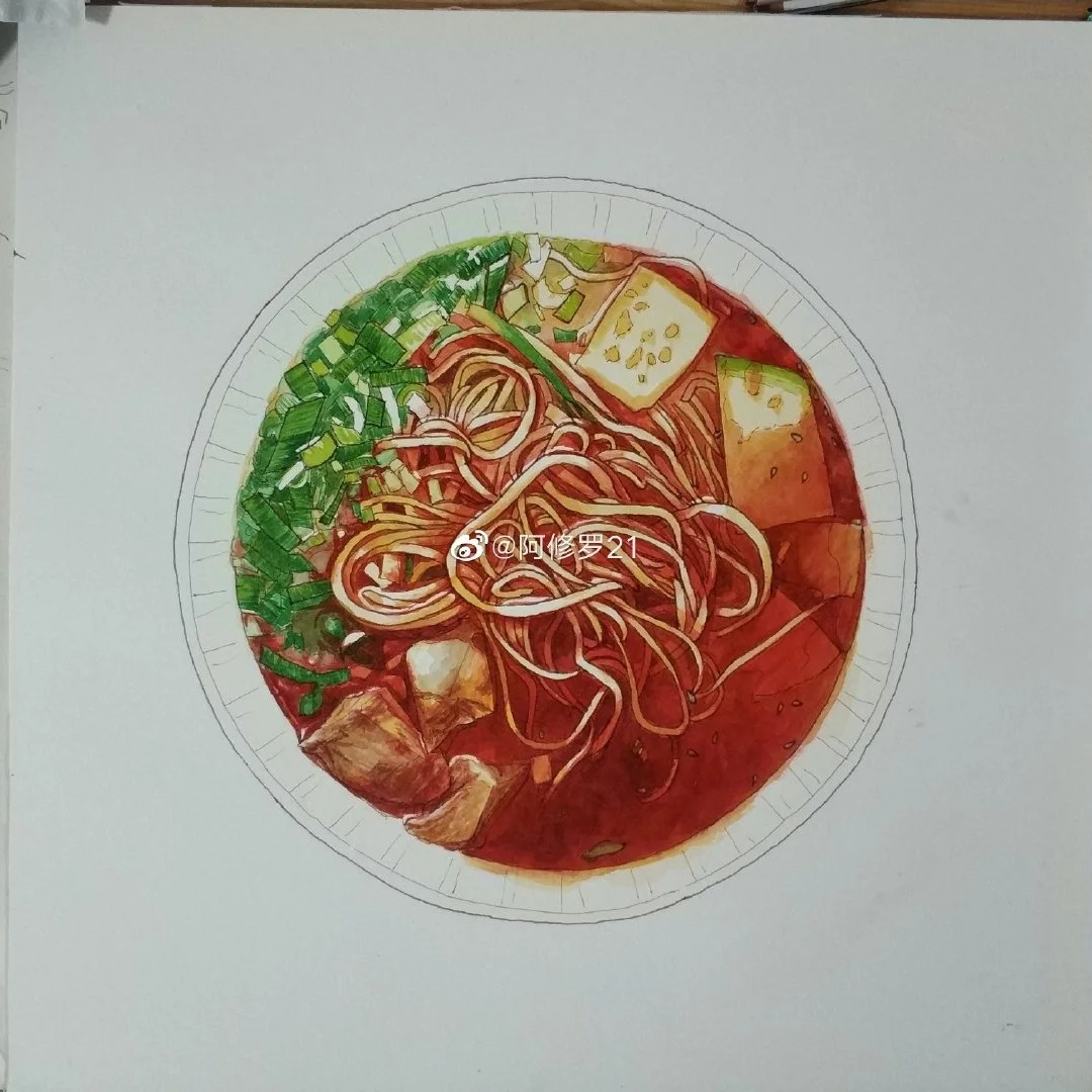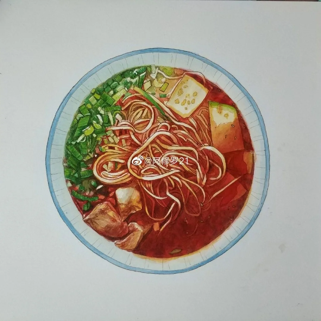 钢笔淡彩 牛肉拉面