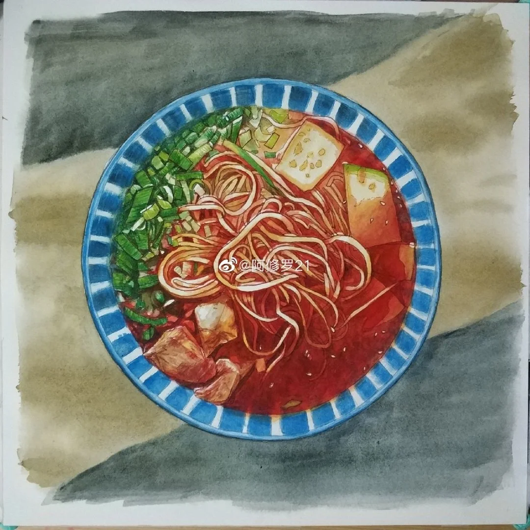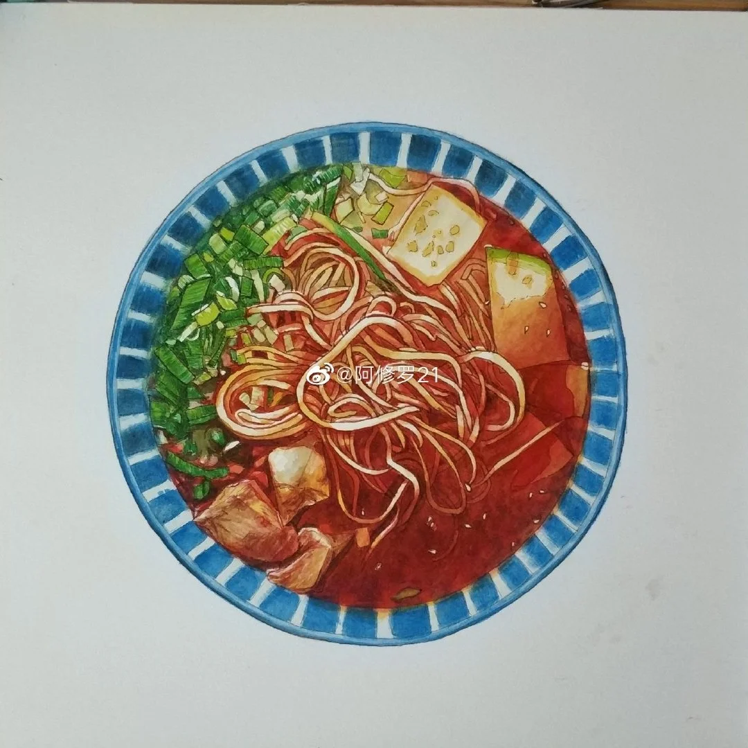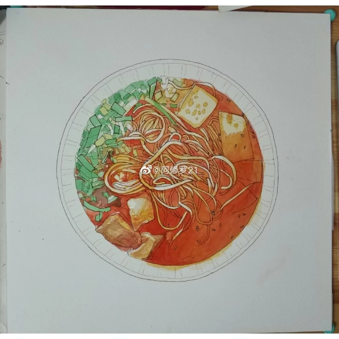 钢笔淡彩 牛肉拉面