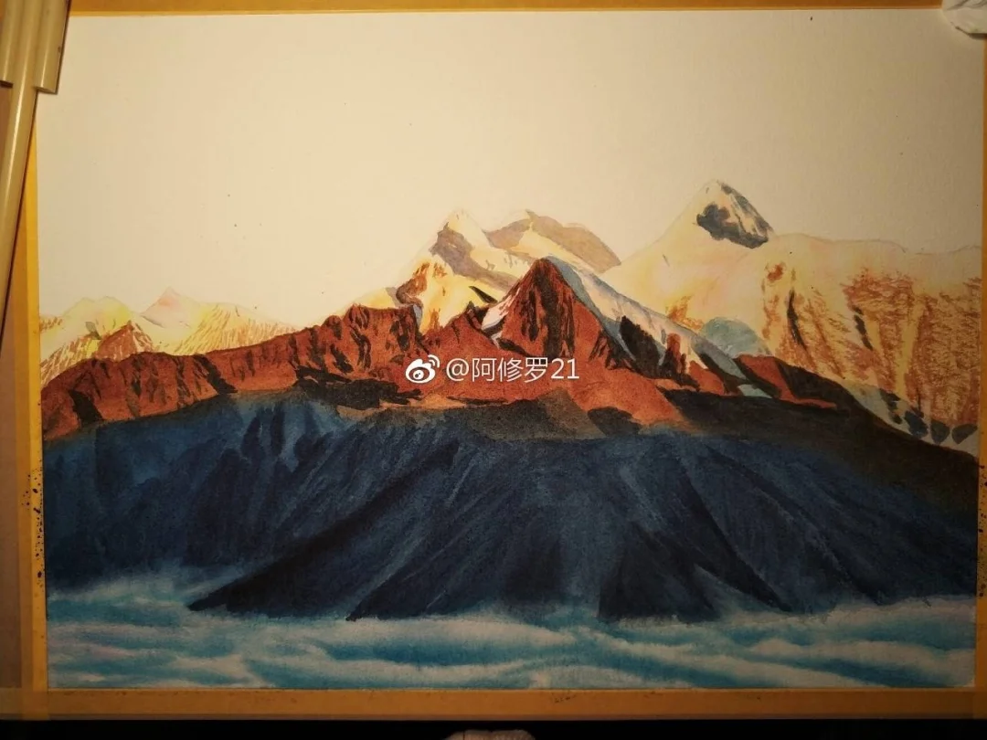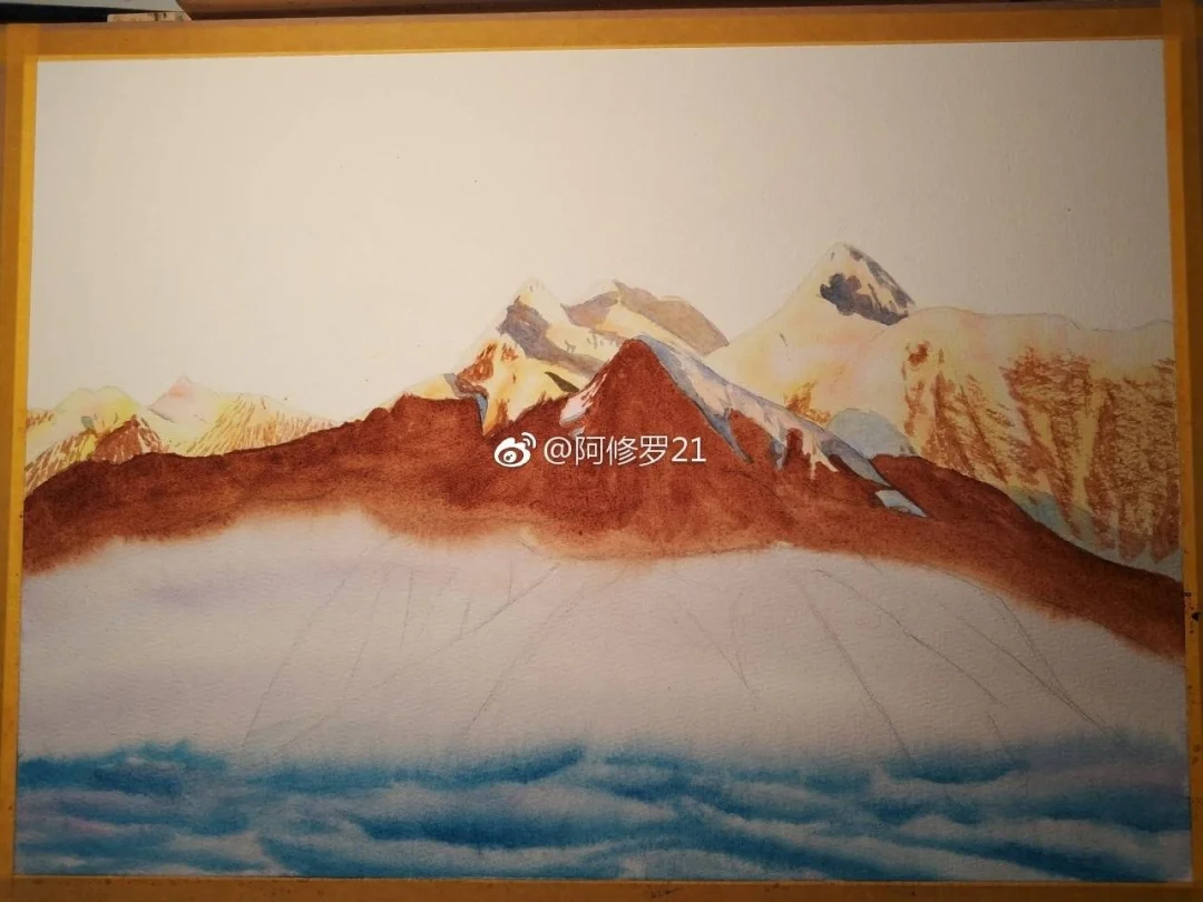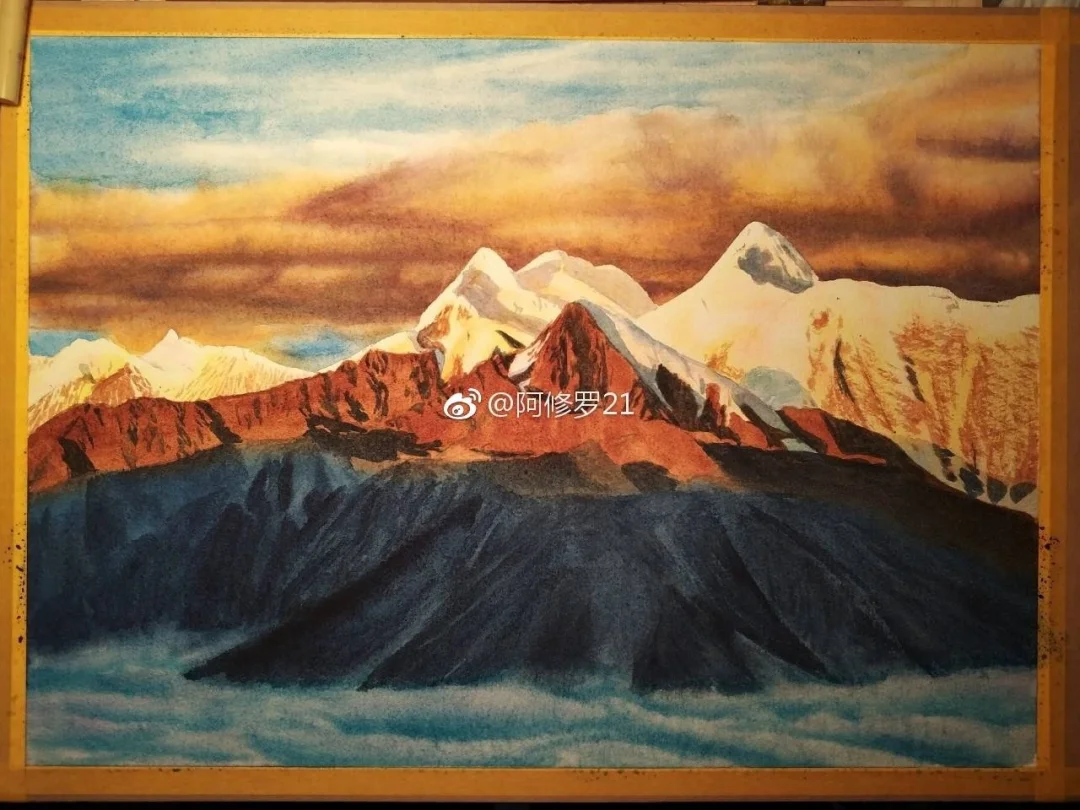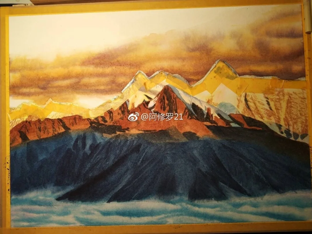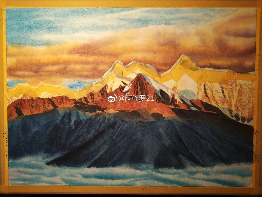蜀山之王贡嘎。水彩。