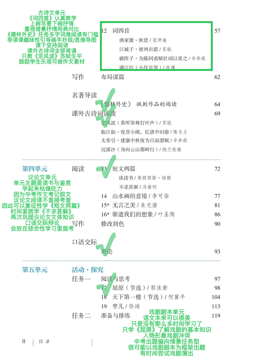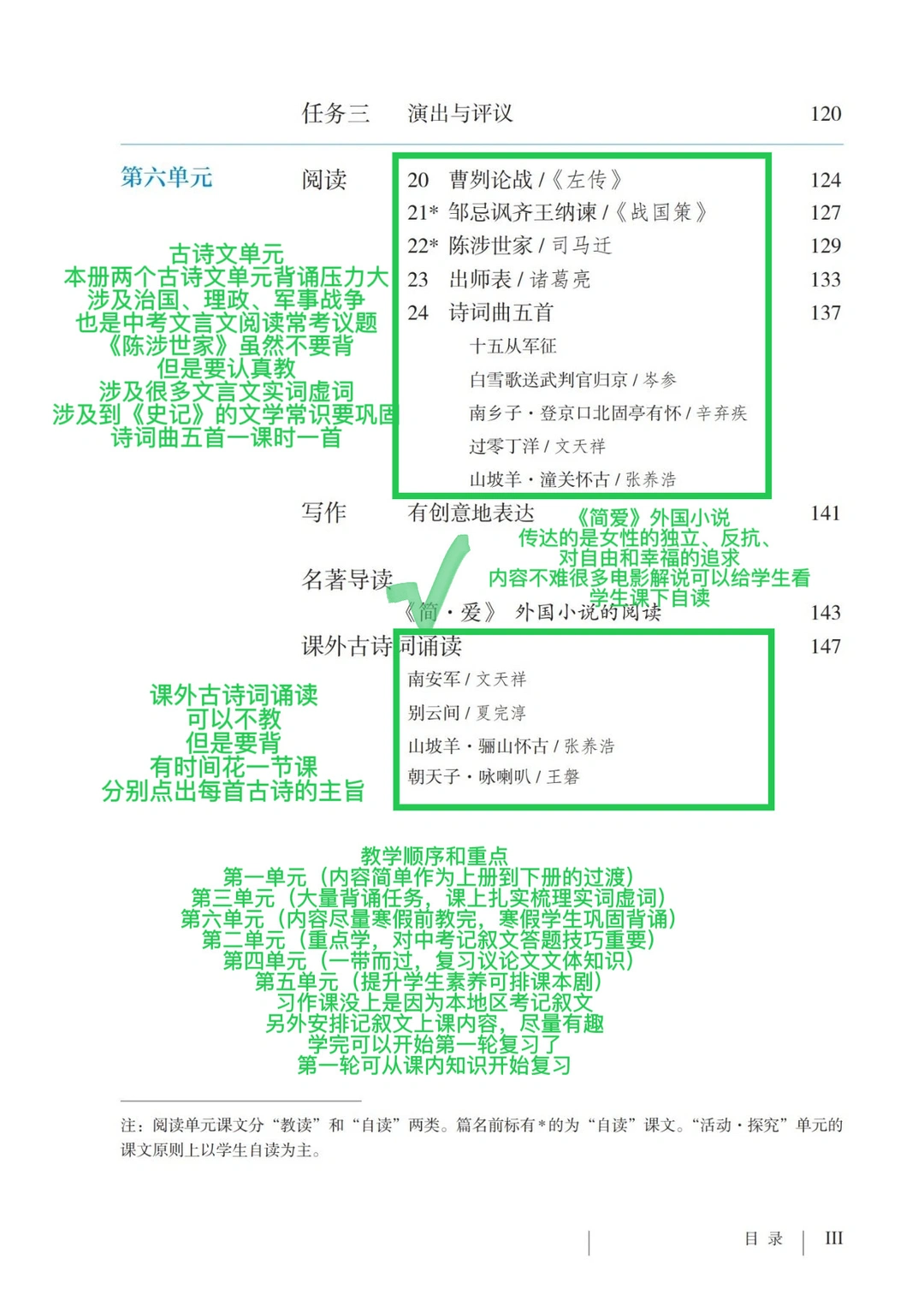 大原则优先古诗文和小说教学,作文不按单元习作上,可以参考我的做法,单周小练笔➕作文素材积累,双周作文教学课➕周末大作文,其他内容没时间就只能跳过了