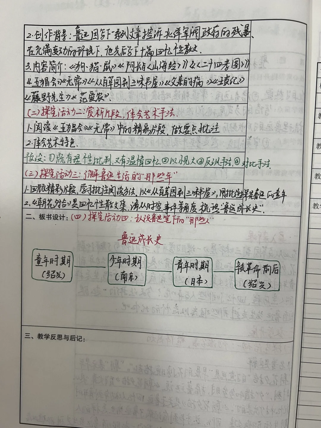 包括从《百草园到三味书屋》《往事依依》《再塑生命的人》《论语十二章》写作 如何突出中心 整本书阅读《朝花夕拾》精读 略读 浏览,更完这个单元不更新七年级的手写教案啦,今年不带初一。