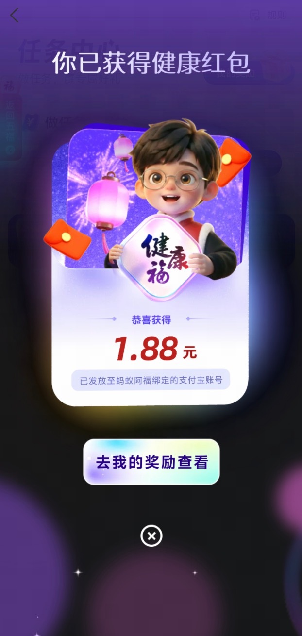 五福的第一笔钱到账了 健康这一块,咱就是说,红包多少已经无所谓了!健康福必须领到