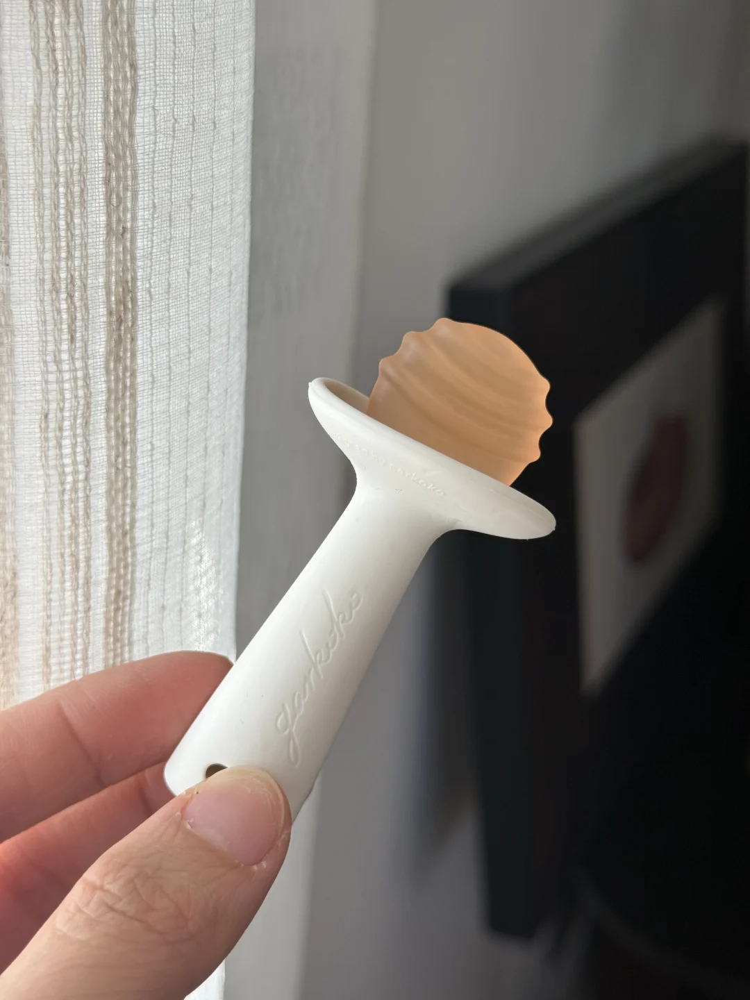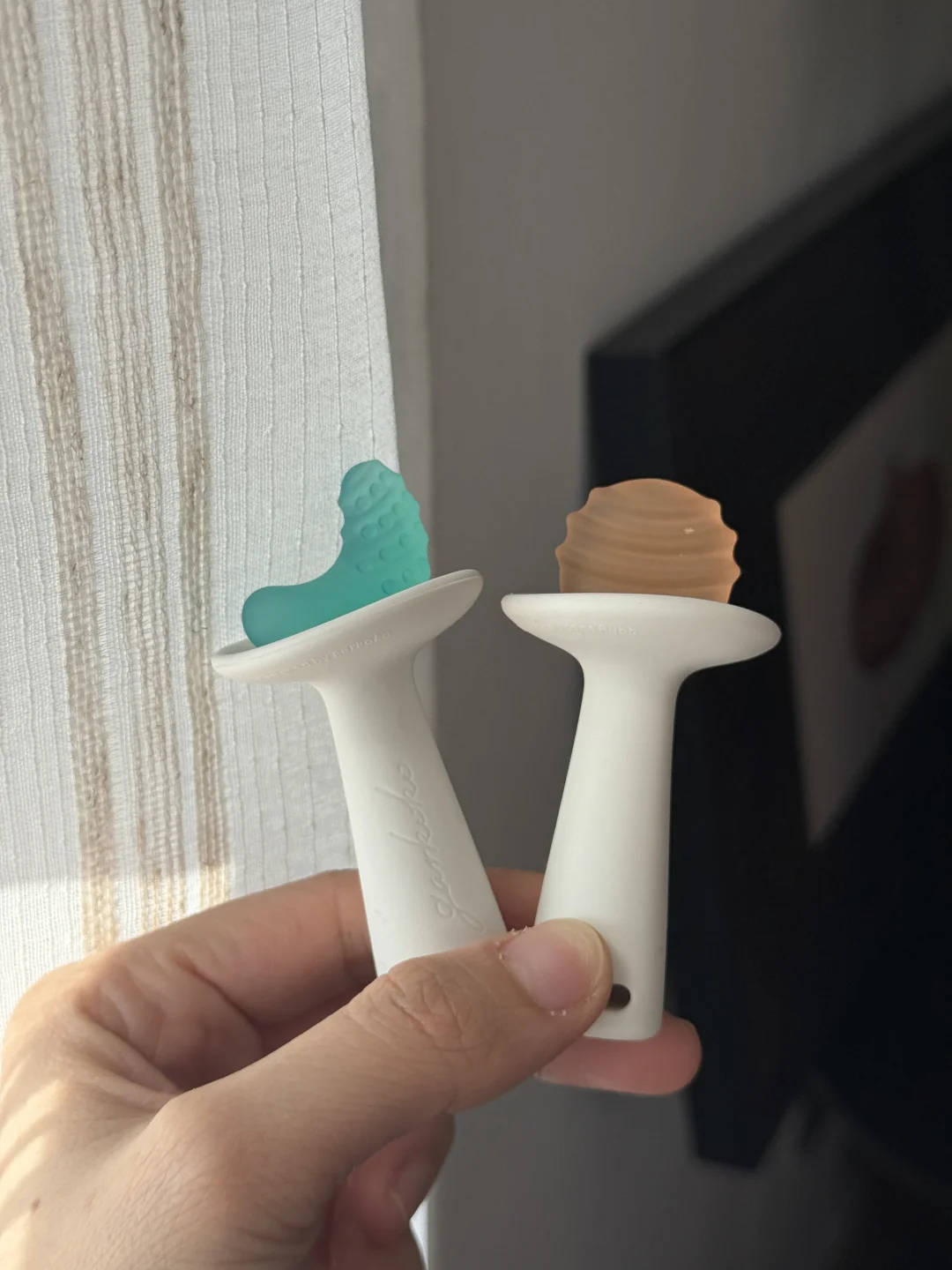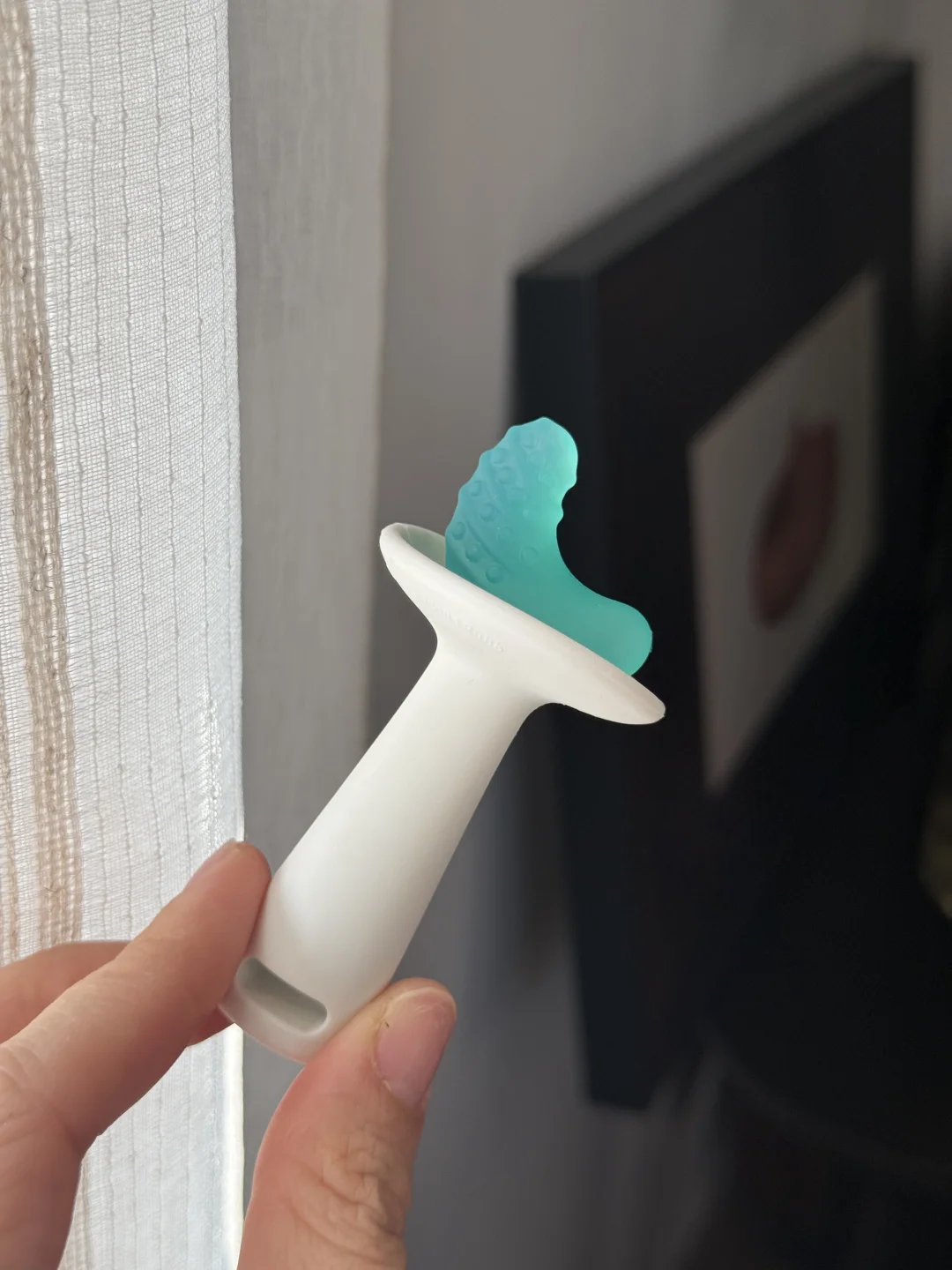 这个小月亮造型的牙胶刚好接住小牙牙