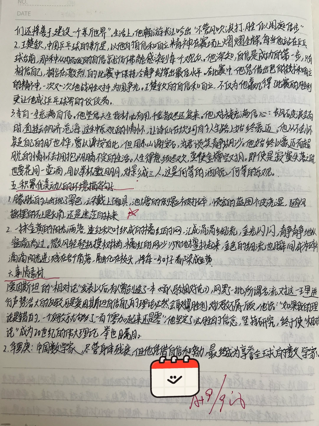 主要按照这些方面来积累: 标题、名言名句优美句子、开头结尾、人物素材、环境描写、相关事件 分主题进行:自信、勇敢、坚持、乐观、善良、宽容
