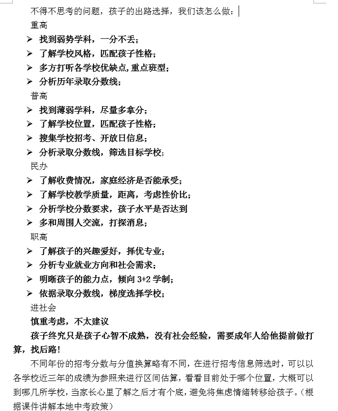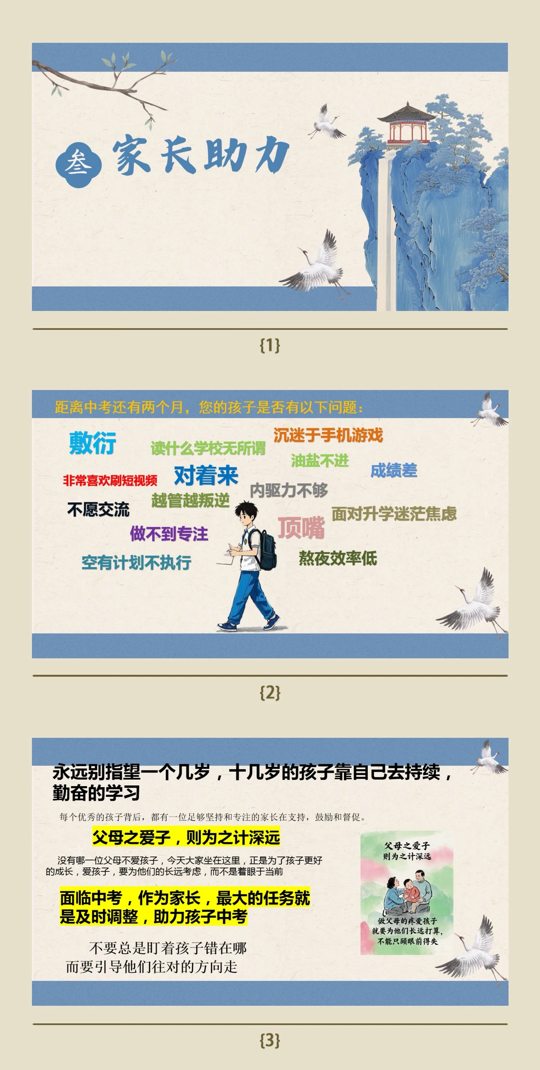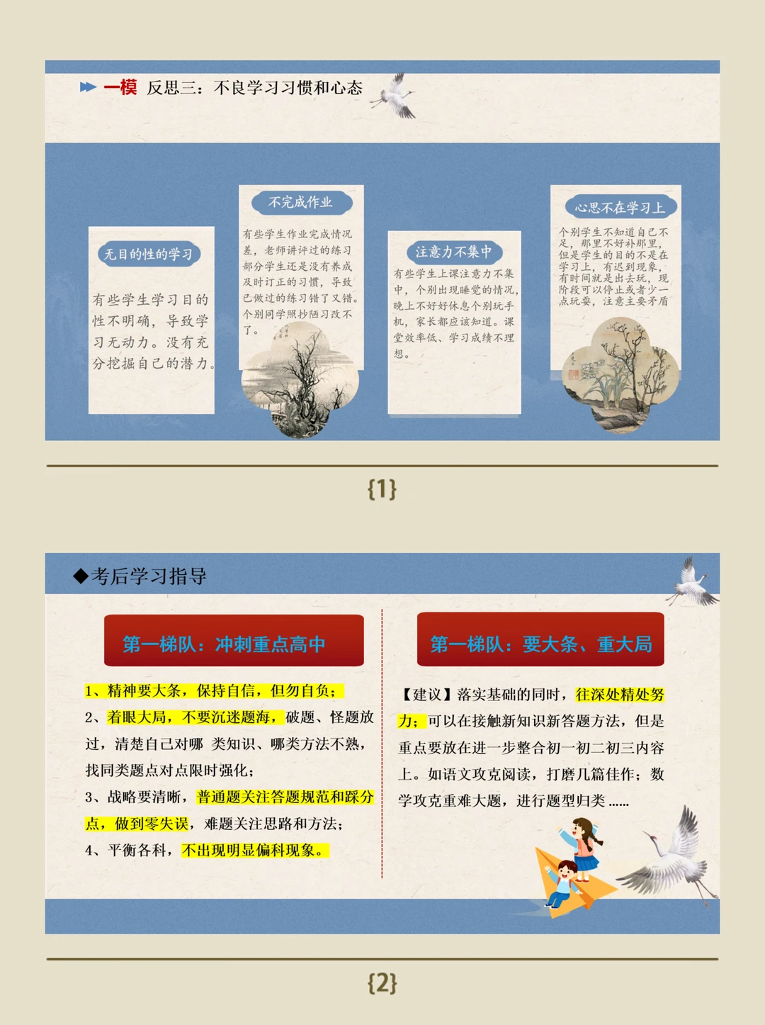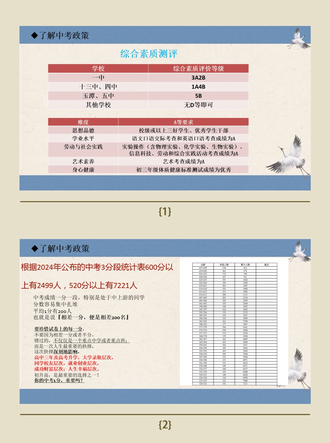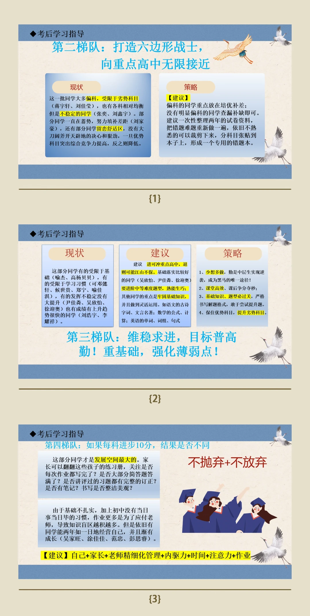 与其他年级家长会的侧重点不同,主要是讲解中考政策和根据一模考试成绩给不同梯队的孩子提出考后学习建议