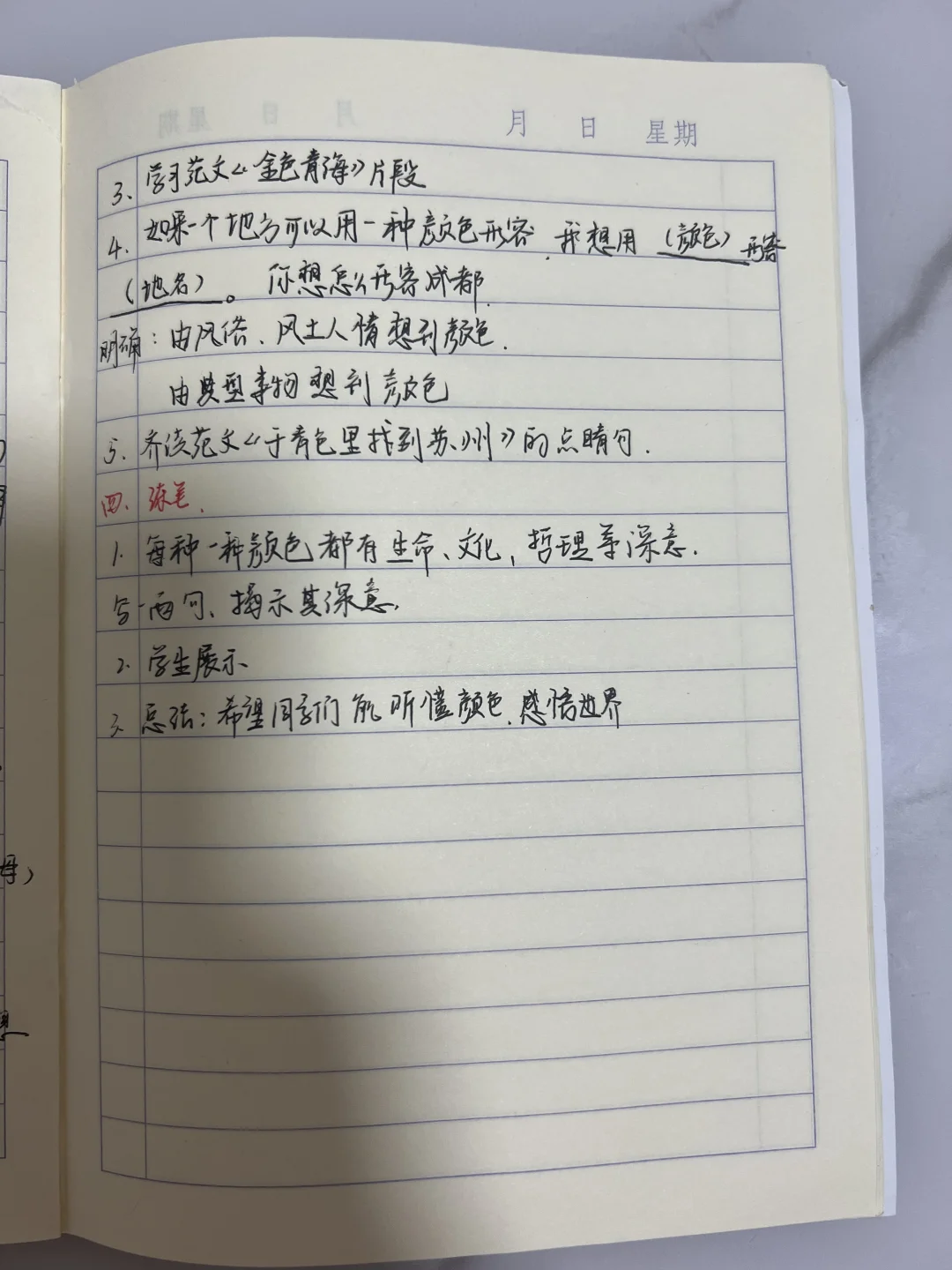 👋思考:用颜色来写《写作 写出人物精神》聚焦到人,再教写作方法是不是会更有效果,不一样的颜色不一样的人,别样的烟火。