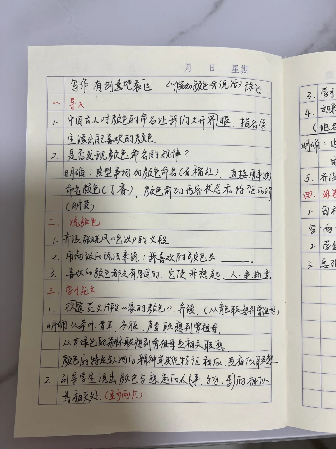 👋整体思路:识颜色,说颜色,学习范文,由颜色相关联想或相关联想人、事、物、景,最后练笔