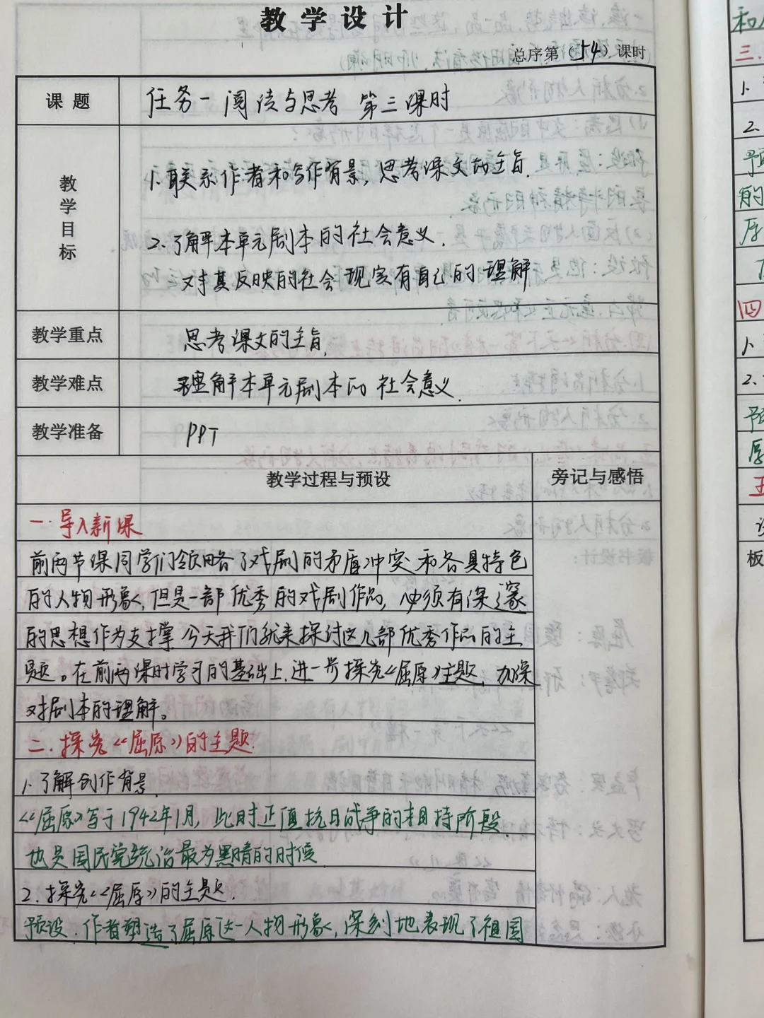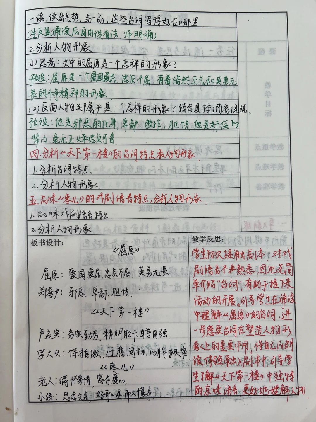 九下语文第五单元教案➕板书➕反思