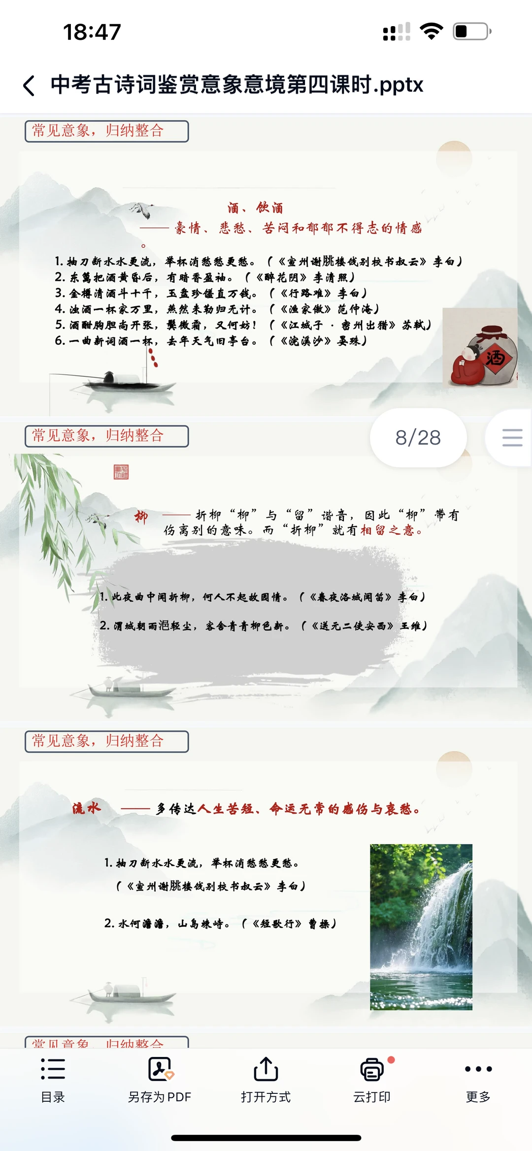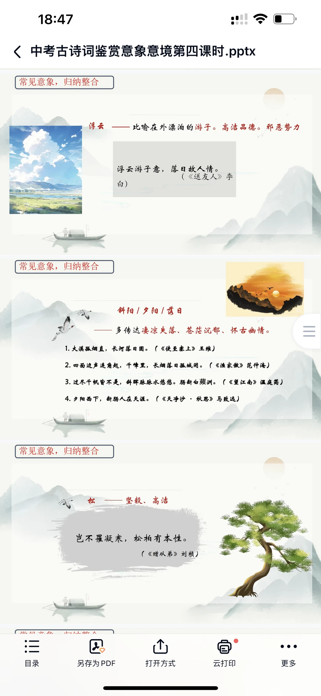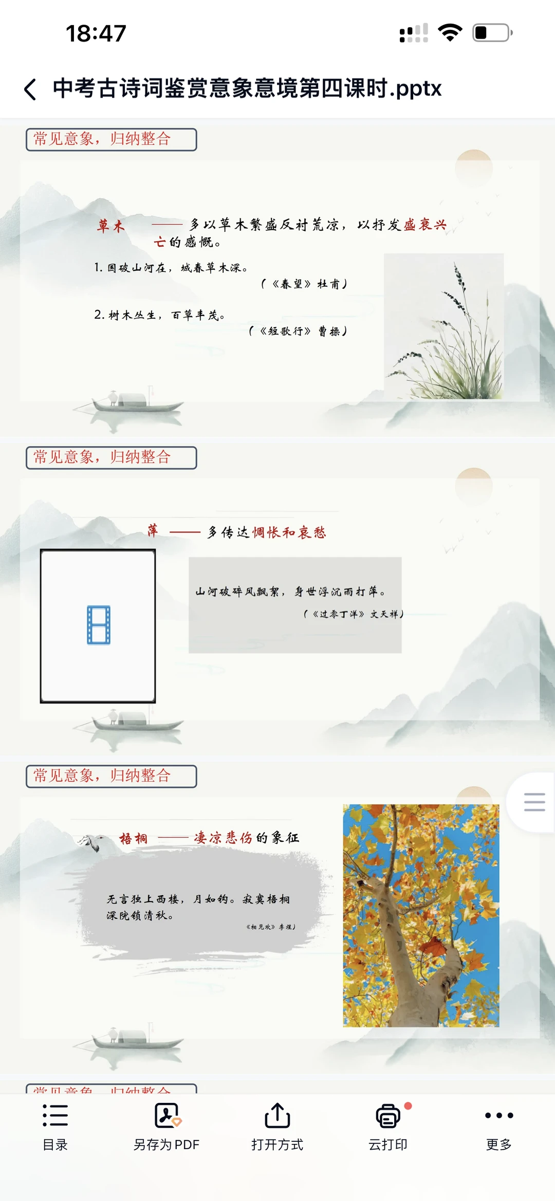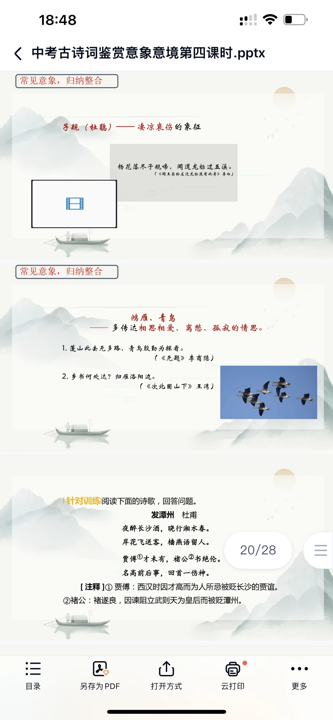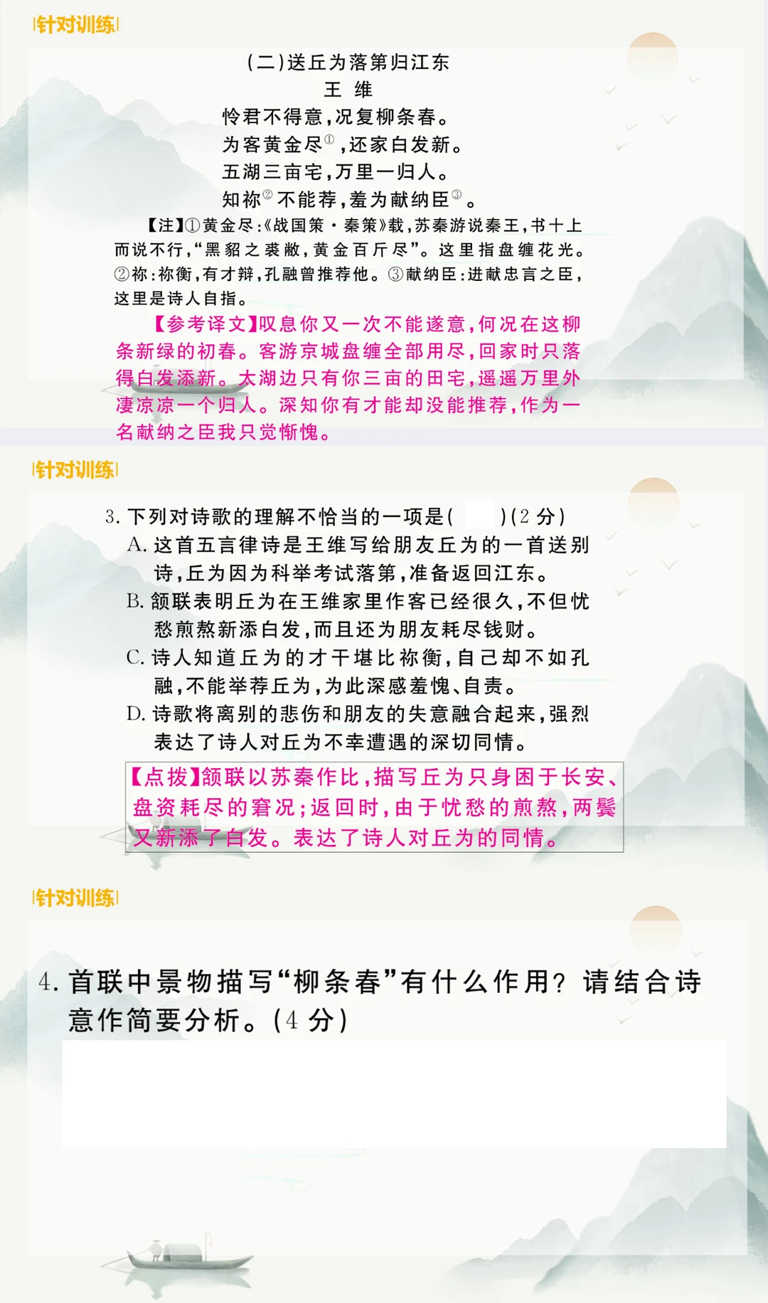 选择了我喜欢的一首歌《小美满》作为导入,希望能把歌曲中的乐观和治愈带给学生,引出意象意境的定义。 明确考点:有哪些意象、意象的特点、营造了什么意境、意象的作用 明确做题思路:审要求、抓特点、析作用 补充意象作用 补充常见意象及其内涵 练习巩固