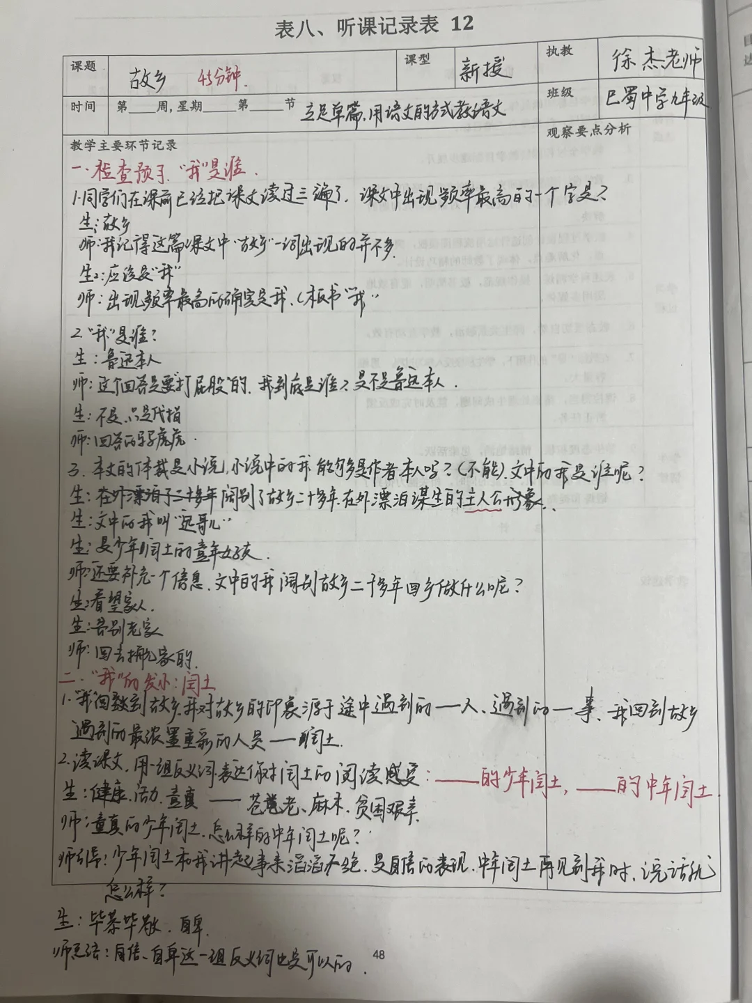 3️⃣三四节课的内容,只用一节课来呈现,必须有所取舍,徐老师选择了小说人物形象这个重点来教学全文,这对我们试讲,面试,教学都有所启迪,每节课透彻掌握一个知识点已经了不起了