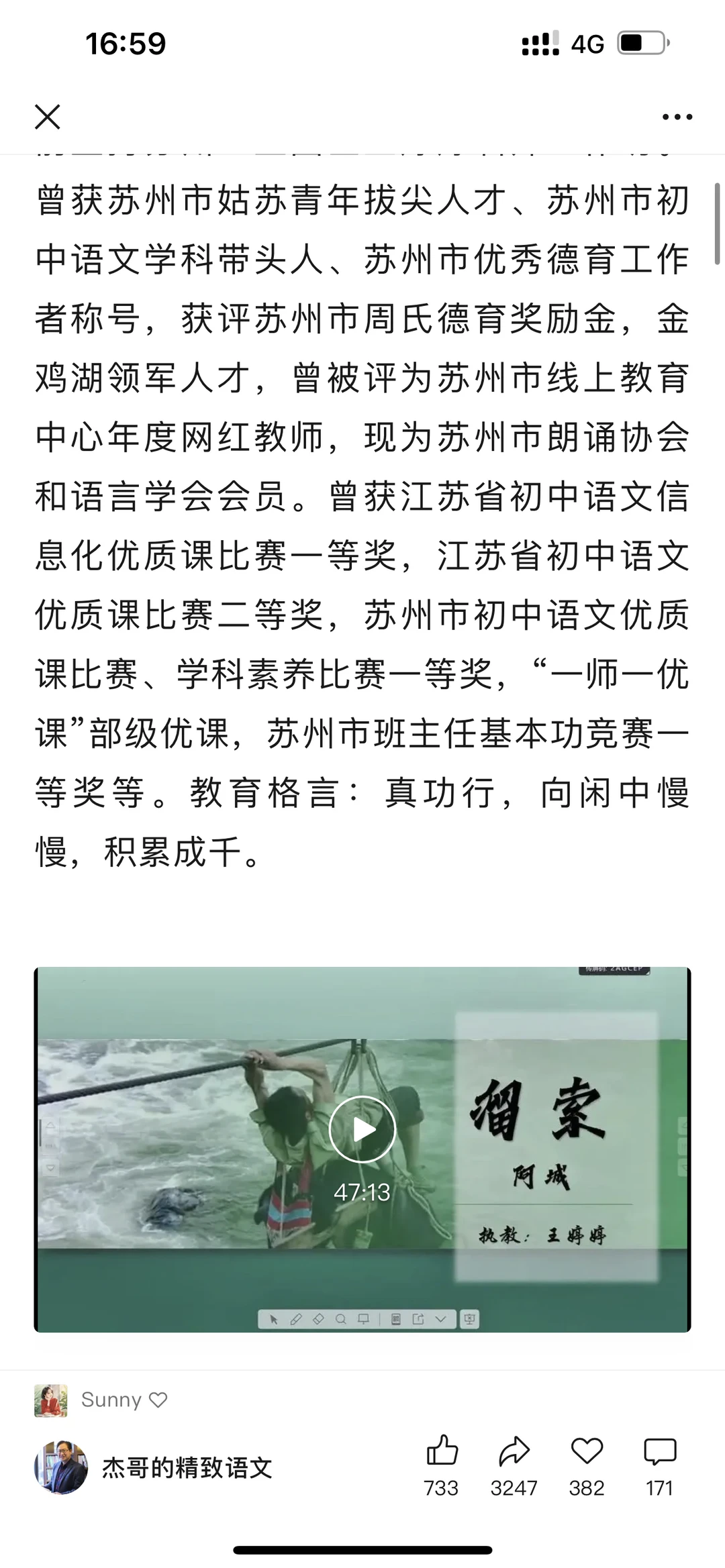 4️⃣公众号真能学到好多东西,底下的评论非常精彩,有一种高手在民间,学习永无止境的感觉。徐老师已经更新了好几节青语杯课堂实录,看看总会有收获~