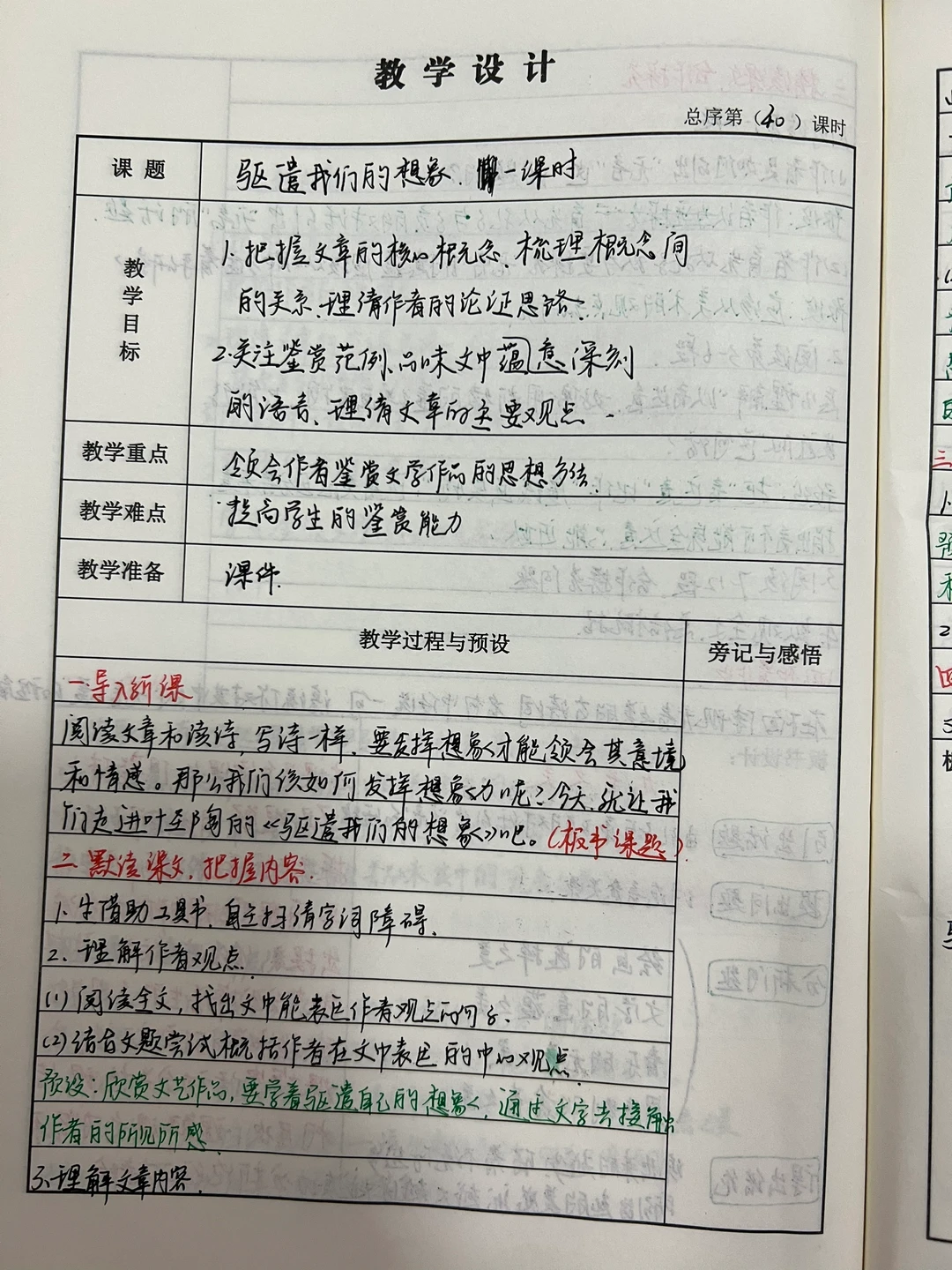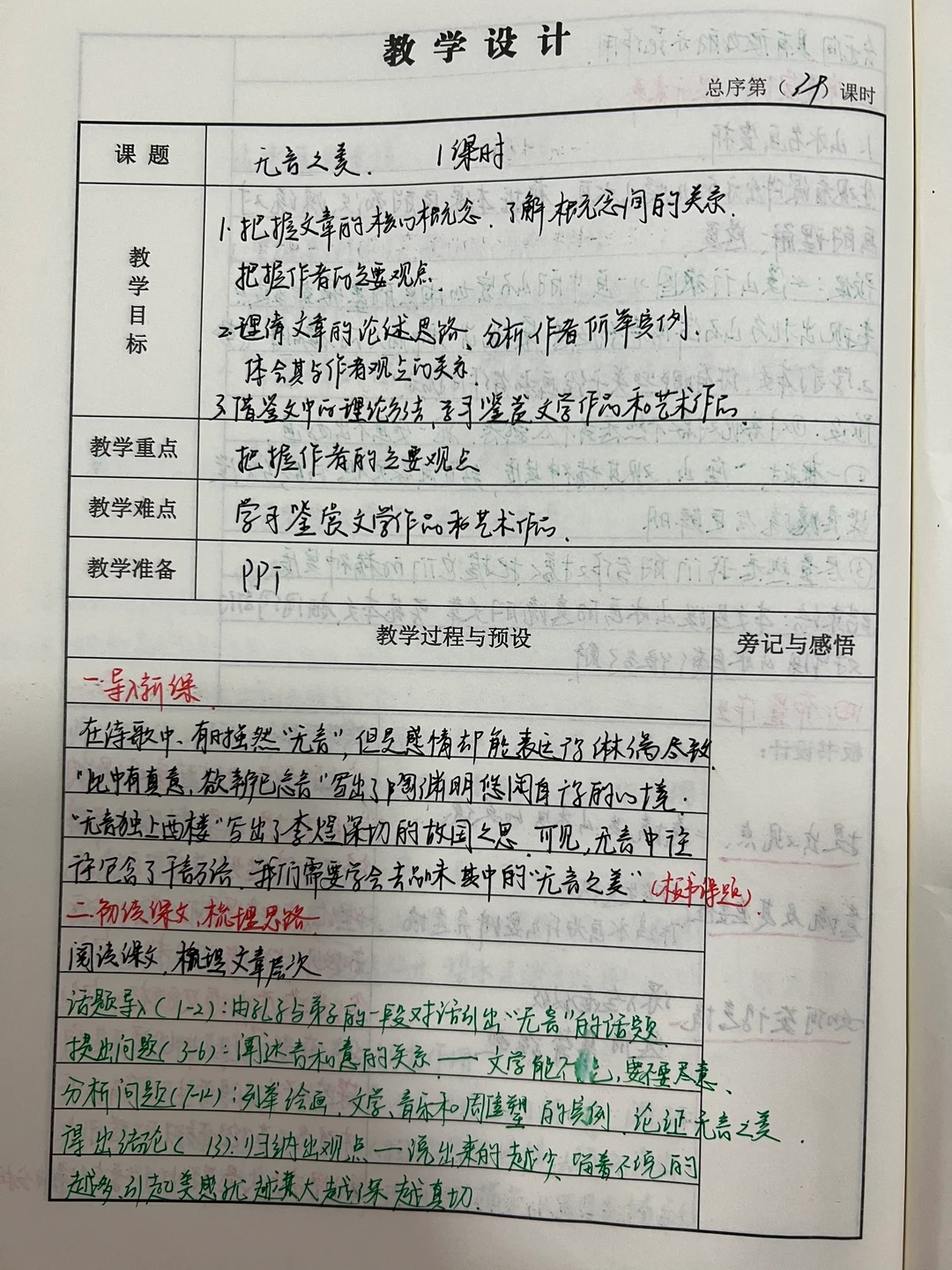 九下第四单元教案反思板书