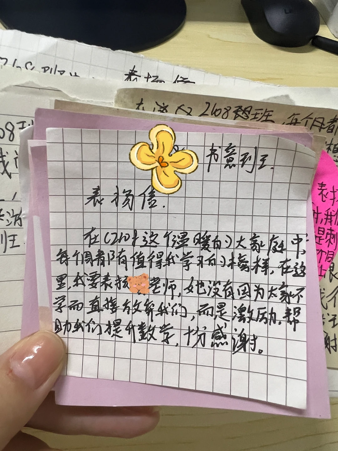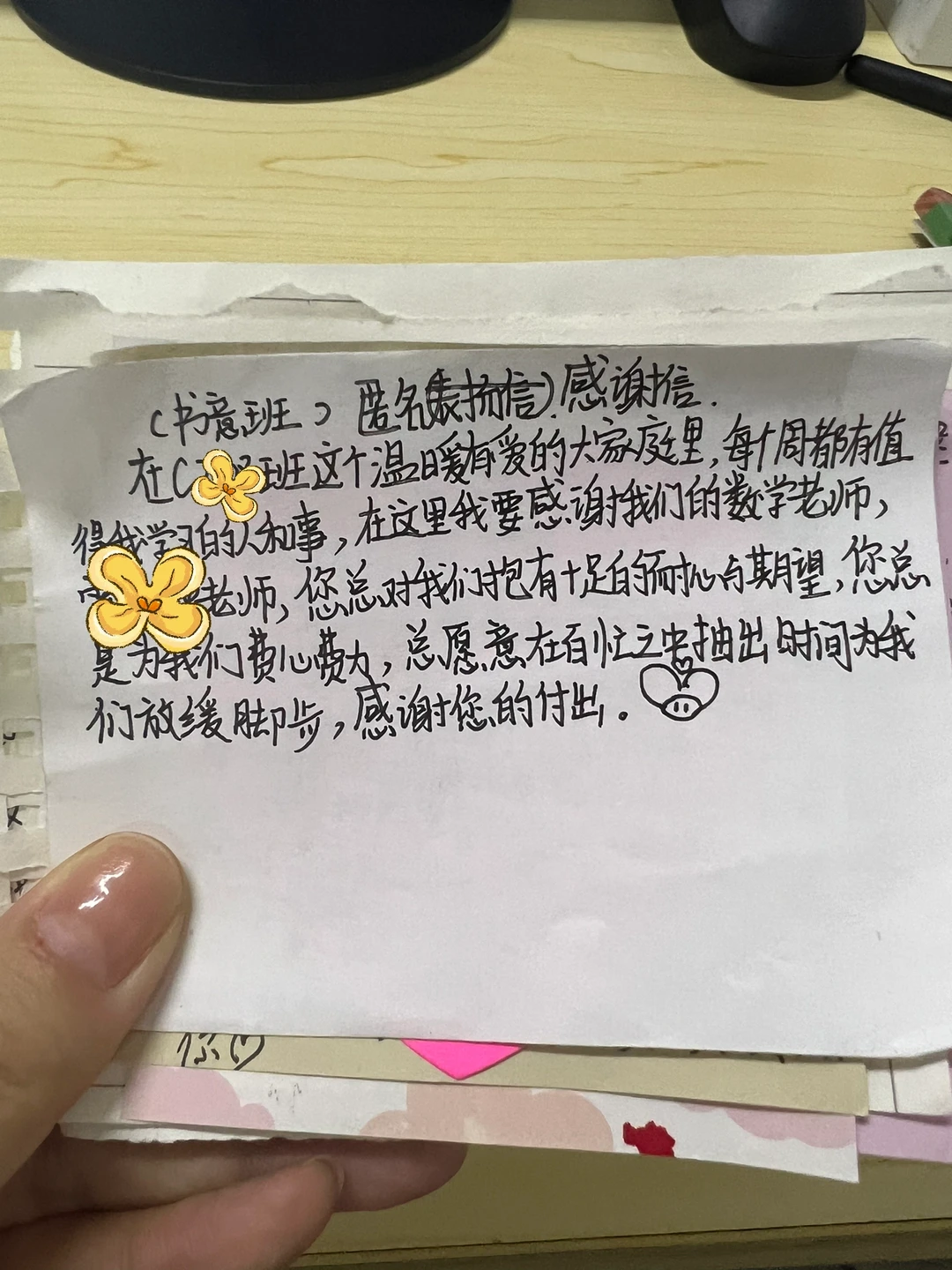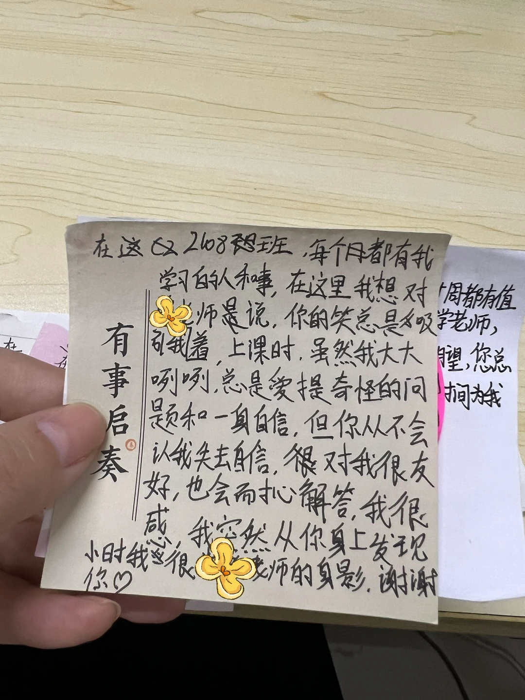 有意识的引导学生感知老师的付出, 1️⃣故意在学生面前说某某老师在办公室说我们班的孩子听课专注,坐姿端正😎顺势再提出要是能课下主动提问就更好了 2️⃣班会课写匿名夸夸条,学生问可以写给老师吗?当然!那就叫感谢条了 3️⃣生气或者寒心的时候拿出纸条看一看,知道还有学生值得我们坚持