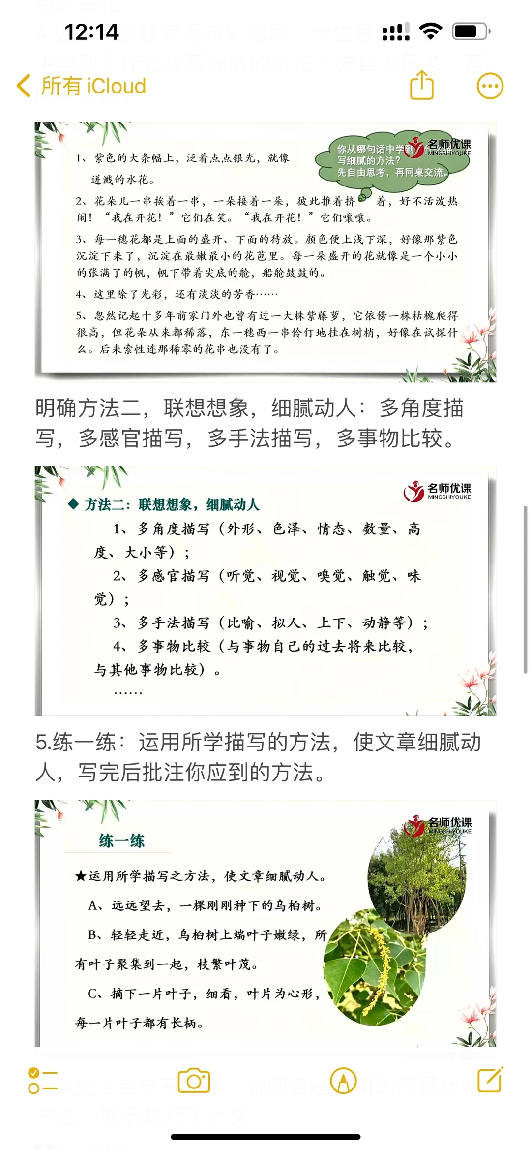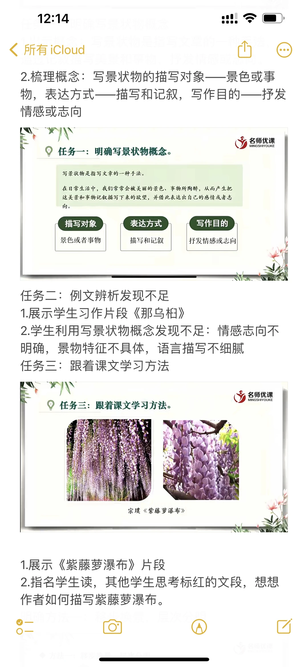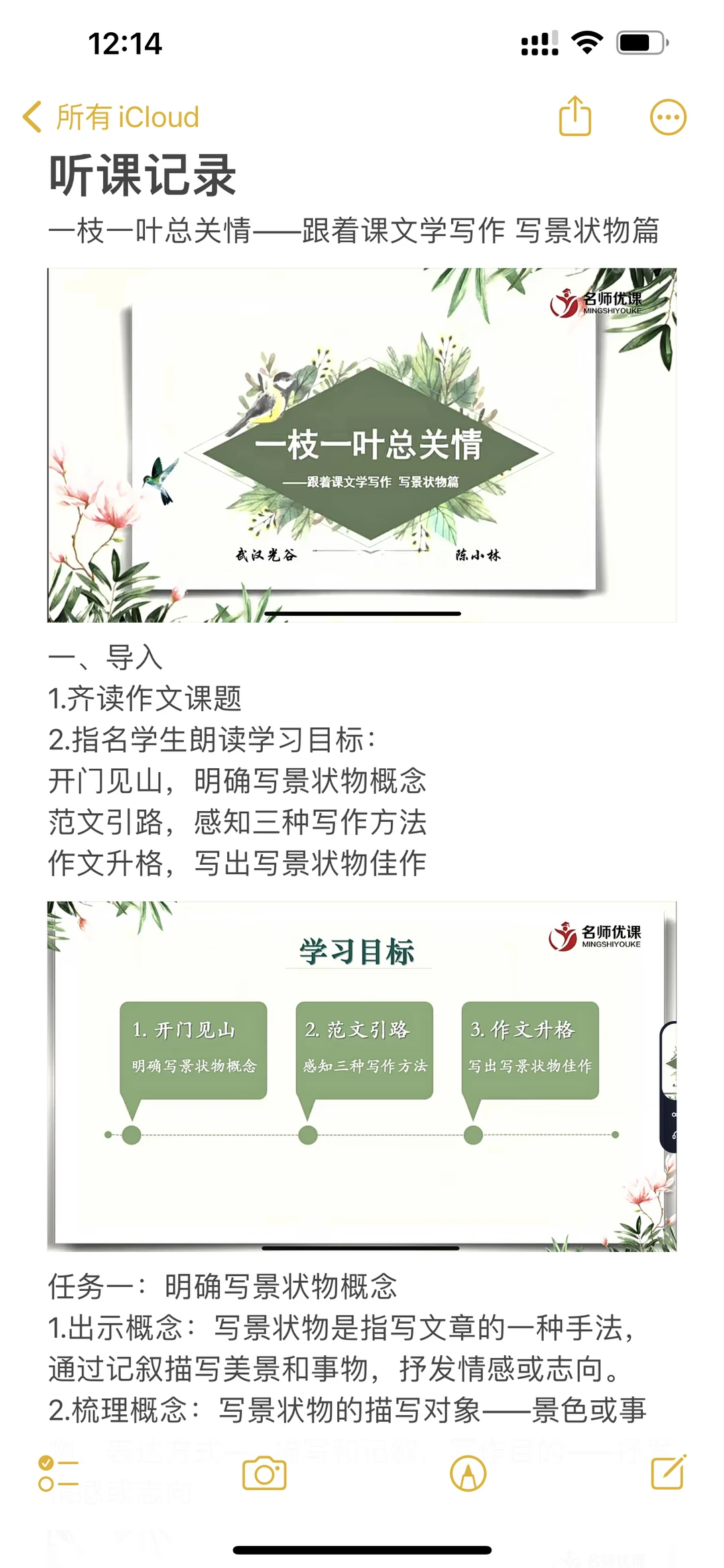 跟着课文学写作,写景状物篇听课记录📝电子版和手写都更新在图片里了