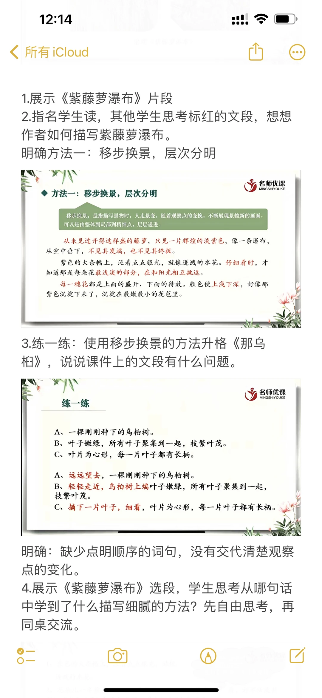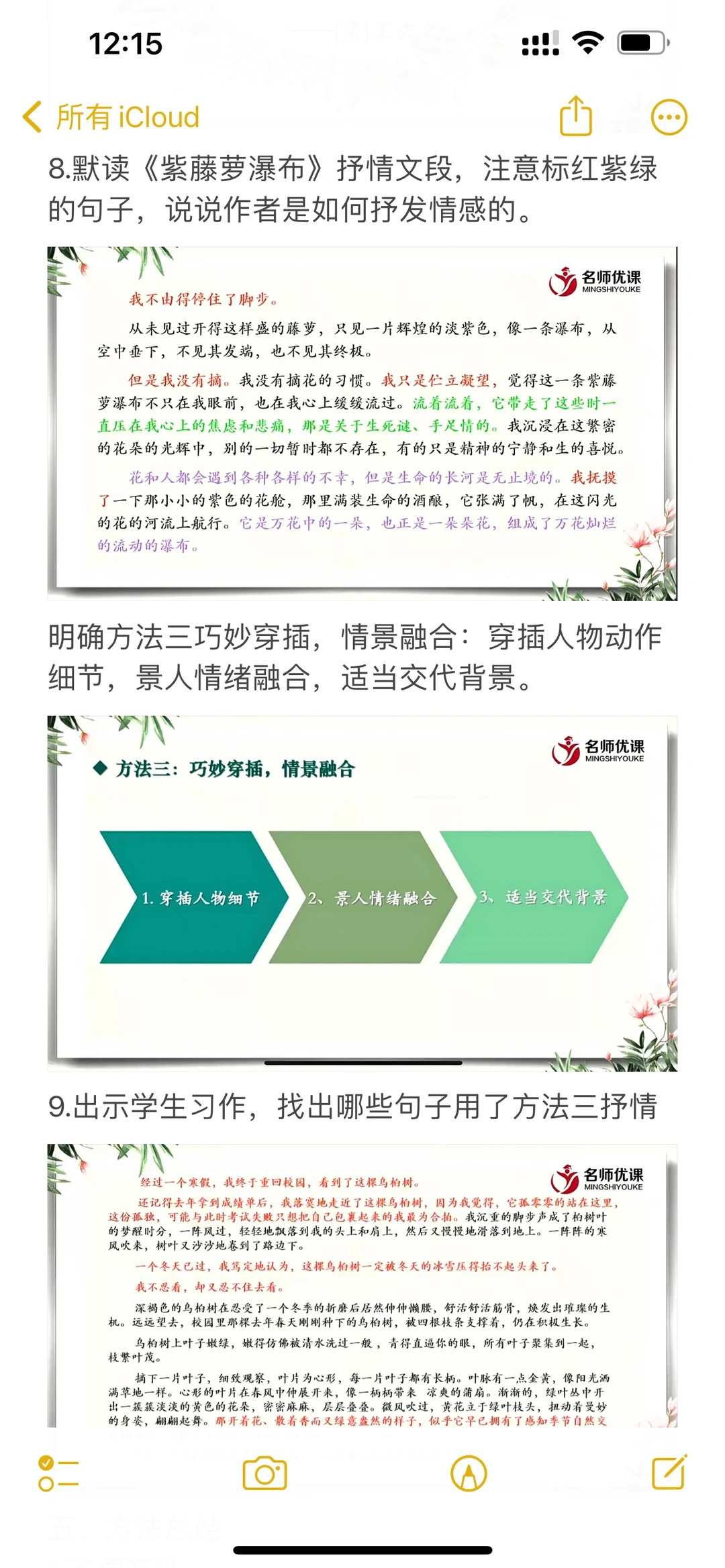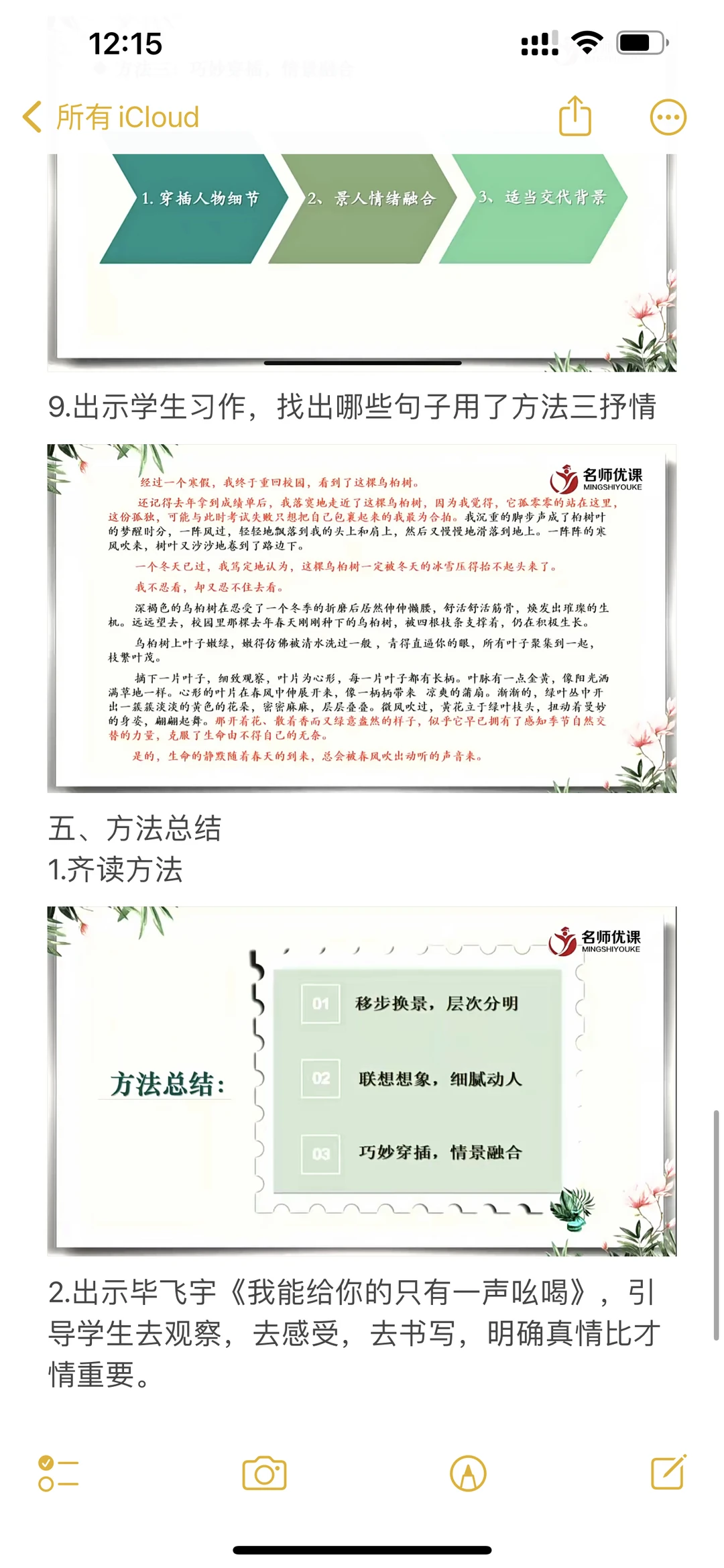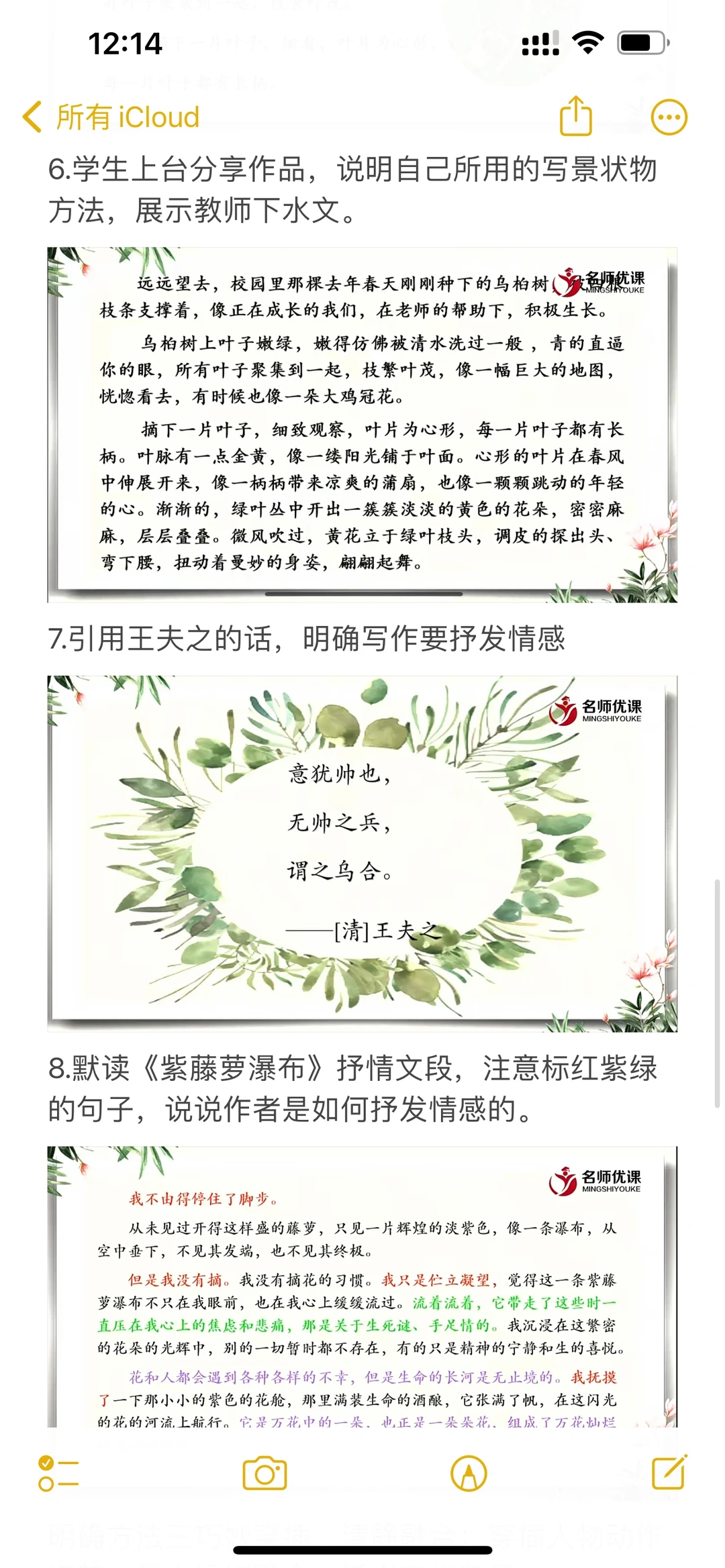 跟着课文学写作,写景状物篇听课记录📝电子版和手写都更新在图片里了
