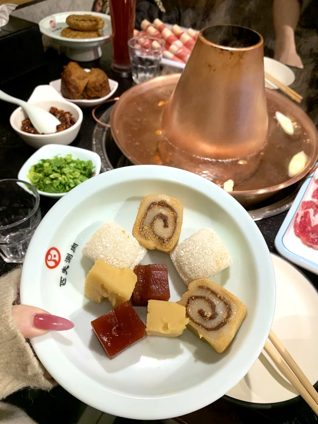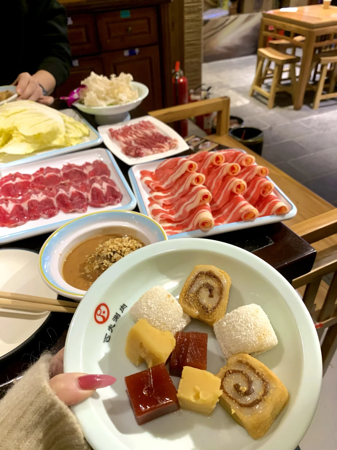下锅几秒就变色,嫩到入口即化、不膻不柴,满口原生肉香;绣球菇、时蔬涮品新鲜脆嫩,我自己吃了一盘~
