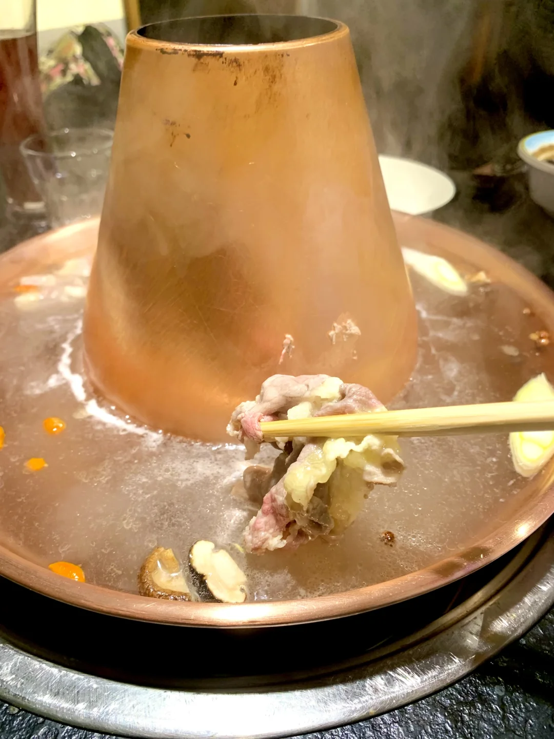 地道炭火铜锅,清汤锅底只加葱姜提味