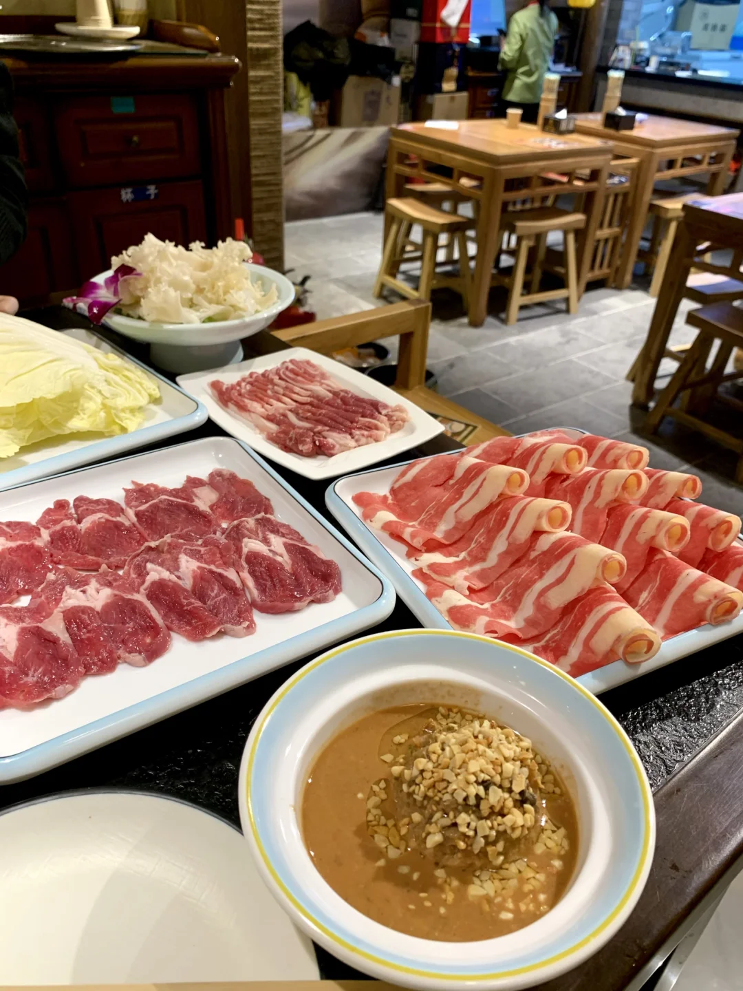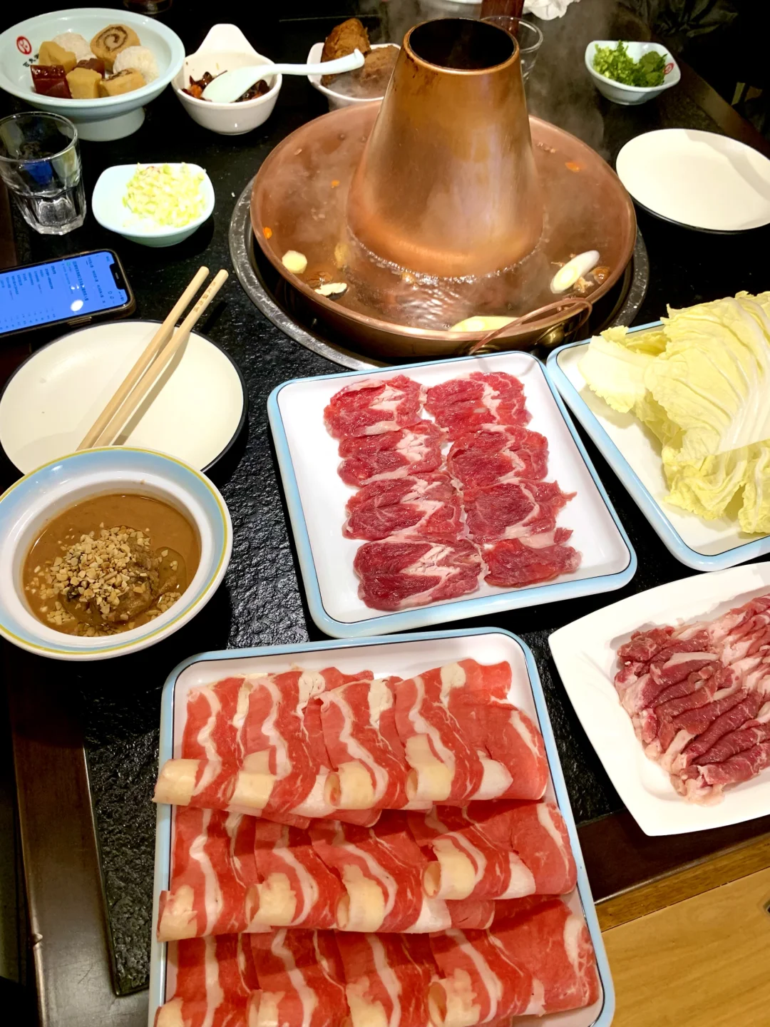 鲜肉现切、立盘不倒,肥牛、羊排肉都非常好吃~
