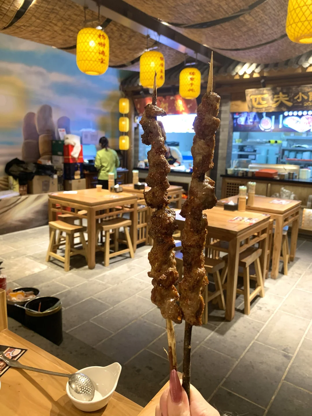 搭配红柳羊肉串焦香多汁,宫廷点心软糯香甜,解腻就喝清爽酸梅汤,酸甜解腻。