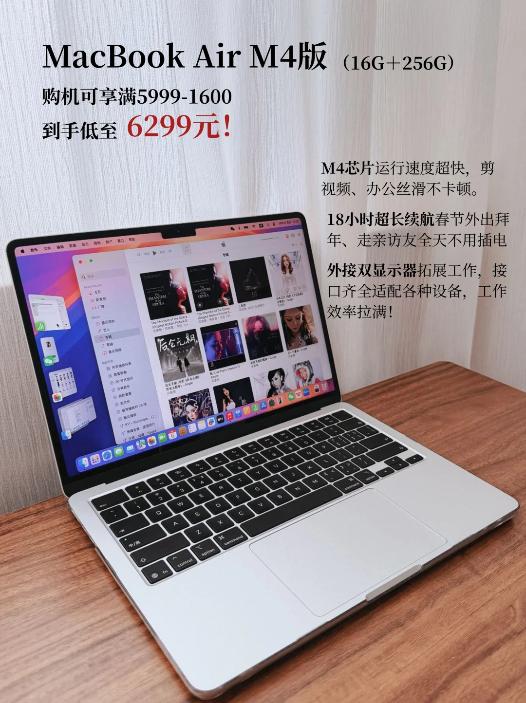 新年是该给自己换个装备啦!M4芯片运行速度超快,剪视频、办公丝滑不卡顿,18小时超长续航春节外出拜年、走亲访友全天不用插电,iPhone无缝互联能直接接电话、回消息,办公效率拉满,还能外接双显示器拓展工作,接口齐全适配各种设备!用美团支付满6000还能再减100,现在入手价格是真的香。