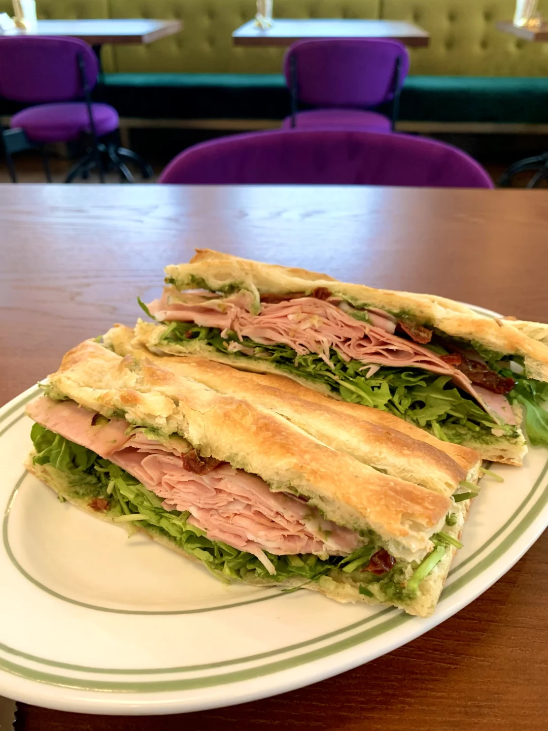 今天偶遇一家很惊艳的店 👉RUNNYMEDE COFFEE👈 还在试营业中~ 装修非常精致✨ 一层是紫色沙发区域、地下还有一层更为私密些 . 我点了招牌佛卡夏三明治+美式咖啡 手工现烤的意式佛卡夏面包浸润橄榄油香,外软内弹 . 夹上意大利的开心果火腿和芝麻菜,咖啡配三明治,简直太绝了! ‼️位置:定位可能不太准、具体位置在中国建设银行百子湾支行对面~(就能看见RUNNYMEDE的店面)
