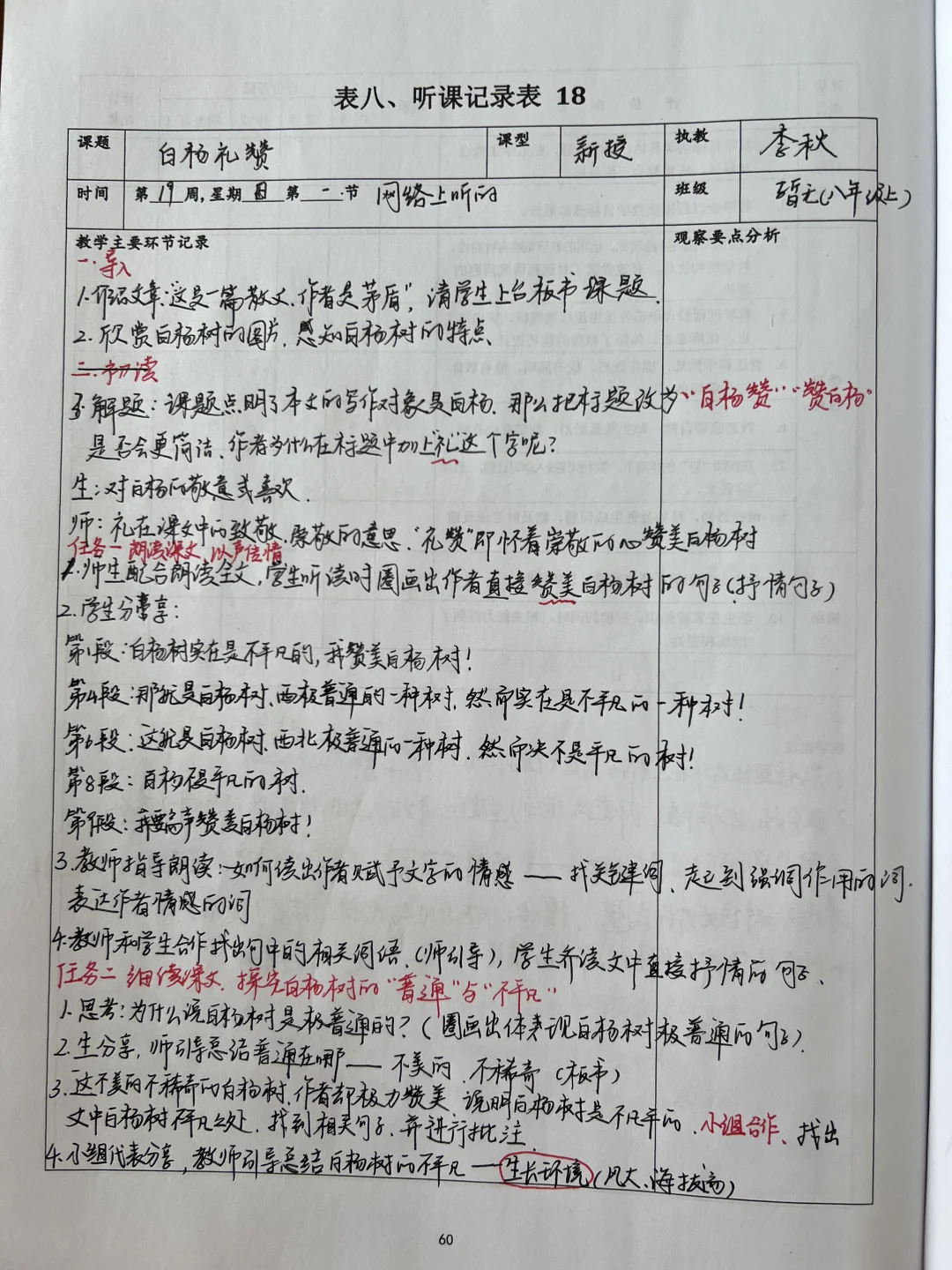 3.以声传情,运用重音、停连,读出对白杨树的激情赞美。